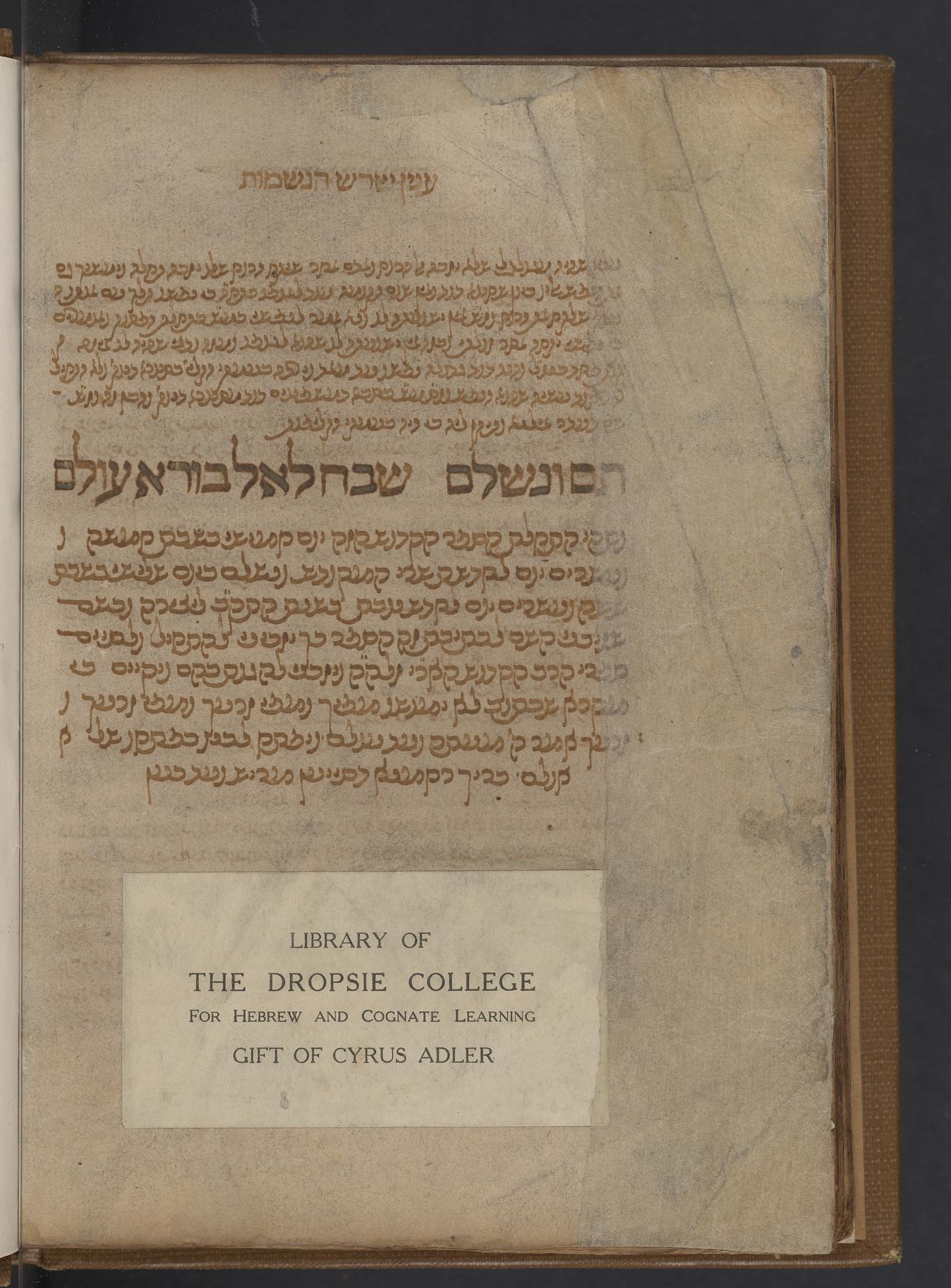 CAJS Rar Ms 47(420 Walnut Street, Philadelphia, Pennsylvania 19106-3703, University of Pennsylvania, Library at the Herbert D. Katz Center for Advanced Judaic Studies)