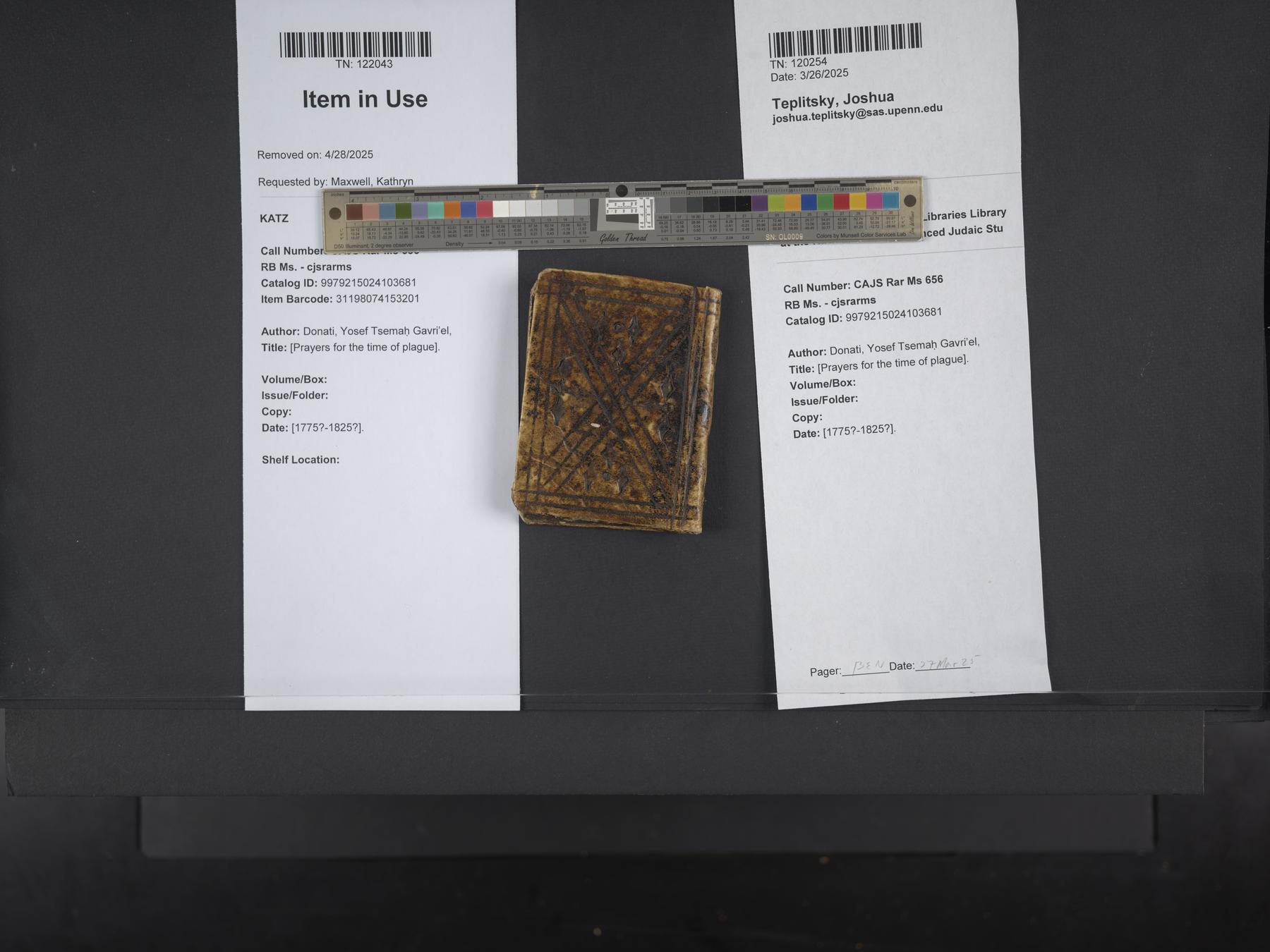 CAJS Rar Ms 656(420 Walnut Street, Philadelphia, Pennsylvania 19106-3703, University of Pennsylvania, Library at the Herbert D. Katz Center for Advanced Judaic Studies)