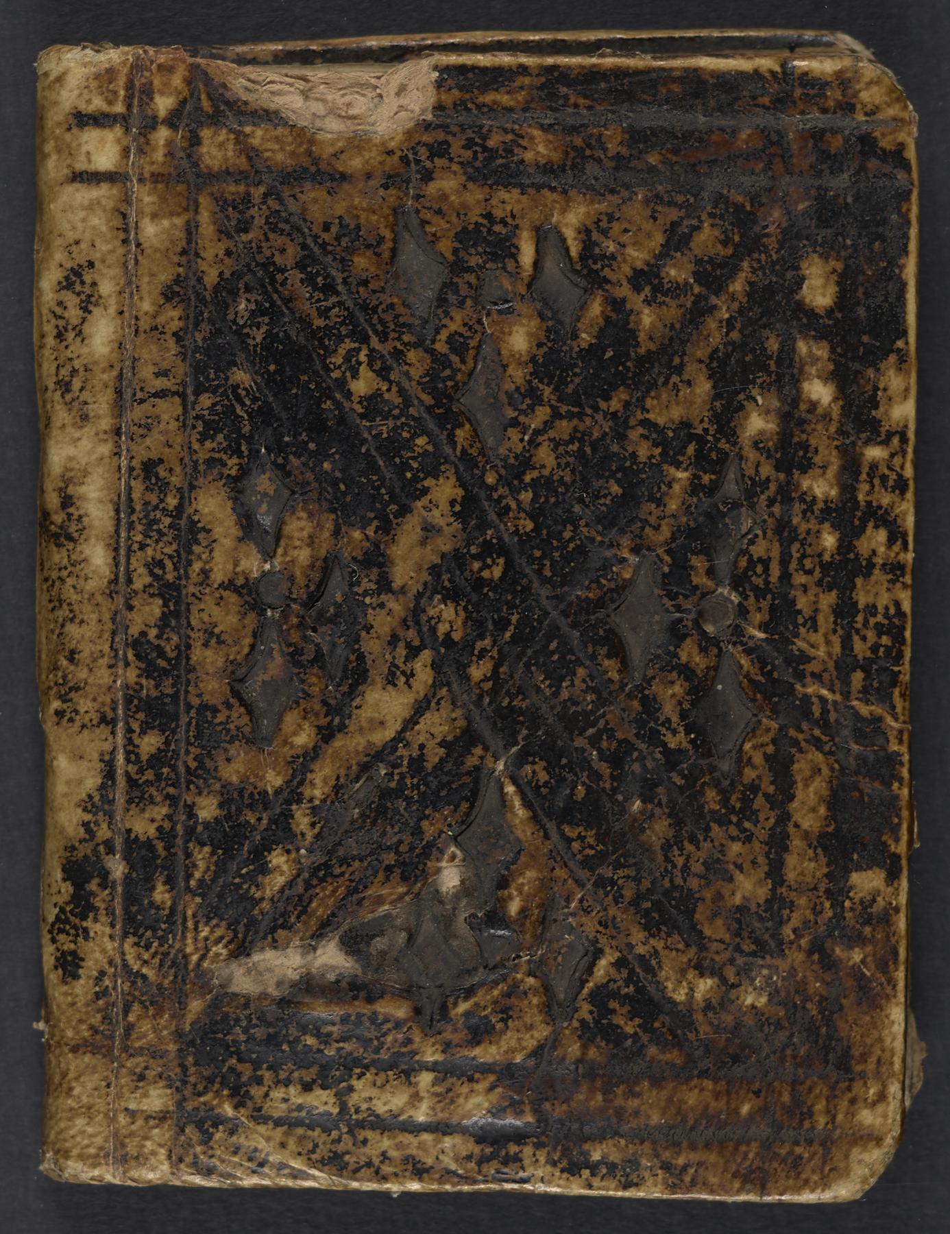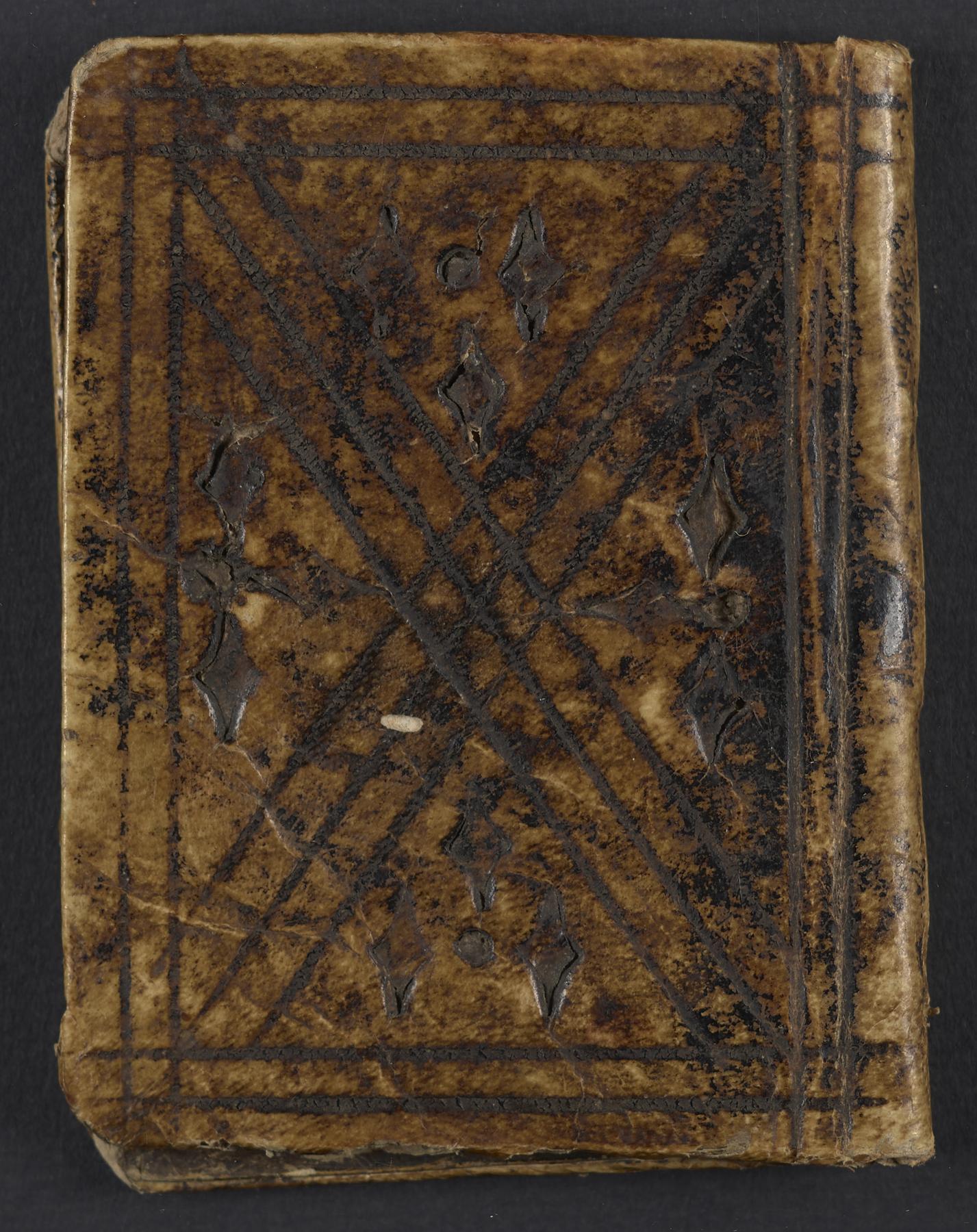 Contemporary leather on pasteboard, with blind-tooling (frame, inner lines, and asterisms).Layout