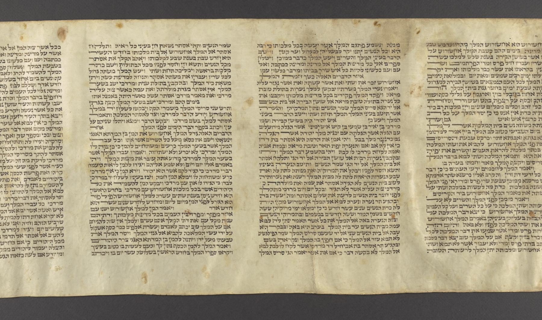 Esther scroll on parchment, written across three large membranes, written according to the 16th century Ashkenazic custom.