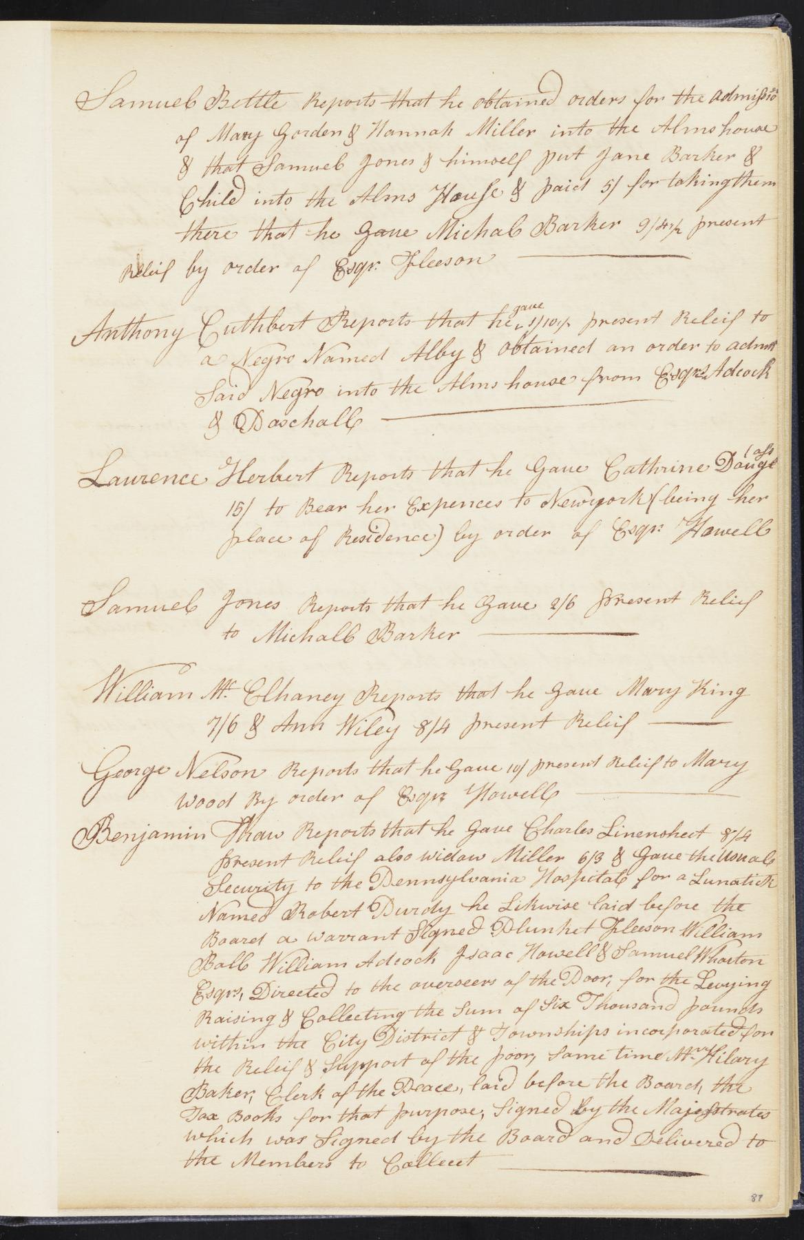 Section: Minutes of the Overseers of the Poor of the City of Philadelphia