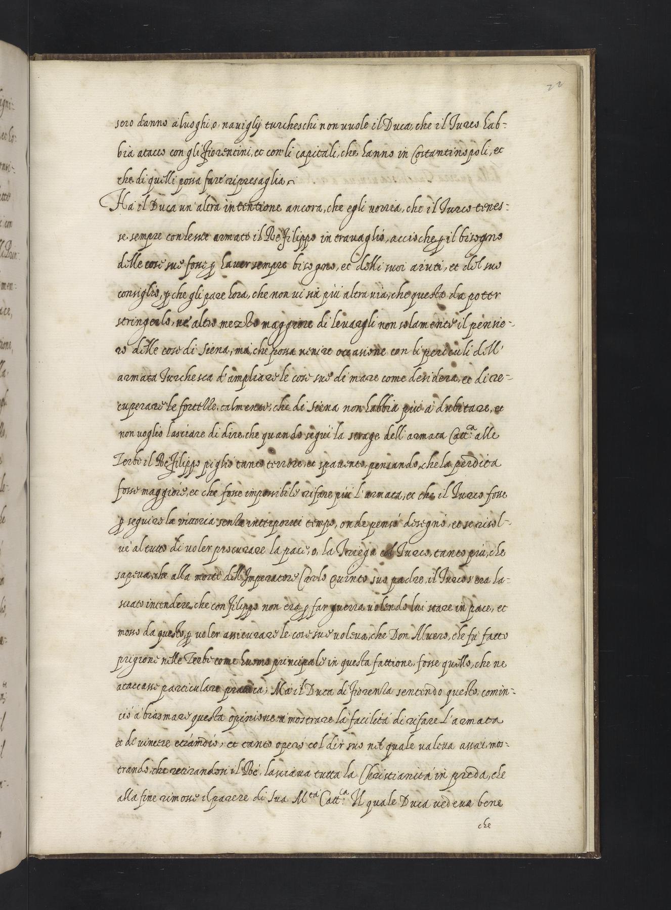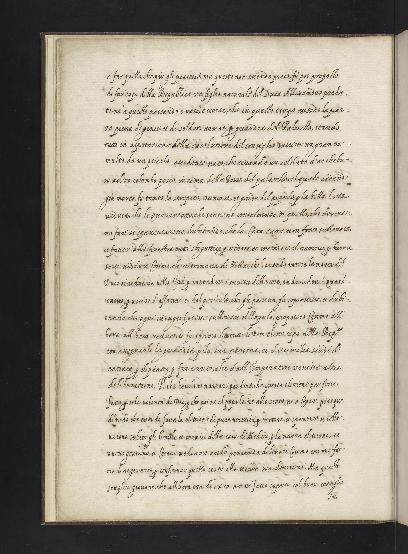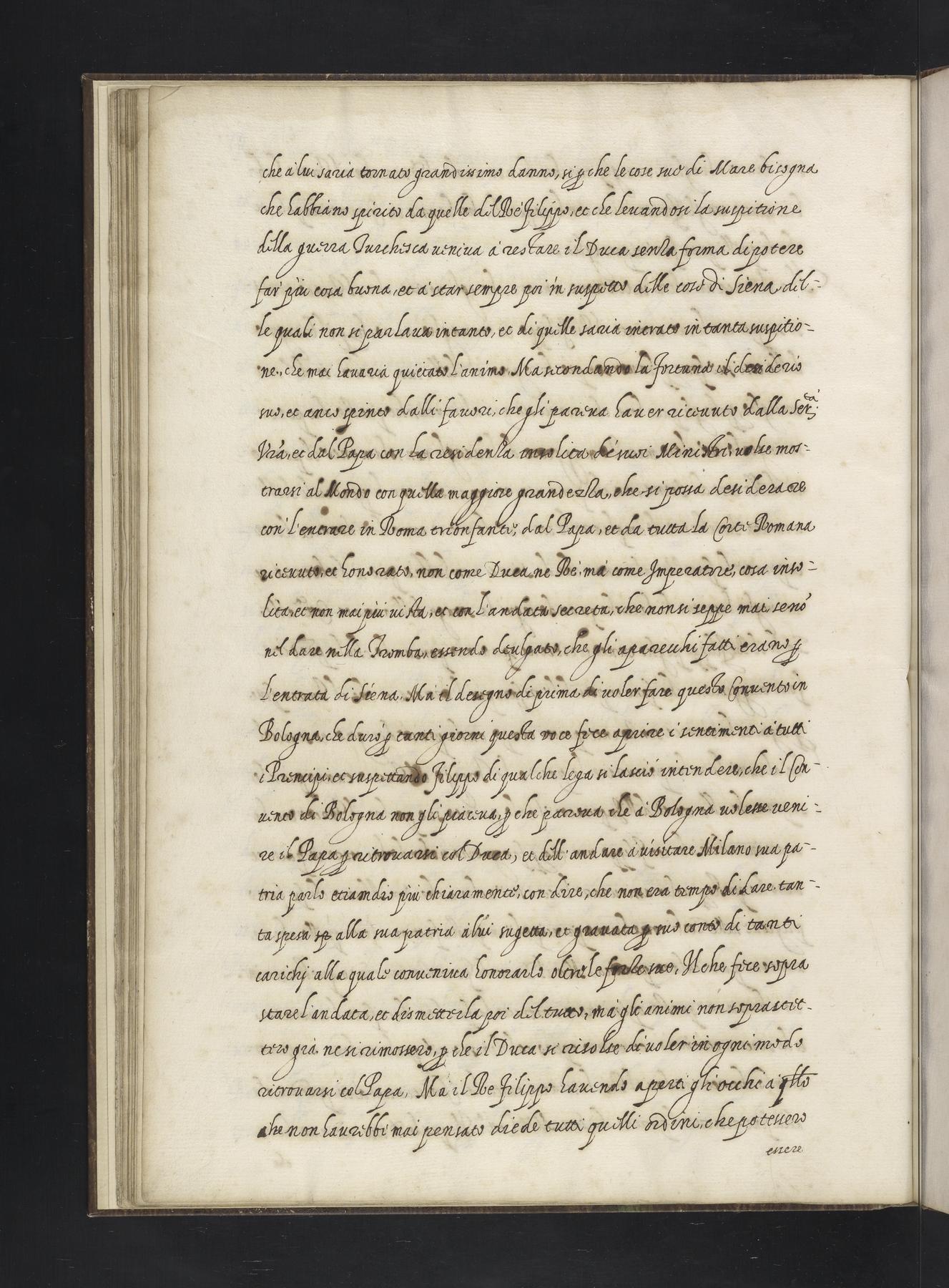 Copy, with some lacunae, of a Venetian ambassador's report from 1561 on the two states of Florence and Siena recently united under Duke Cosimo I (de' Medici), and on Cosimo himself. The last part discusses Venetian emigration to Pisa and the Tuscan coast, in relation to the establishment of a Greek church and land reclamation in the Maremma. See UPenn Ms. Codex 384 for another copy of this text.