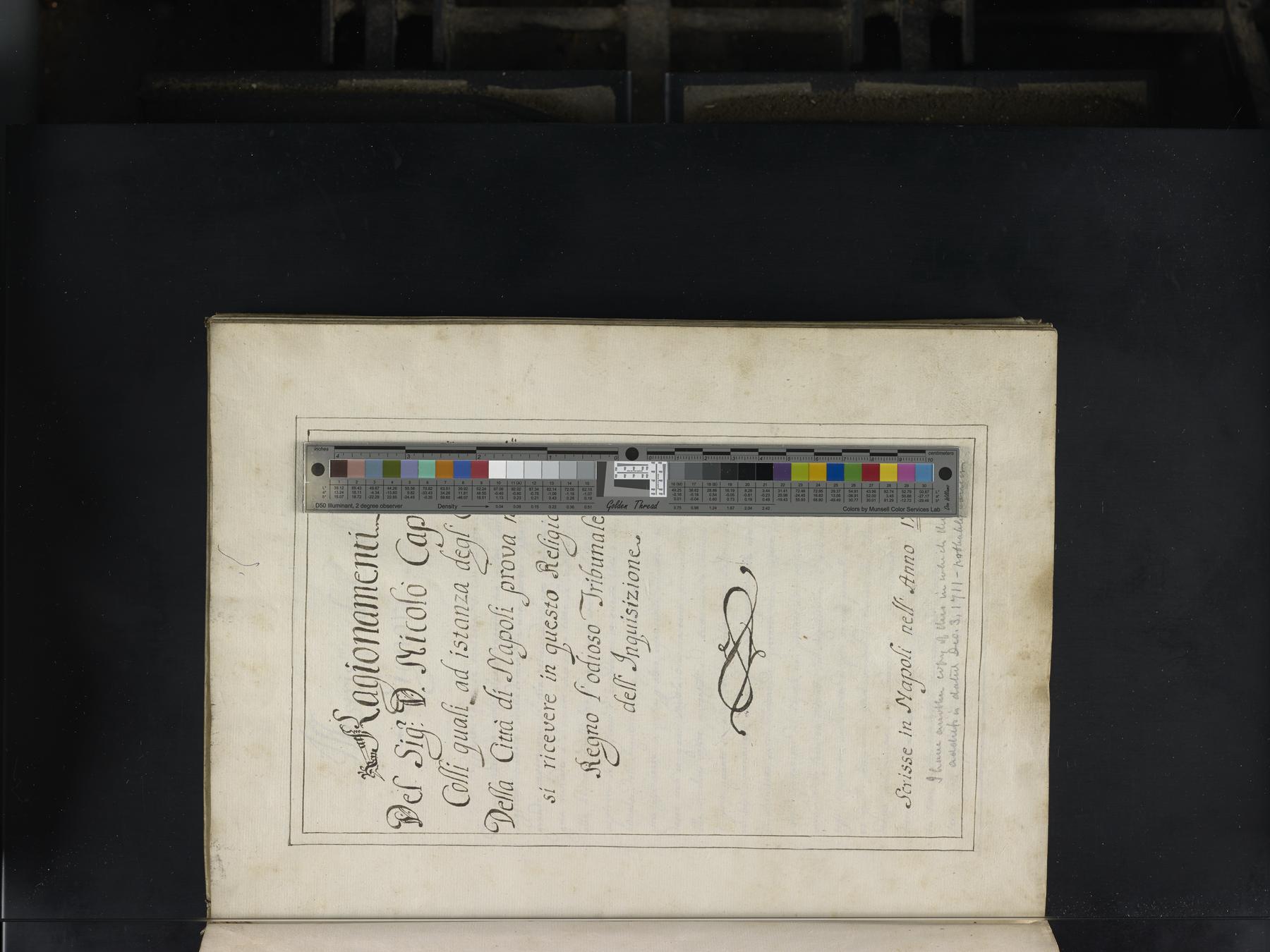 Ms. Codex 589 Ragionamenti ... colli quali ad istanza degli eccmi. signori della città di napoli prova non doversi ricevere in questo religiosissimo regno l'odioso tribunale dell'inquisizione