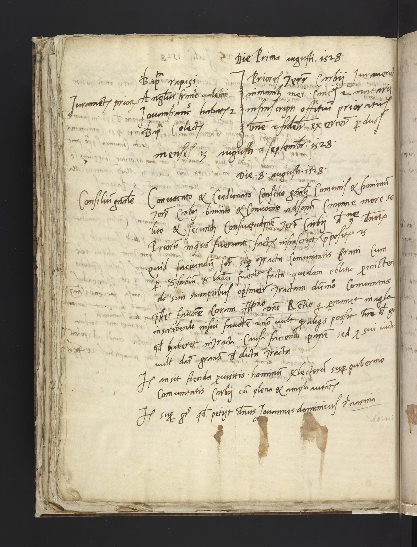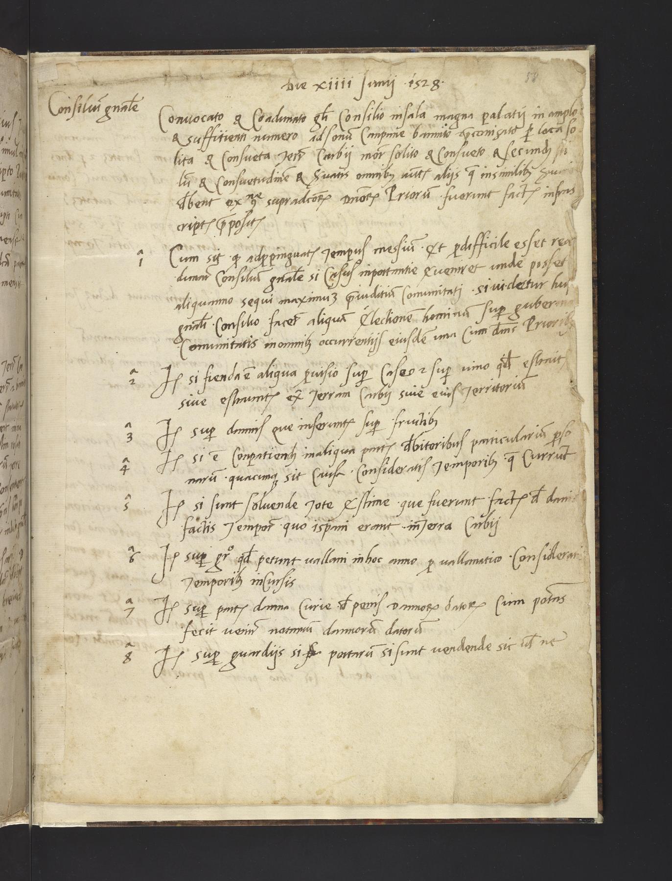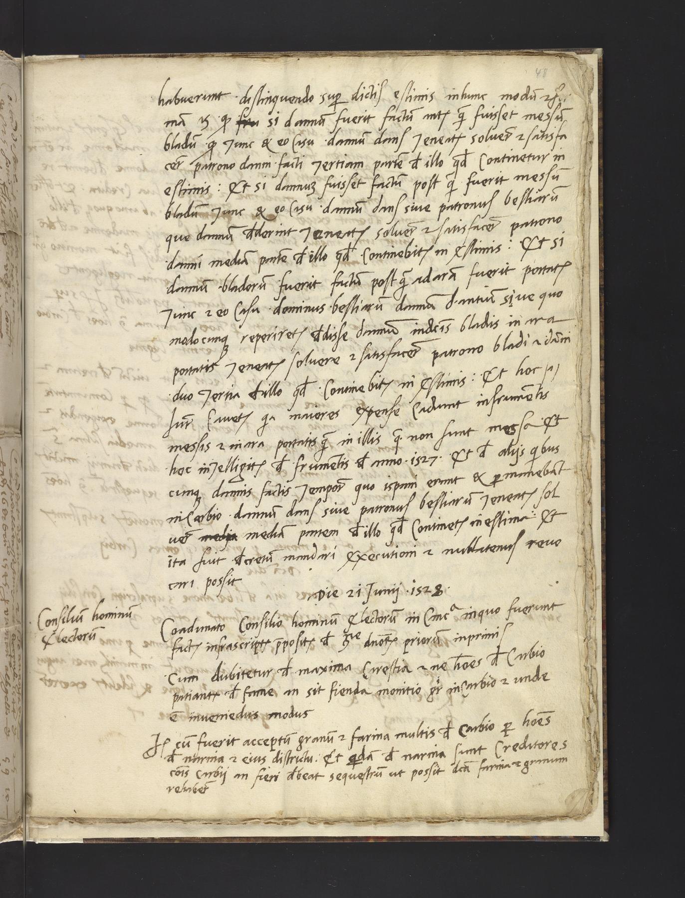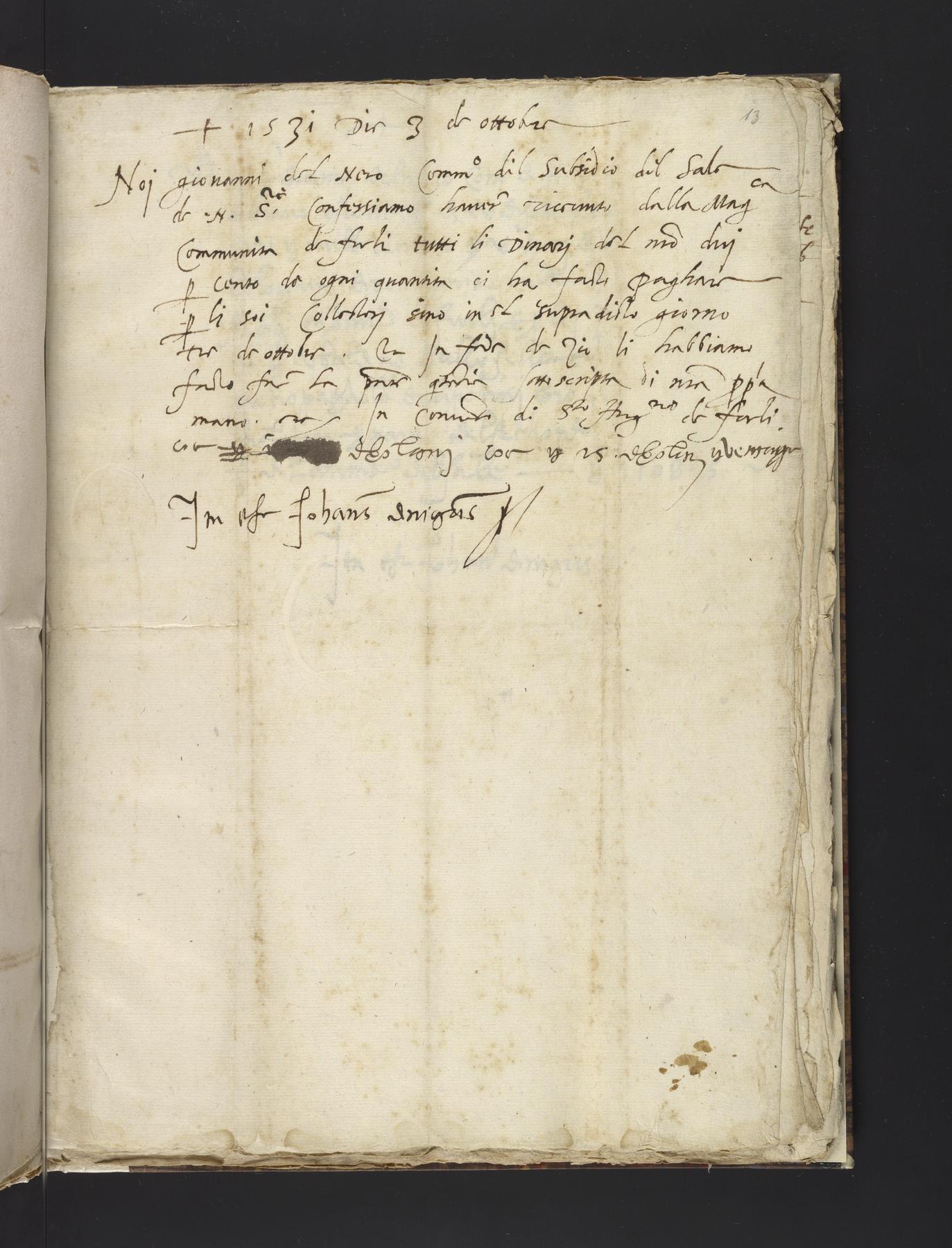 Collection of documents relating to the commune of Aspra and Carbi and the commune of Forlì, all papal states, concerning subjects such as local regulations, meat prices, salt taxes, wills, and safety and defense.