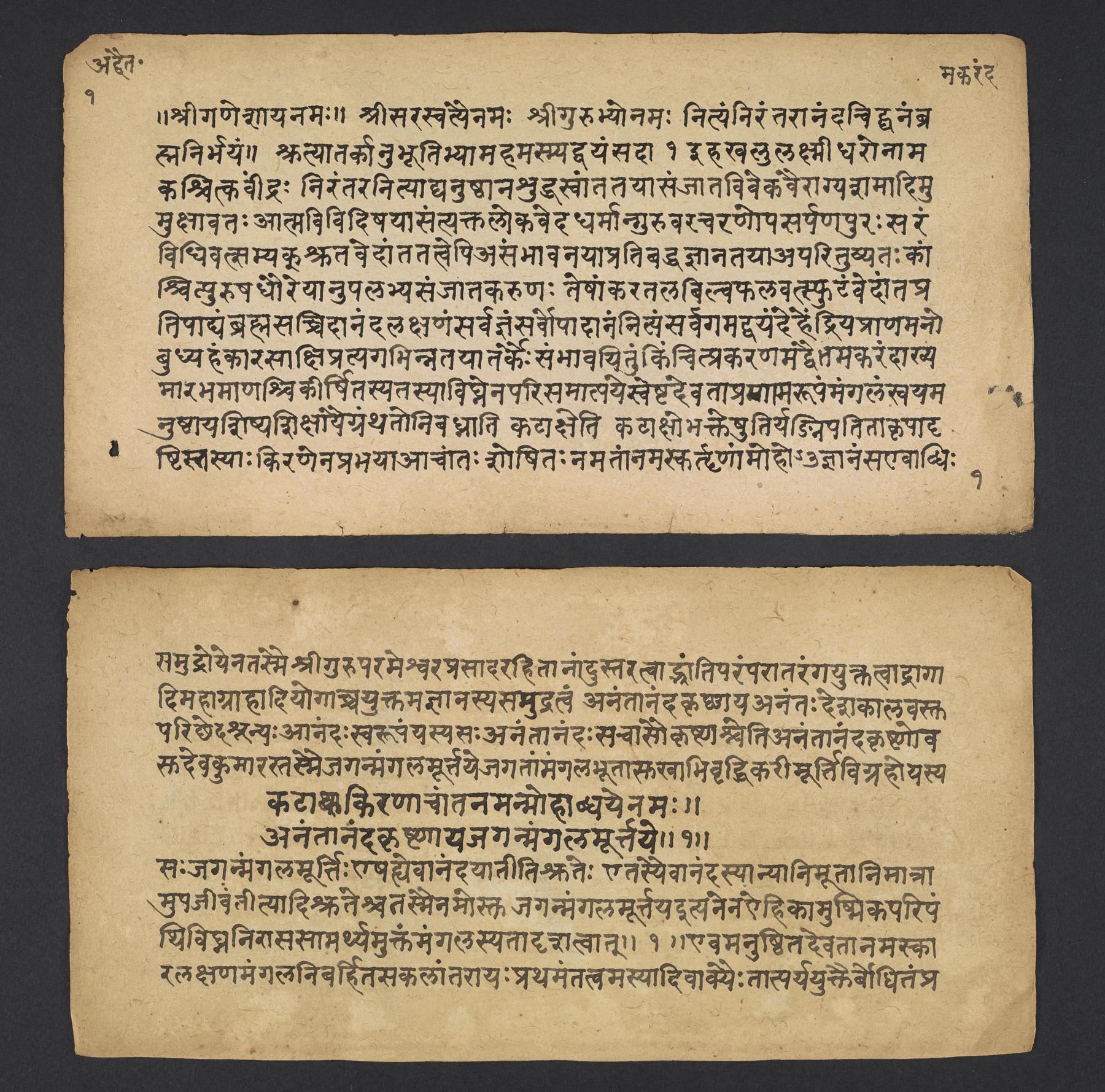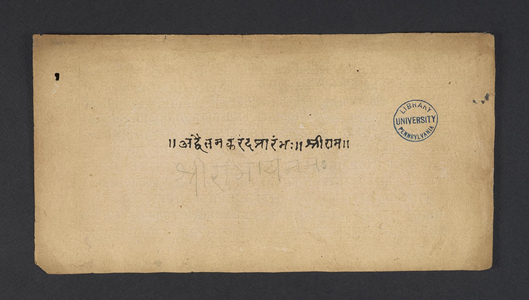 - These images and the content of Kislak Center for Special Collections, Rare Books and Manuscripts Ms. Coll. 390 Item 1059: Advaitamakaranda are free of known copyright restrictions and in the public domain. See the Creative Commons Public Domain Mark page for usage details, http://creativecommons.org/publicdomain/mark/1.0/.