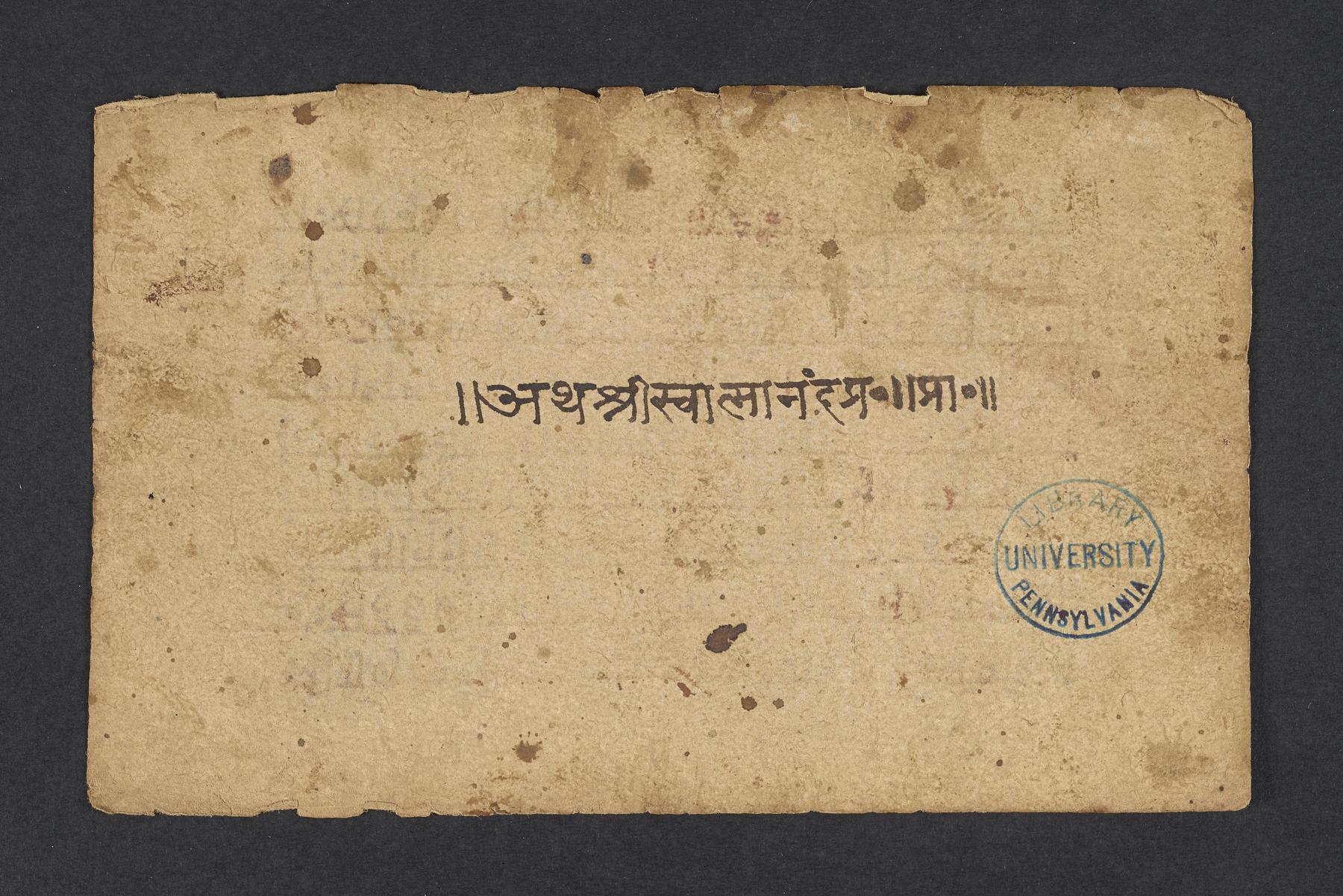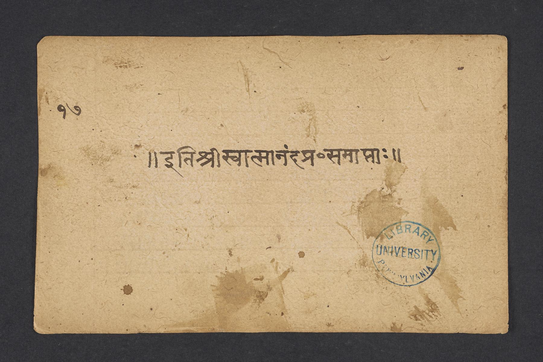 - These images and the content of Kislak Center for Special Collections, Rare Books and Manuscripts Ms. Coll. 390 Item 1124: Svātmānandaprakāśa are free of known copyright restrictions and in the public domain. See the Creative Commons Public Domain Mark page for usage details, http://creativecommons.org/publicdomain/mark/1.0/.