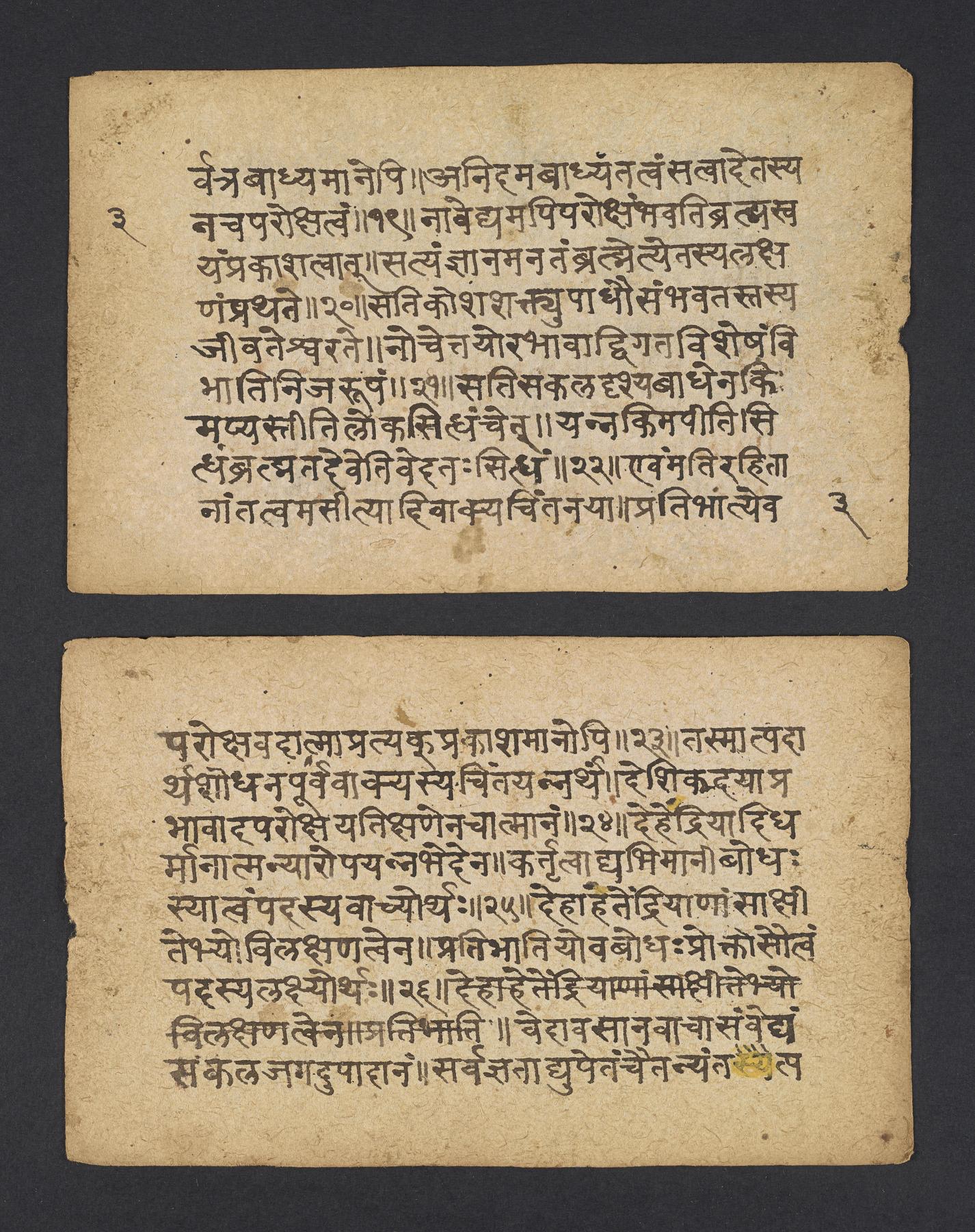 Manuscript is used for contemplation and study and is a Hindu philosophical treatise analyzing the nature of the self (ātman) and one of its aspects of pure happiness or joy (ānanda), from the perspective of the Advaita (non-dualism) Vedānta school of philosophy.