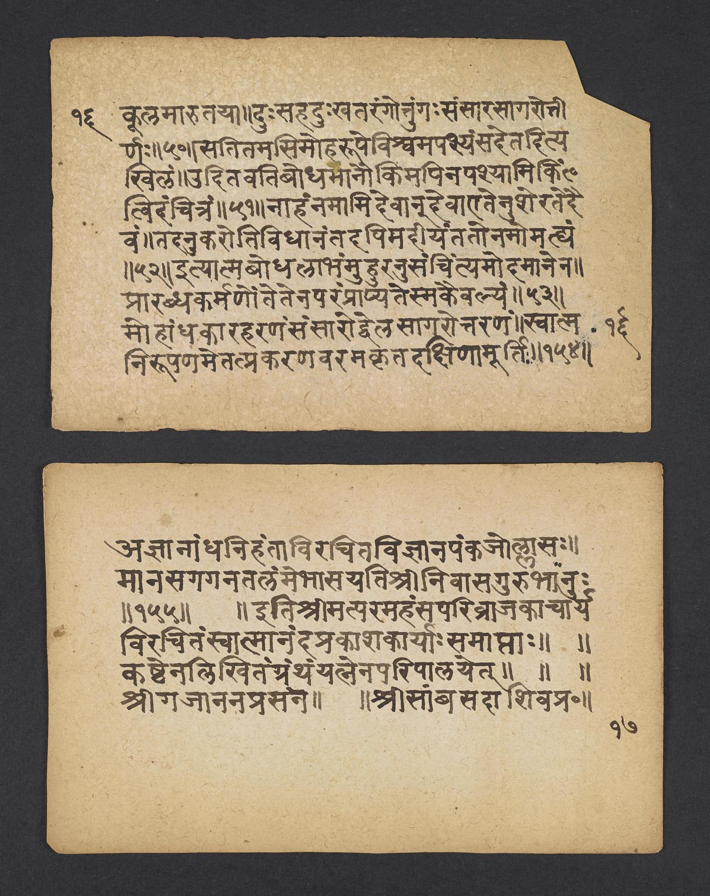 Colophon: iti śrīmatparamahaṃsaparivrājakācāryaviracitaṃ svātmānaṃdaprakāśakāryāḥ samāptaḥ // kaṣṭena likhitaṃ graṃthaṃ yatnena paripālayet // śrīgajānanaprasana // śrīsāṃbasadāśivapra - // (f. 17v).Subjects topical