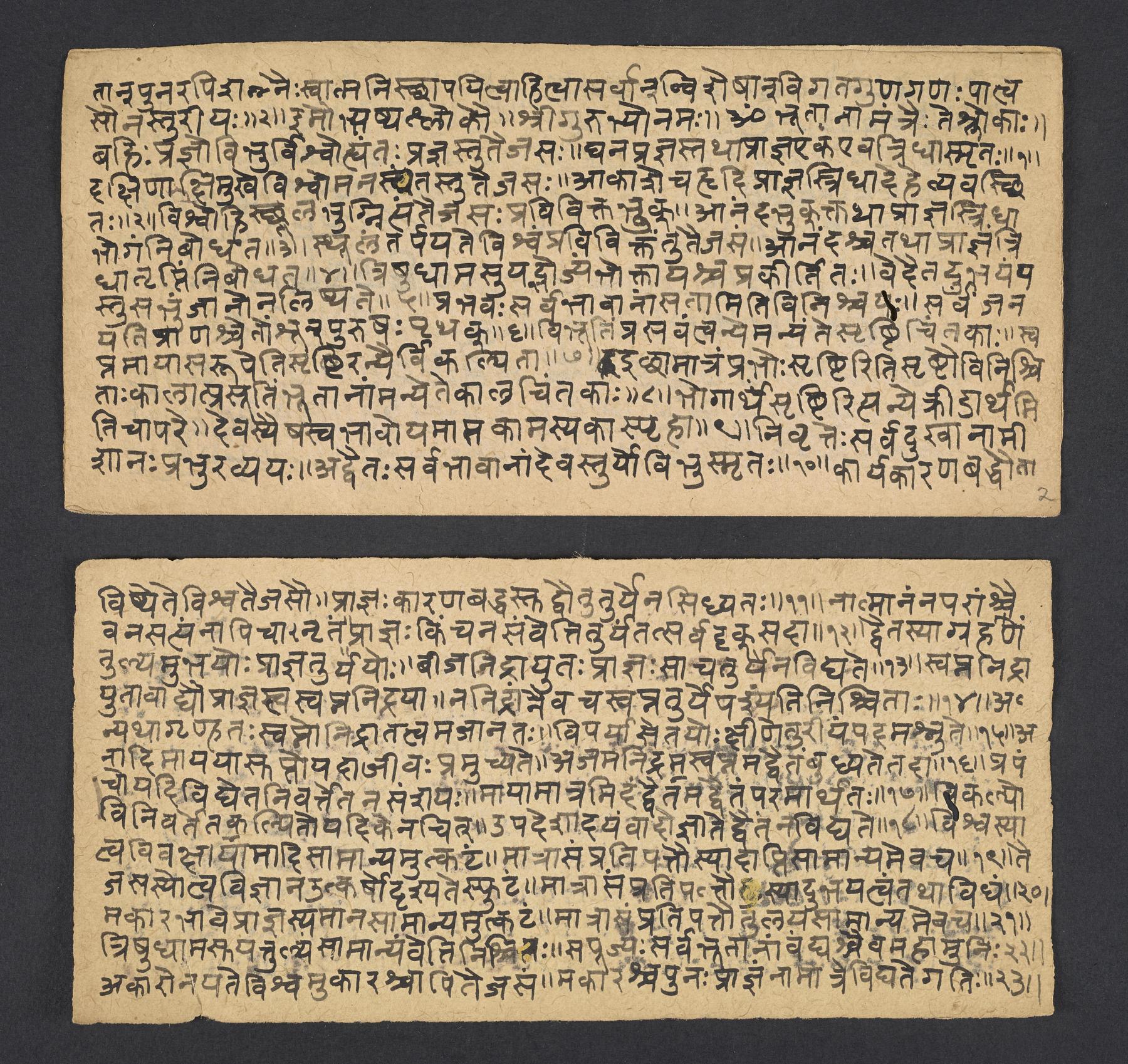 Manuscript is used for contemplation and study. The first part is a short Hindu philosophical treatise summarizing the tenets of the Advaita (non-dual) branch of the Vedanta school; the second part is a late Vedic work that focuses on the centrality of the Vedic god Rudra, an early form of the Hindu deity Śiva and is important to the development of Śaivism.