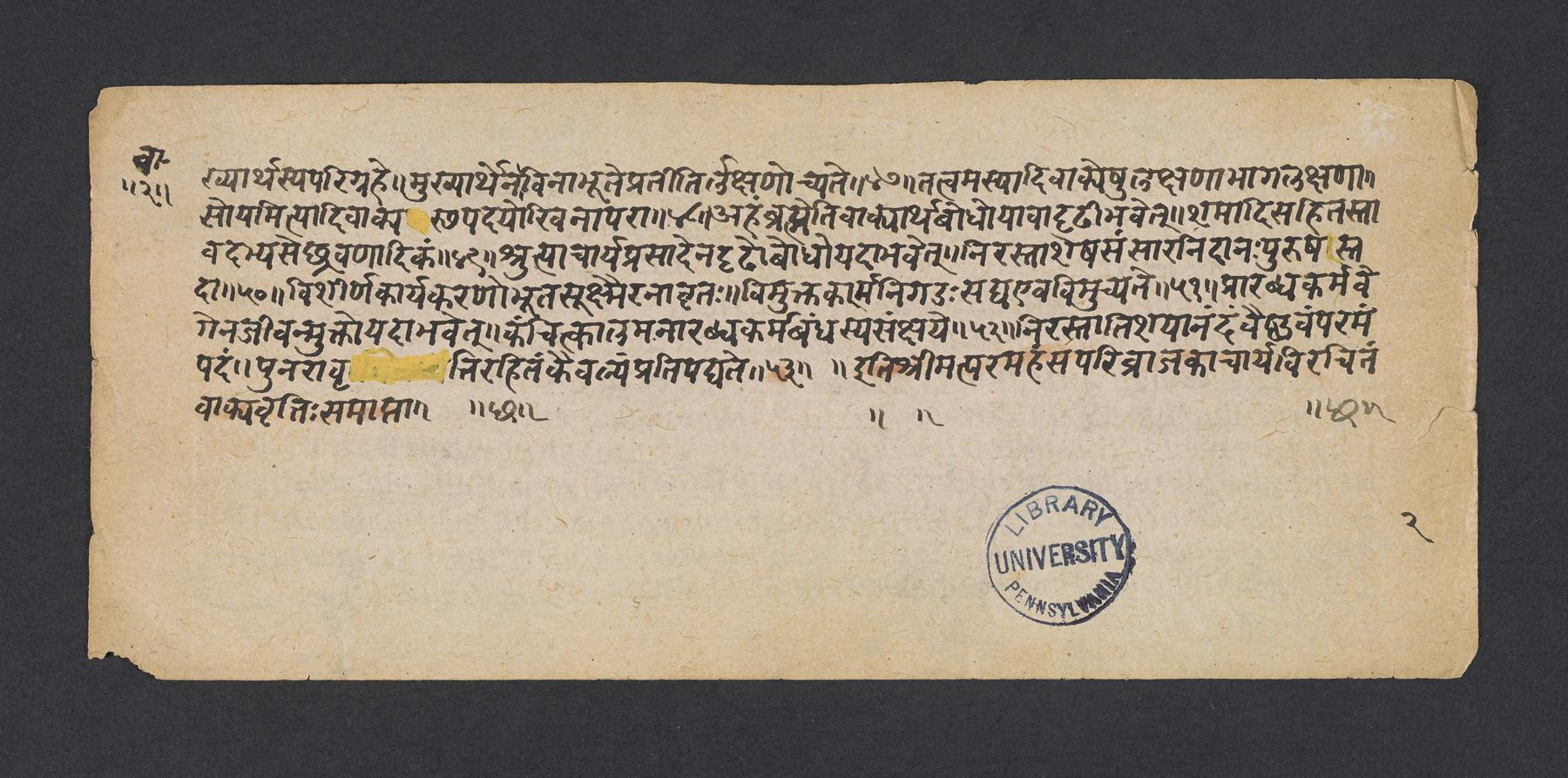 - These images and the content of Kislak Center for Special Collections, Rare Books and Manuscripts Ms. Coll. 390 Item 1266: Vākyavṛtti are free of known copyright restrictions and in the public domain. See the Creative Commons Public Domain Mark page for usage details, http://creativecommons.org/publicdomain/mark/1.0/.
