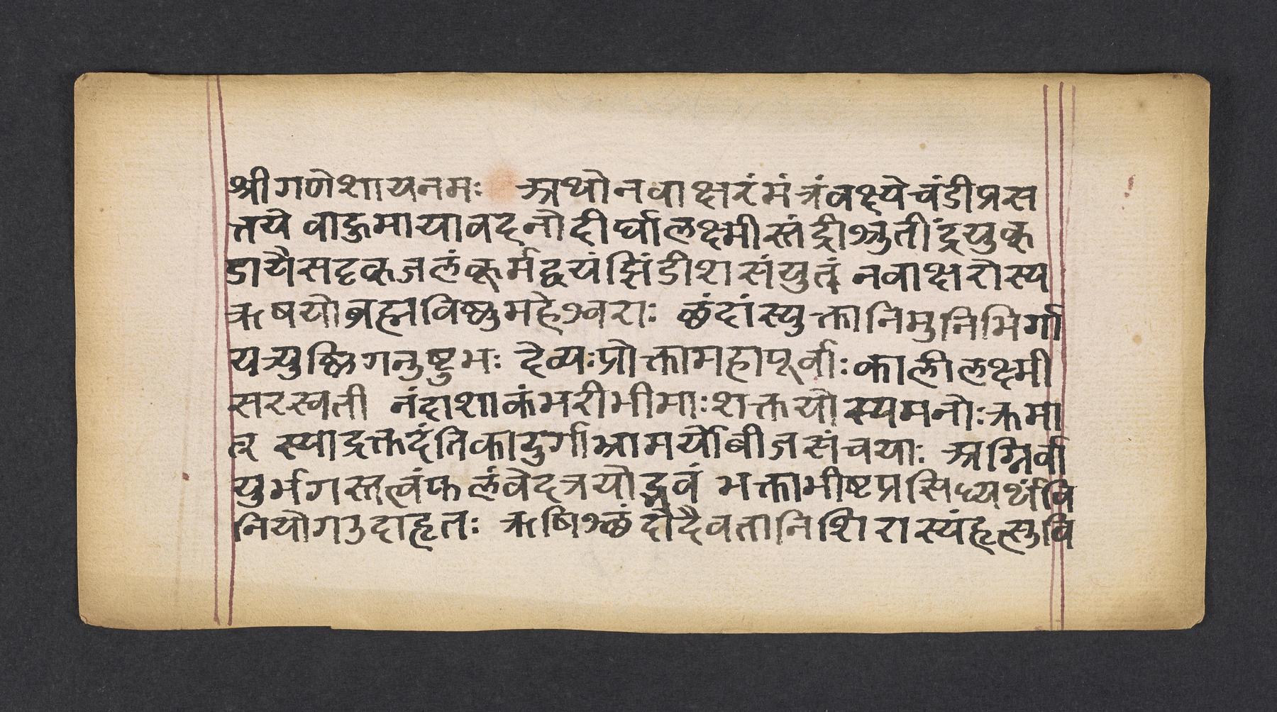 Manual containing rules and laws of dharma as well as the mantras to use in recitation for pleasing the Hindu goddess Caṇḍī.