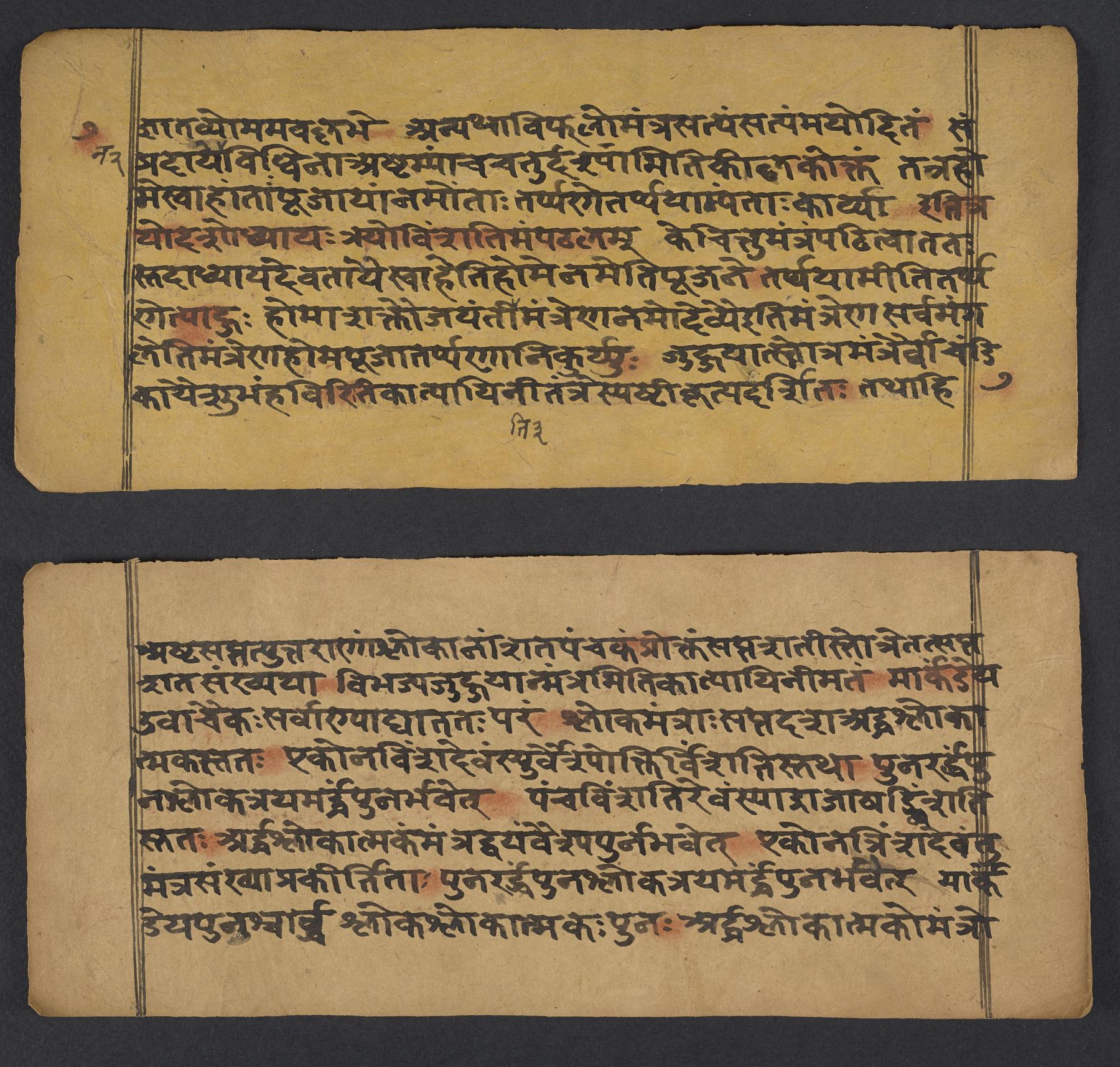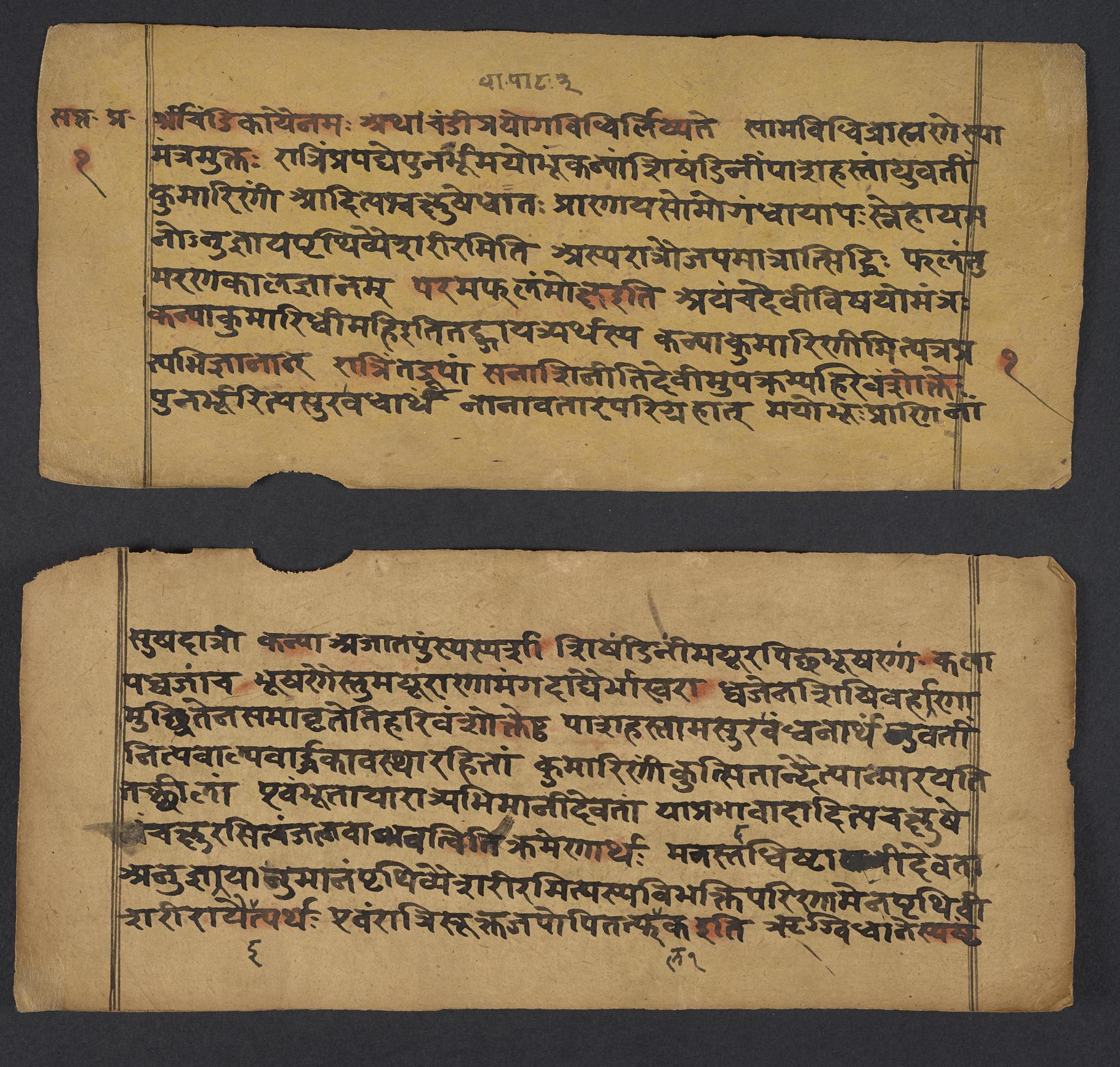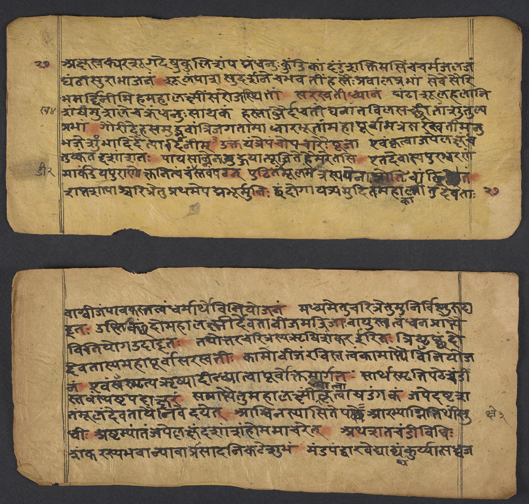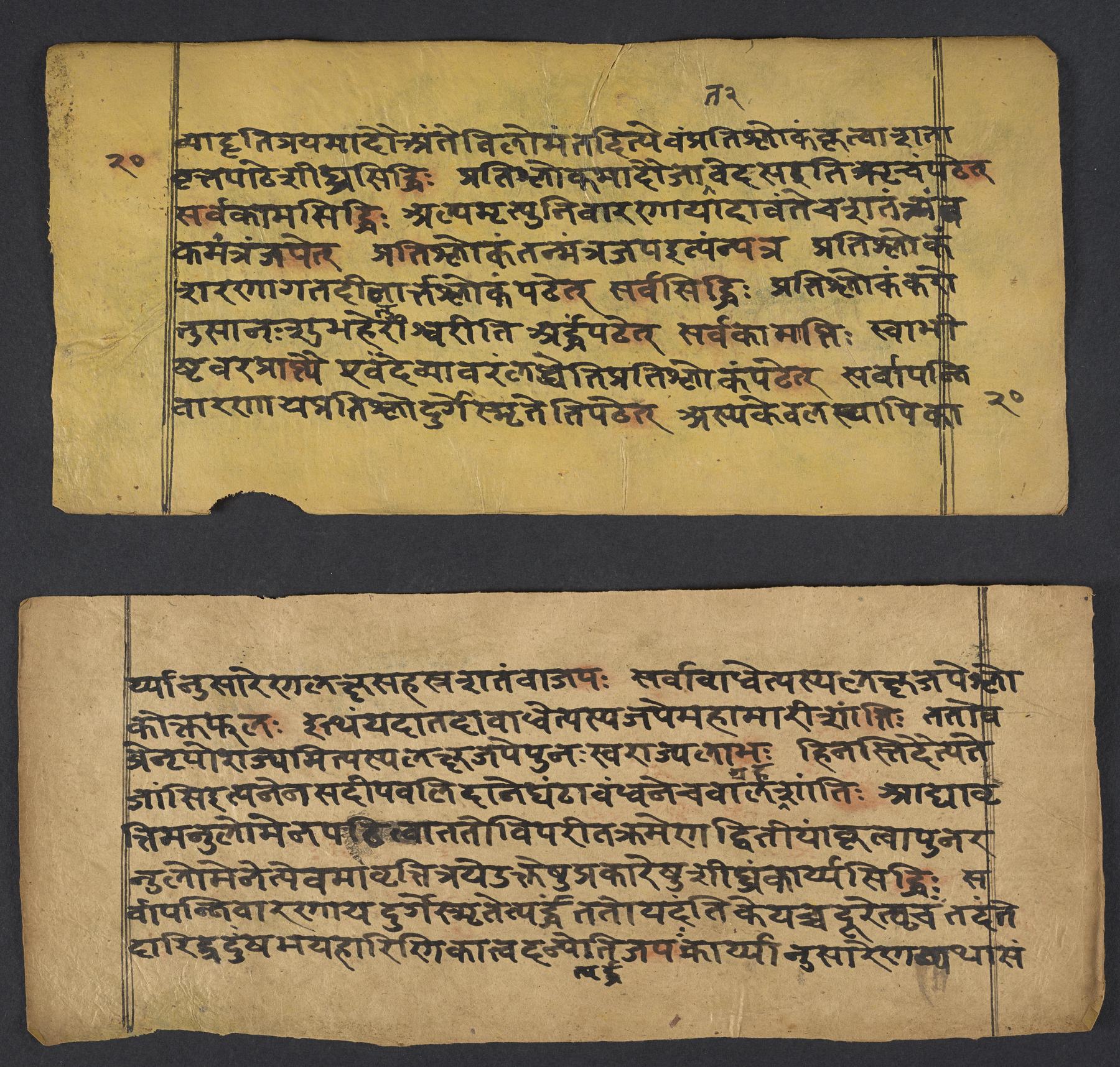 - These images and the content of Kislak Center for Special Collections, Rare Books and Manuscripts Ms. Coll. 390 Item 144: Caṇḍīstotraprayogavidhi are free of known copyright restrictions and in the public domain. See the Creative Commons Public Domain Mark page for usage details, http://creativecommons.org/publicdomain/mark/1.0/.