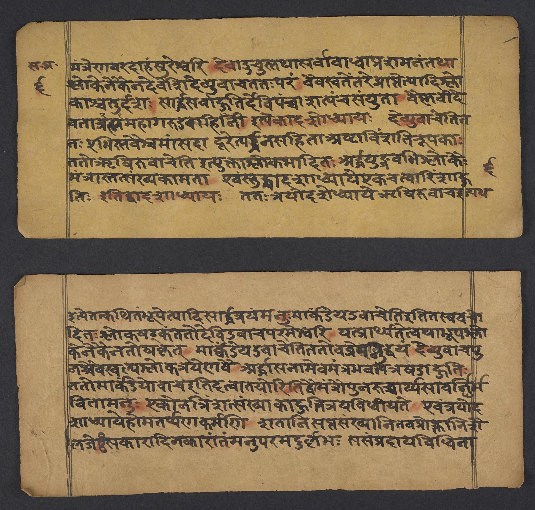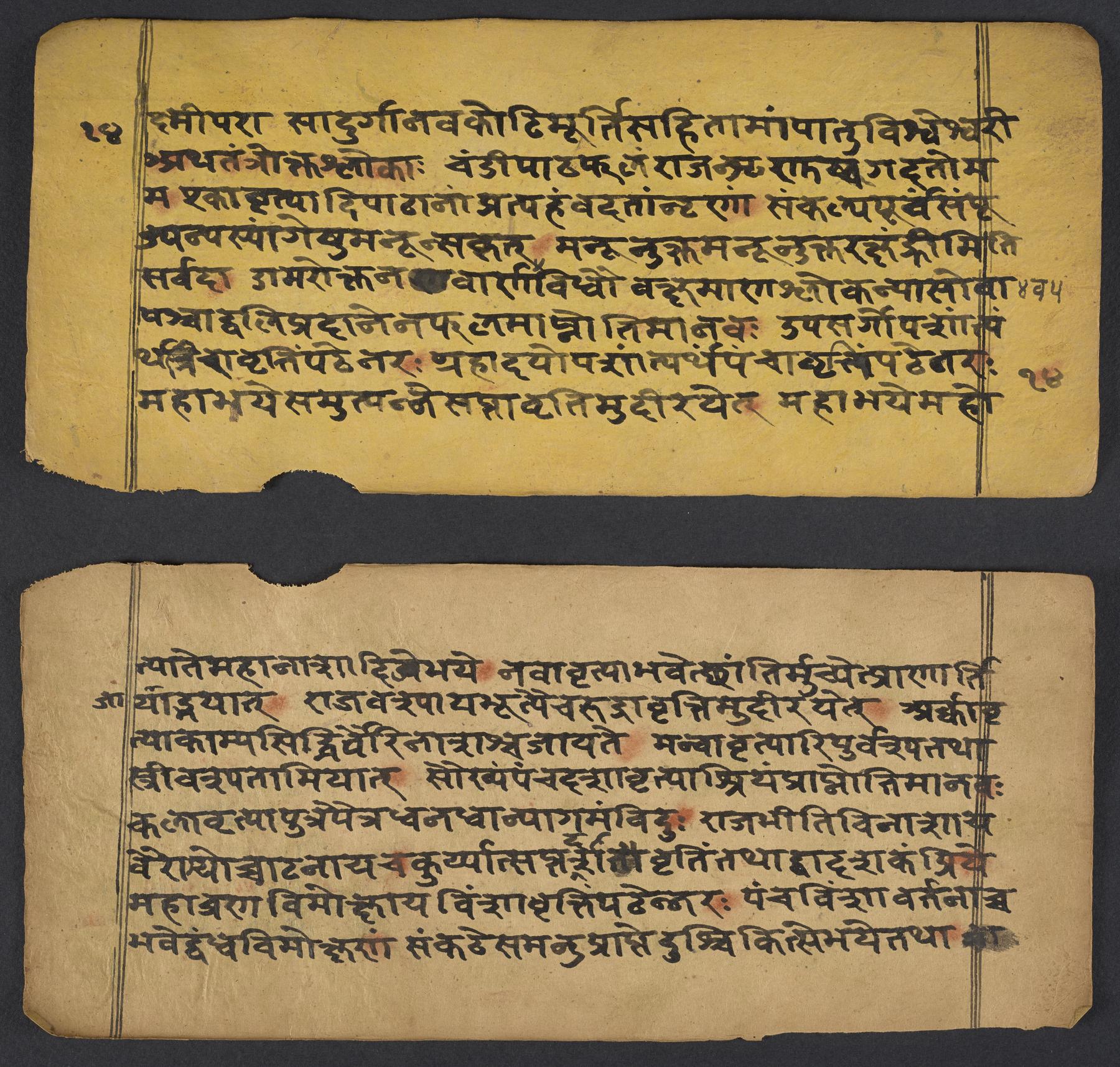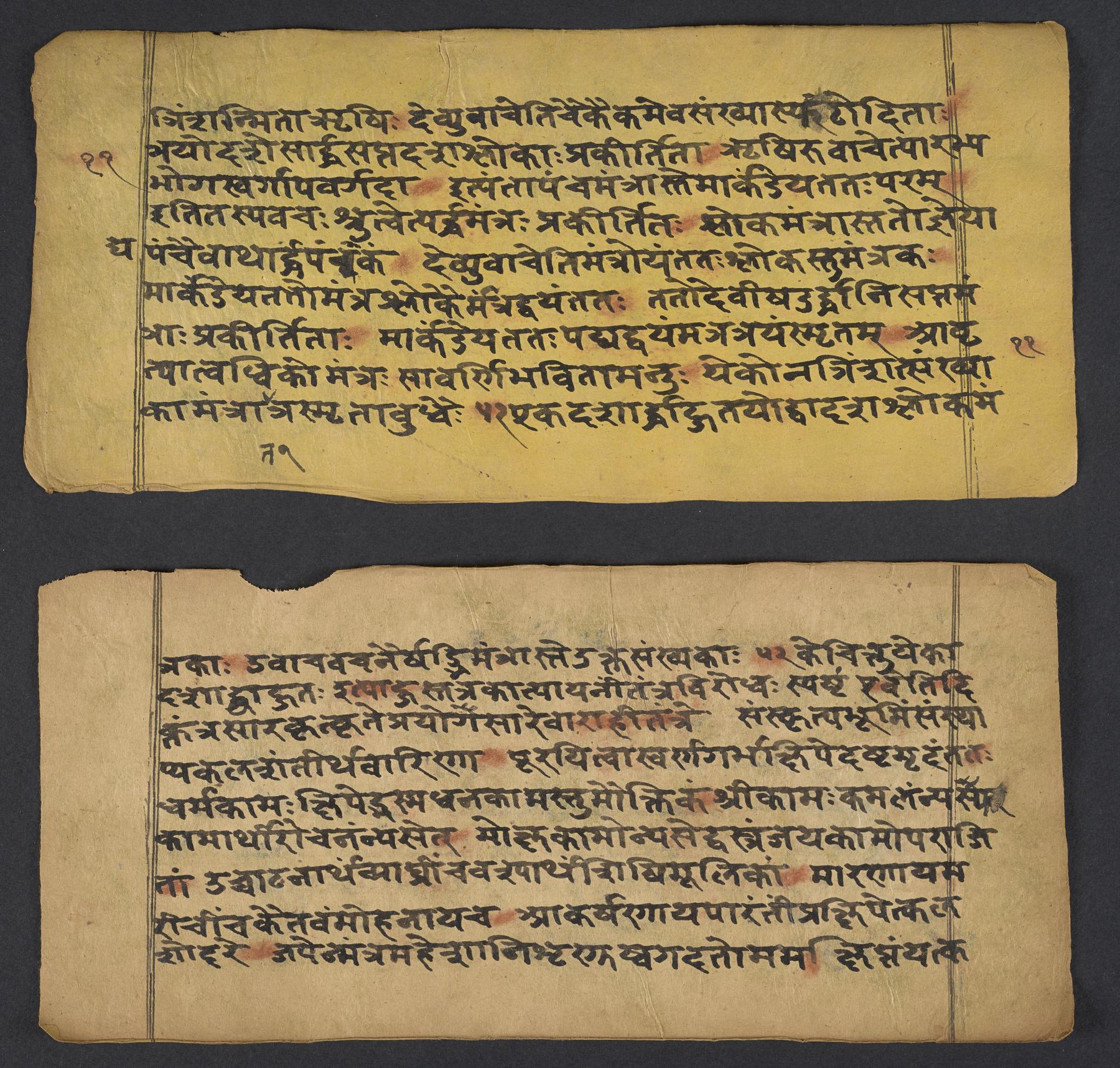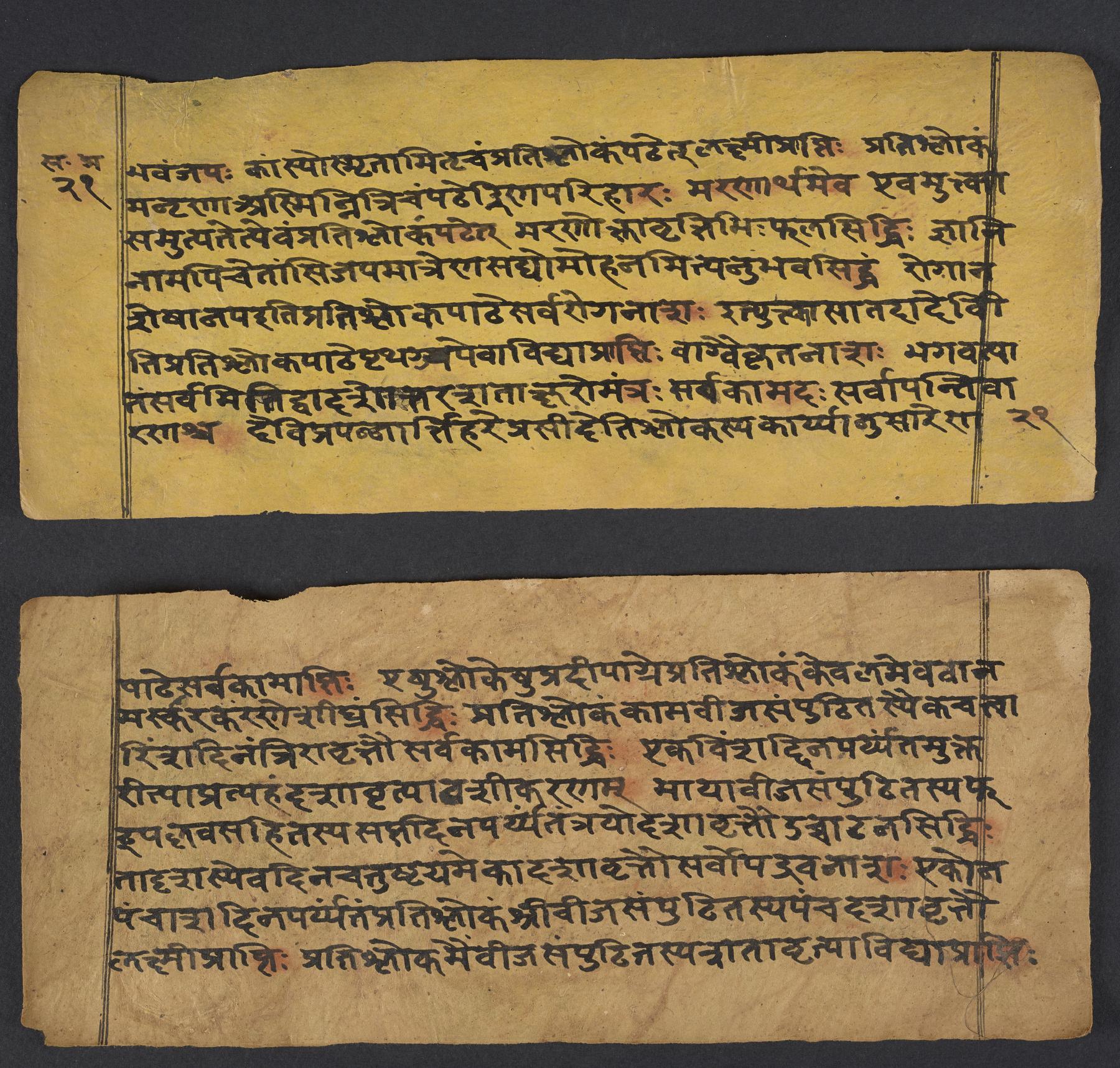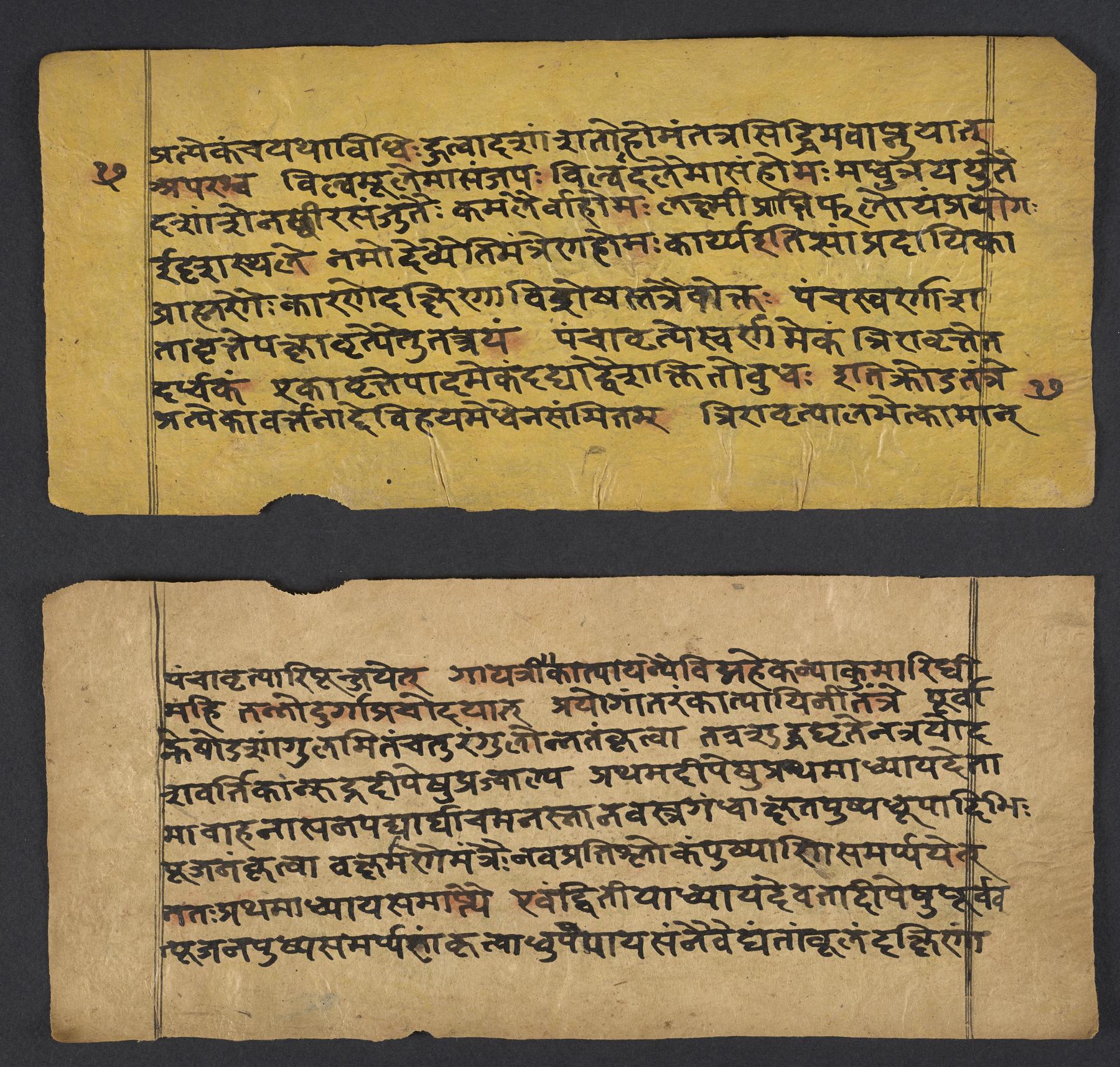 - These images and the content of Kislak Center for Special Collections, Rare Books and Manuscripts Ms. Coll. 390 Item 144: Caṇḍīstotraprayogavidhi are free of known copyright restrictions and in the public domain. See the Creative Commons Public Domain Mark page for usage details, http://creativecommons.org/publicdomain/mark/1.0/.