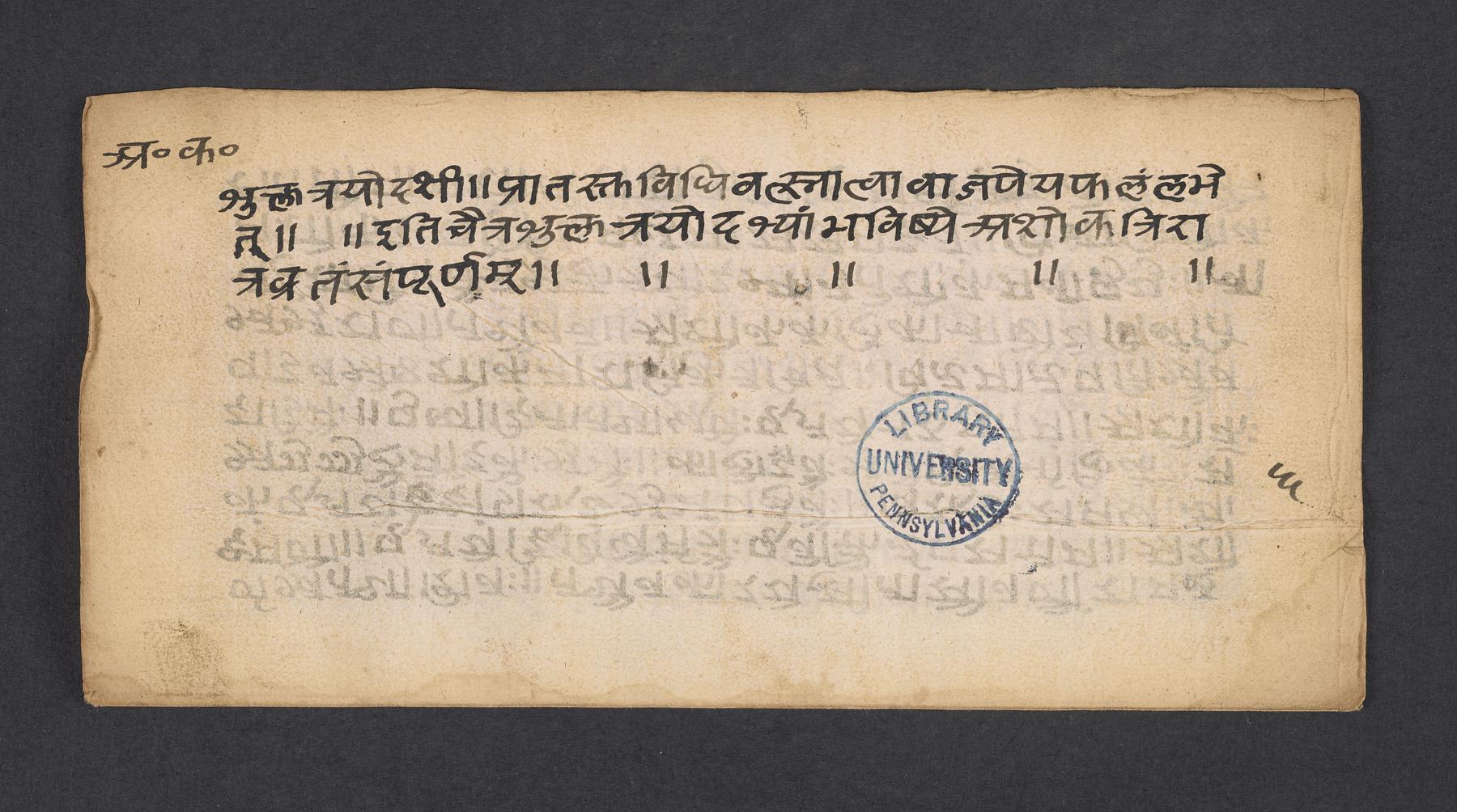 - These images and the content of Kislak Center for Special Collections, Rare Books and Manuscripts Ms. Coll. 390 Item 1455: Aśokatrirātravrata are free of known copyright restrictions and in the public domain. See the Creative Commons Public Domain Mark page for usage details, http://creativecommons.org/publicdomain/mark/1.0/.