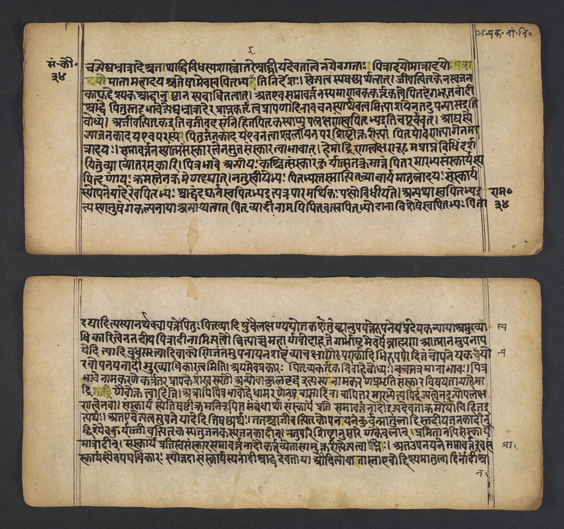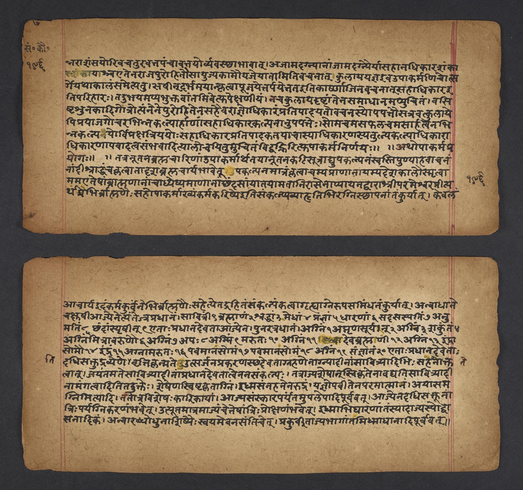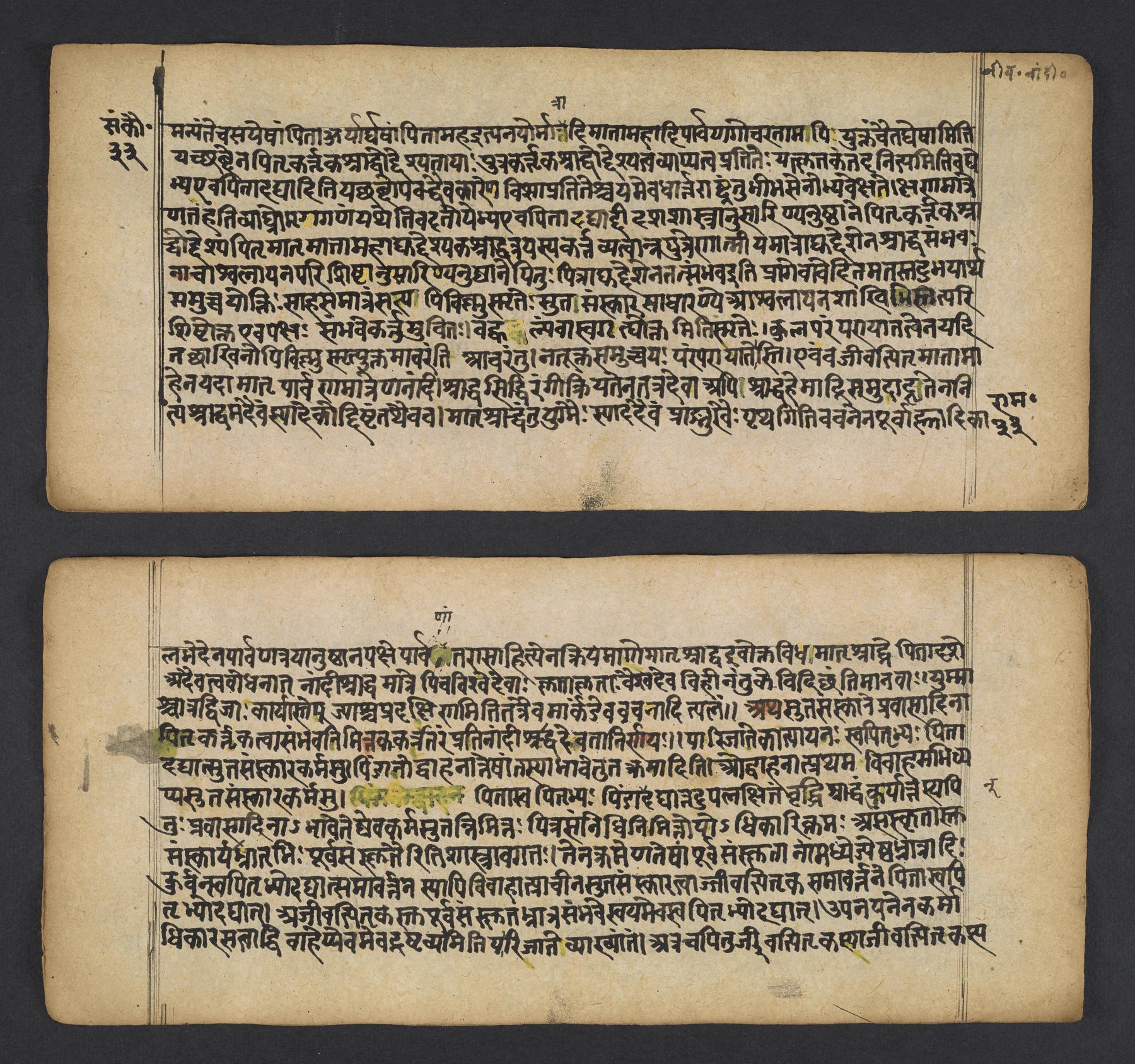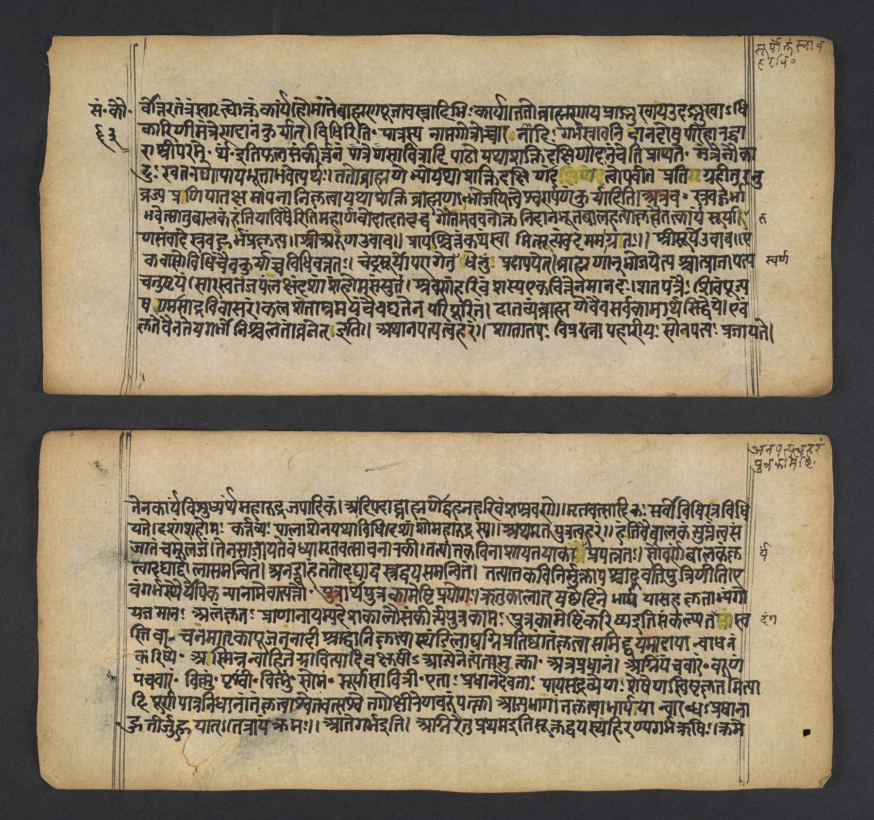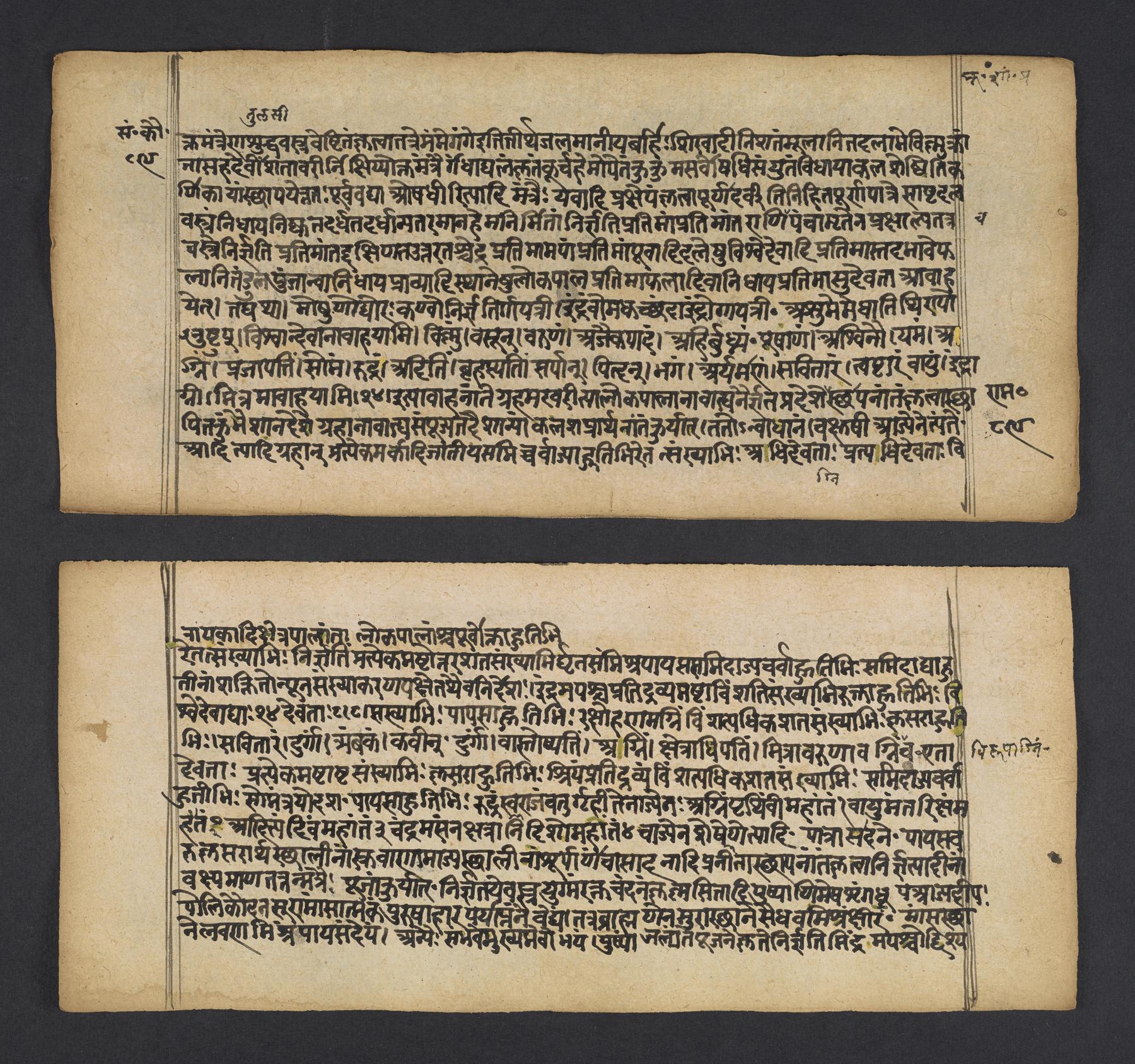 - These images and the content of Kislak Center for Special Collections, Rare Books and Manuscripts Ms. Coll. 390 Item 1575: Smṛtikaustubha are free of known copyright restrictions and in the public domain. See the Creative Commons Public Domain Mark page for usage details, http://creativecommons.org/publicdomain/mark/1.0/.