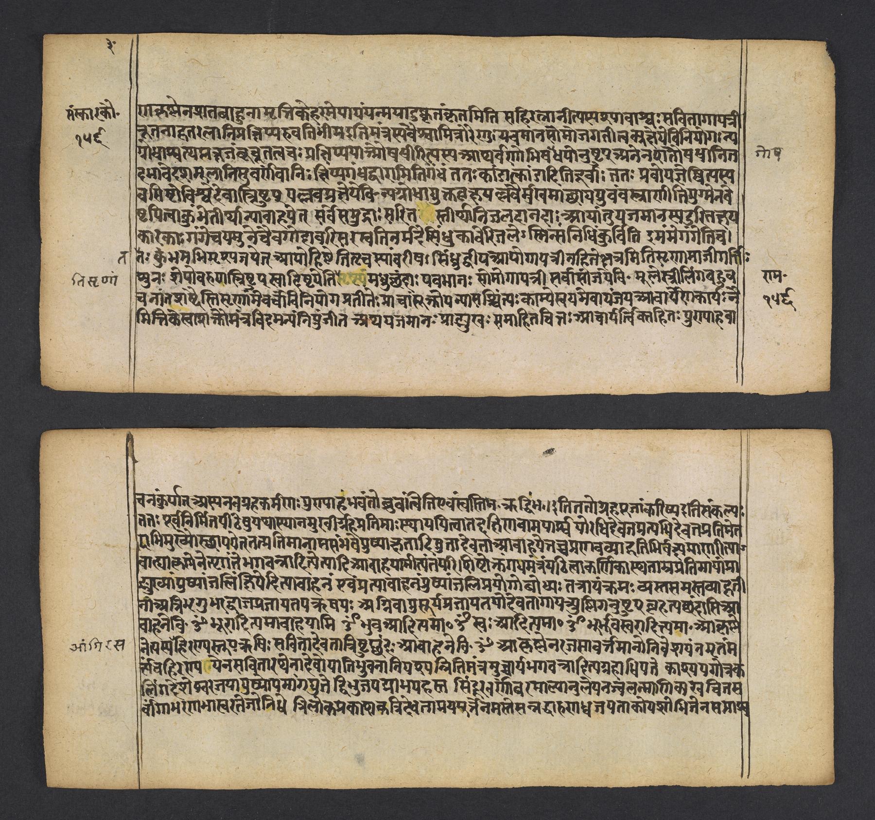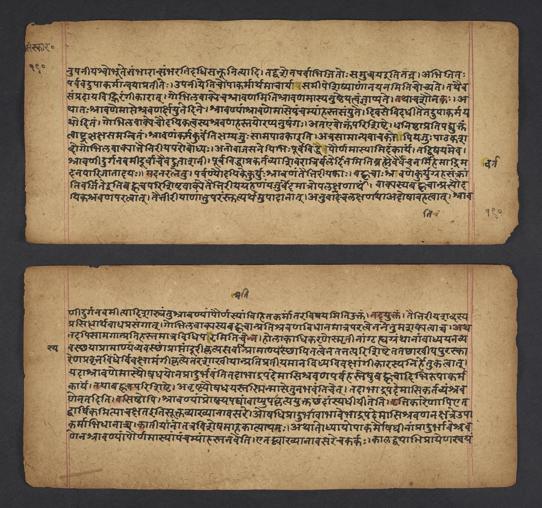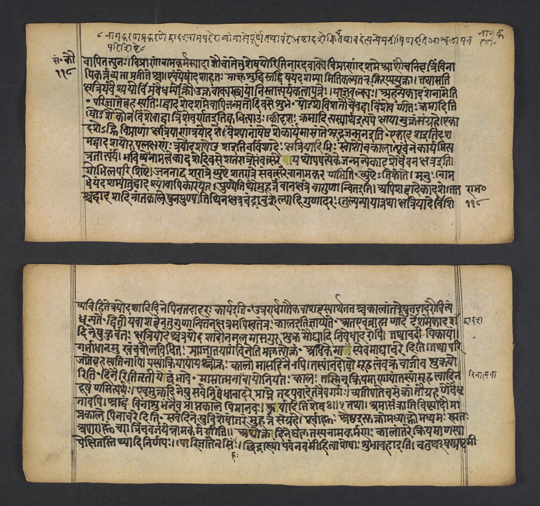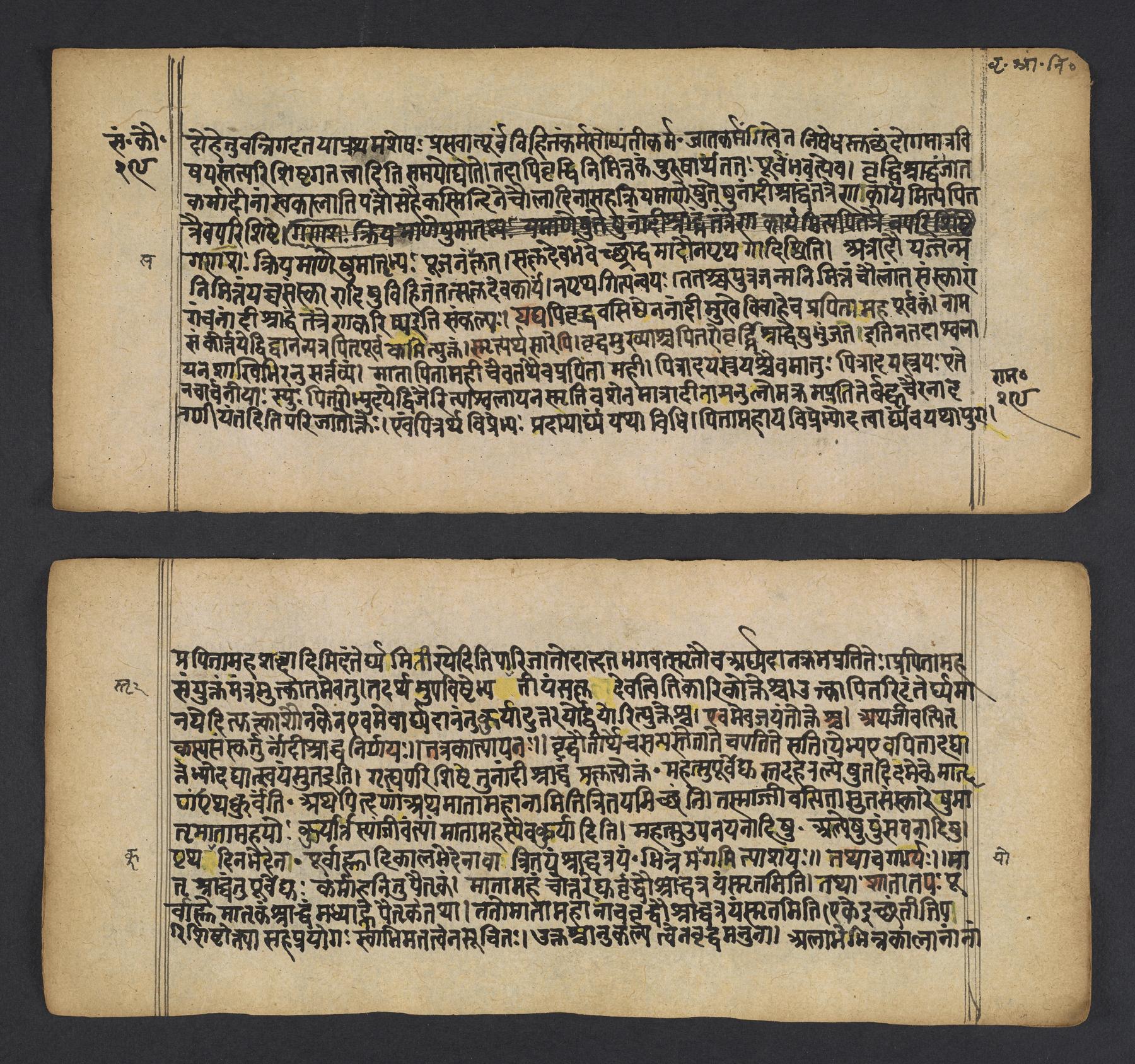 - These images and the content of Kislak Center for Special Collections, Rare Books and Manuscripts Ms. Coll. 390 Item 1575: Smṛtikaustubha are free of known copyright restrictions and in the public domain. See the Creative Commons Public Domain Mark page for usage details, http://creativecommons.org/publicdomain/mark/1.0/.