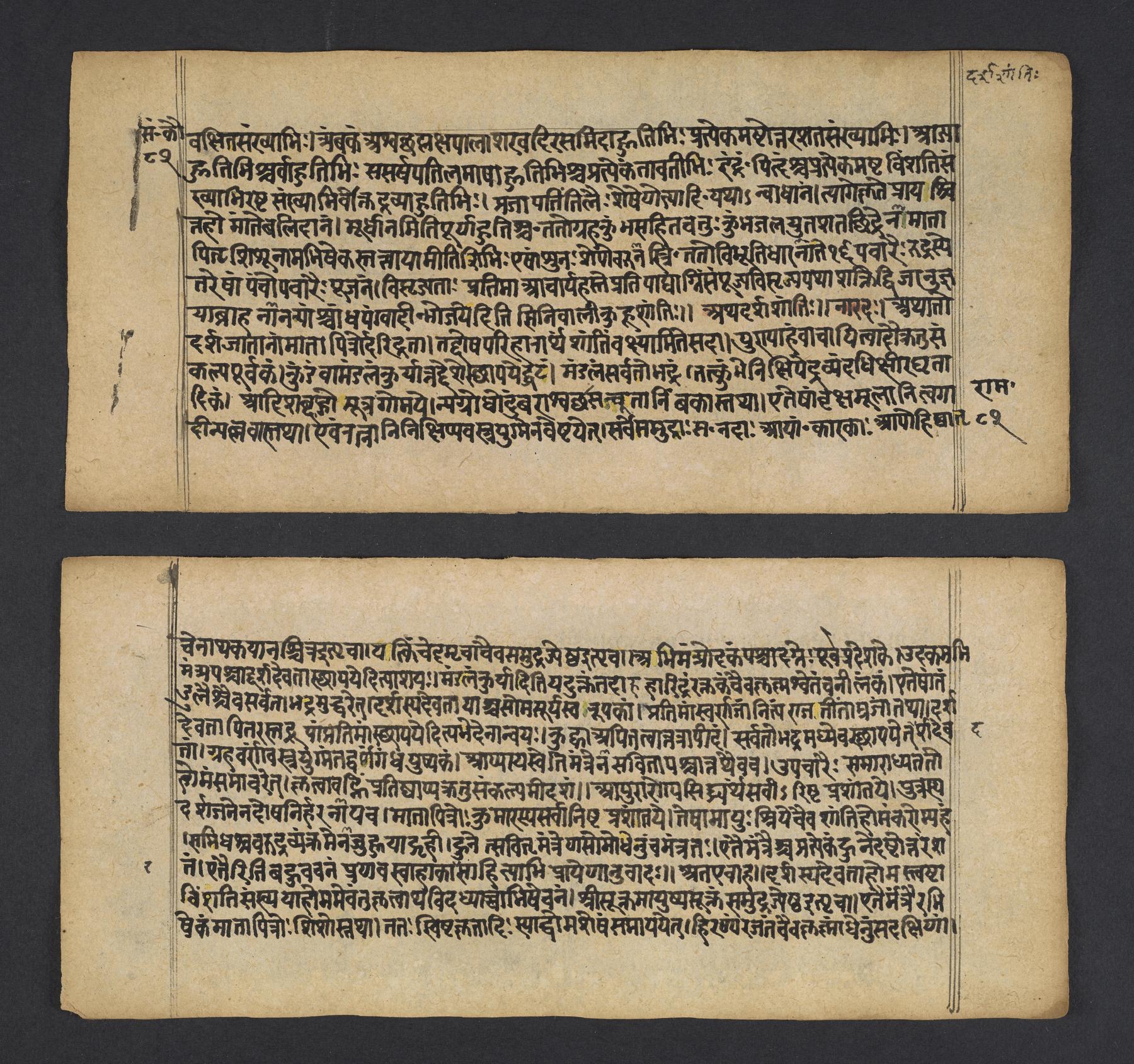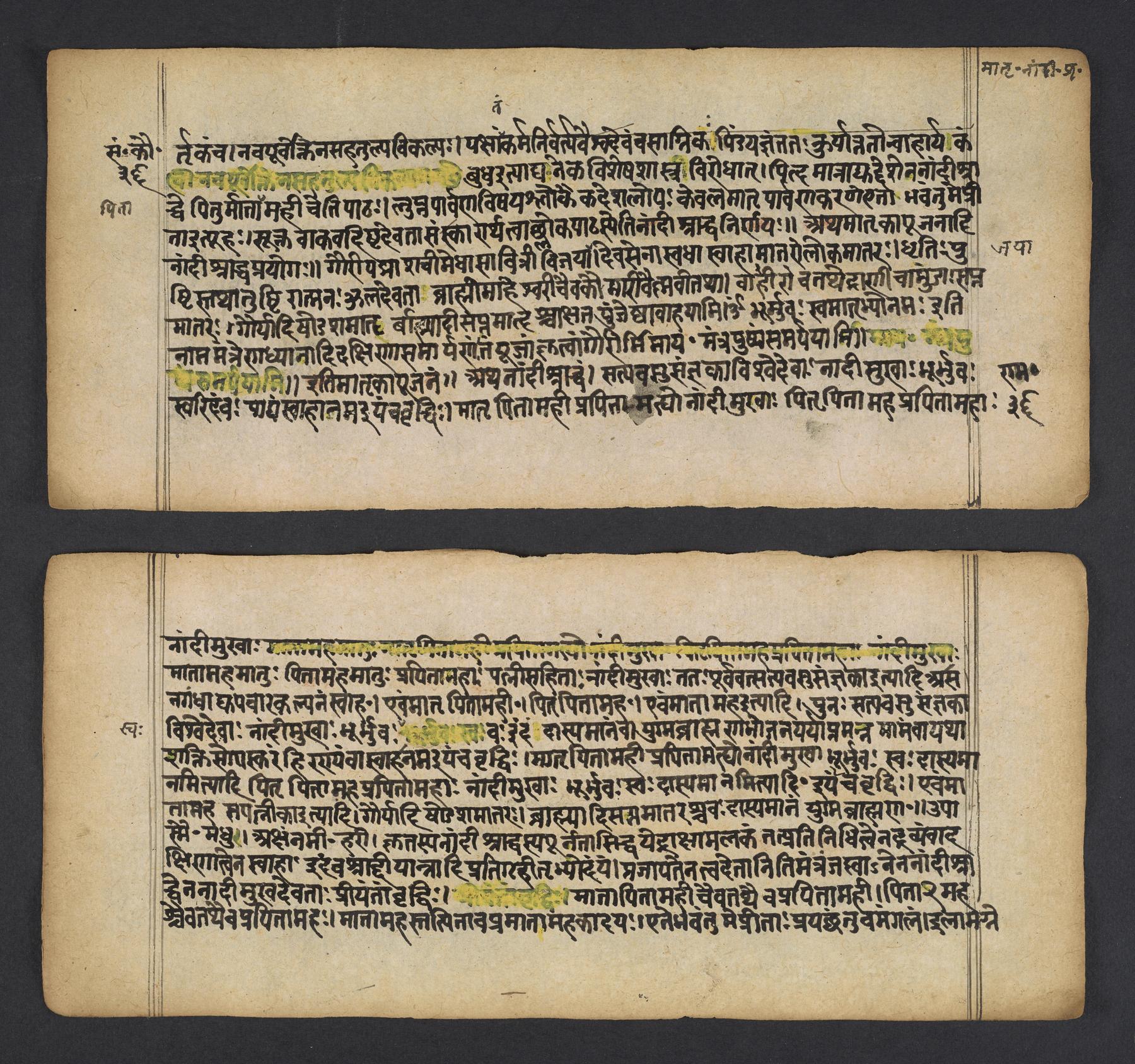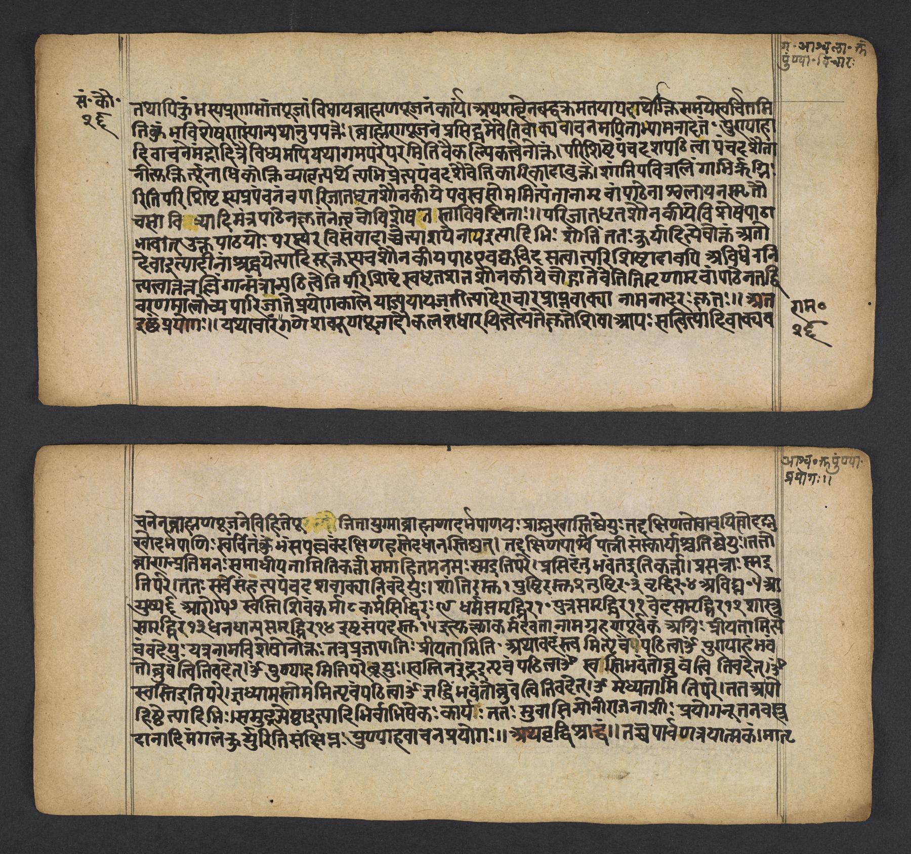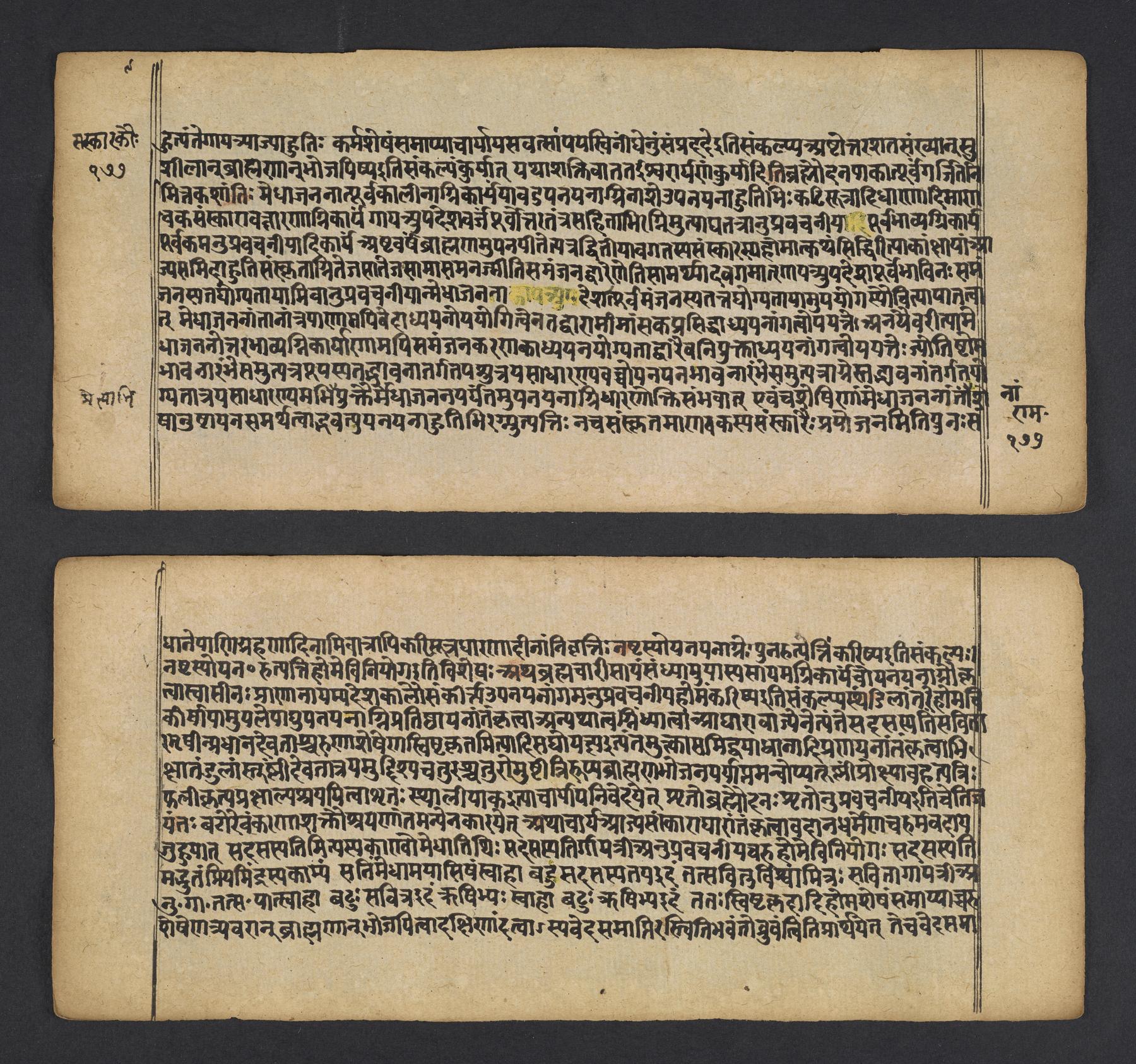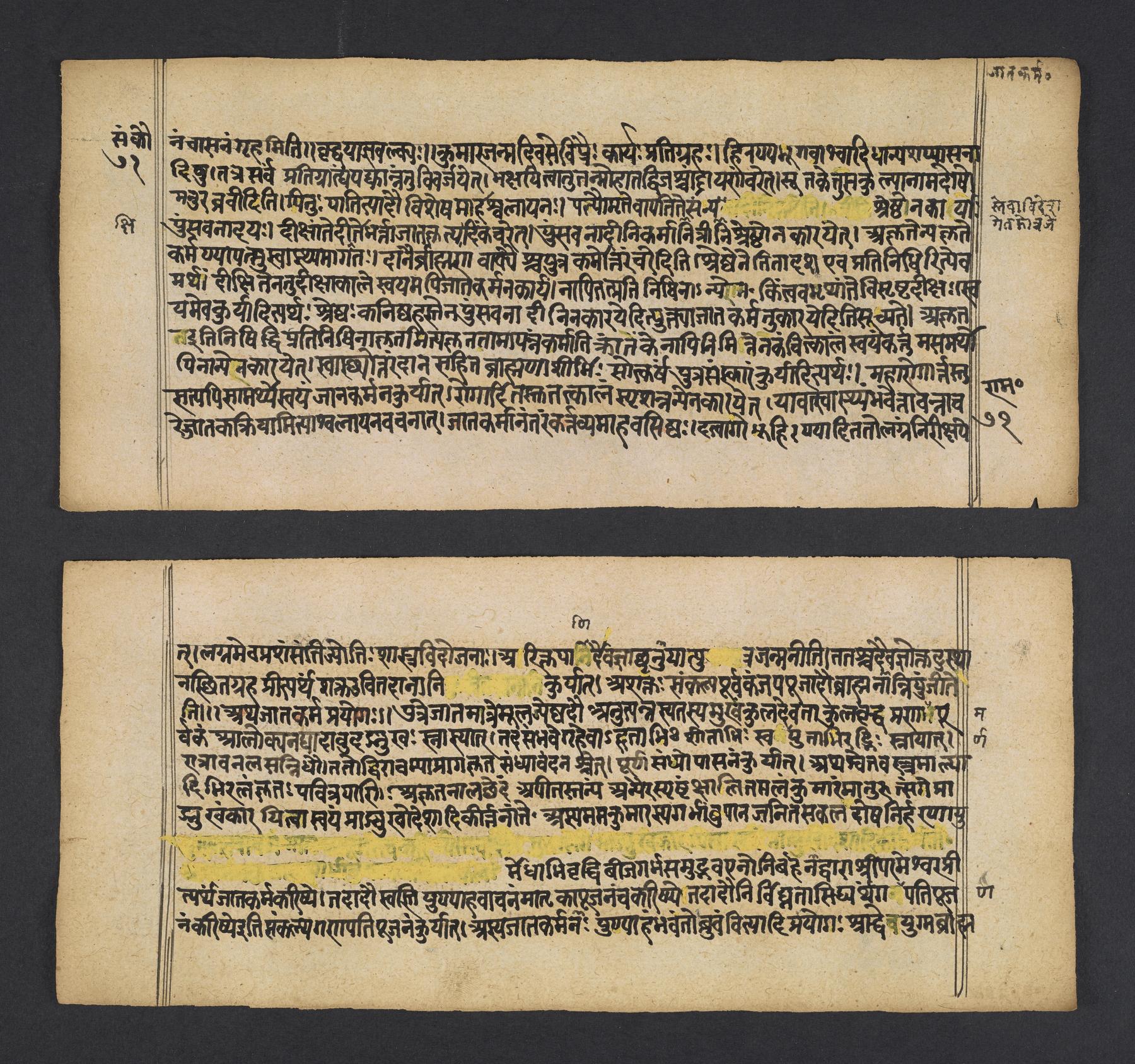 - These images and the content of Kislak Center for Special Collections, Rare Books and Manuscripts Ms. Coll. 390 Item 1575: Smṛtikaustubha are free of known copyright restrictions and in the public domain. See the Creative Commons Public Domain Mark page for usage details, http://creativecommons.org/publicdomain/mark/1.0/.