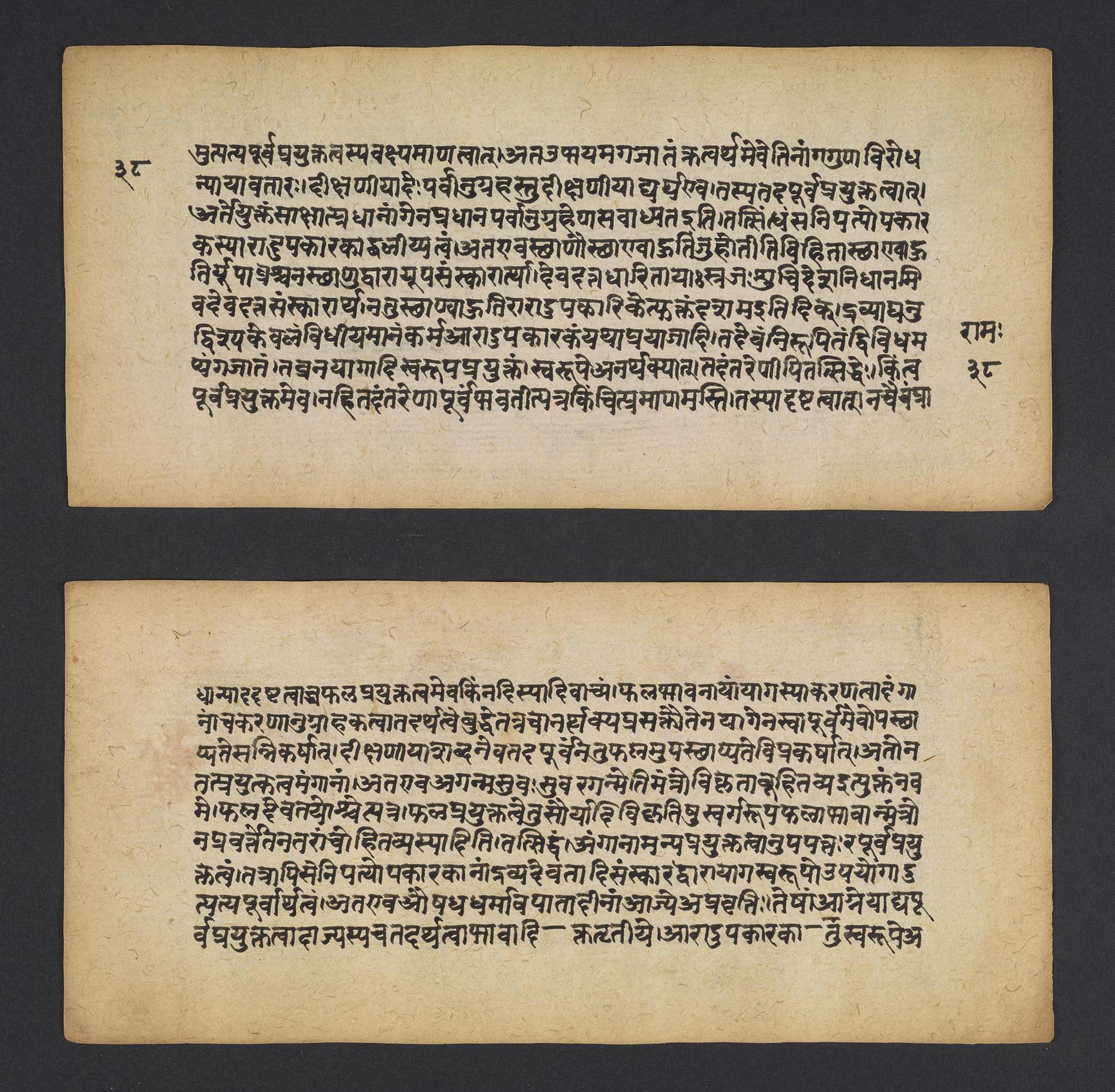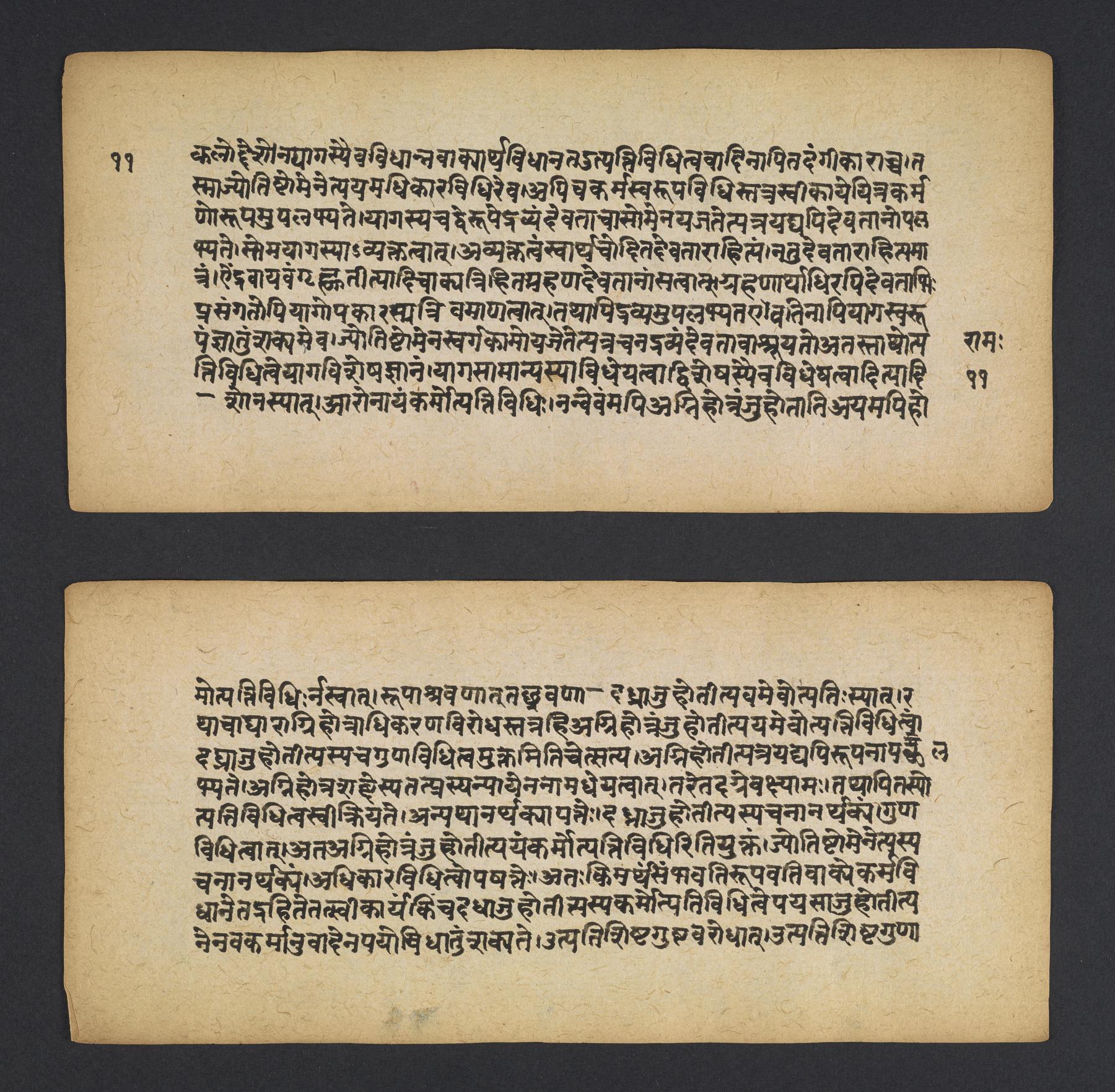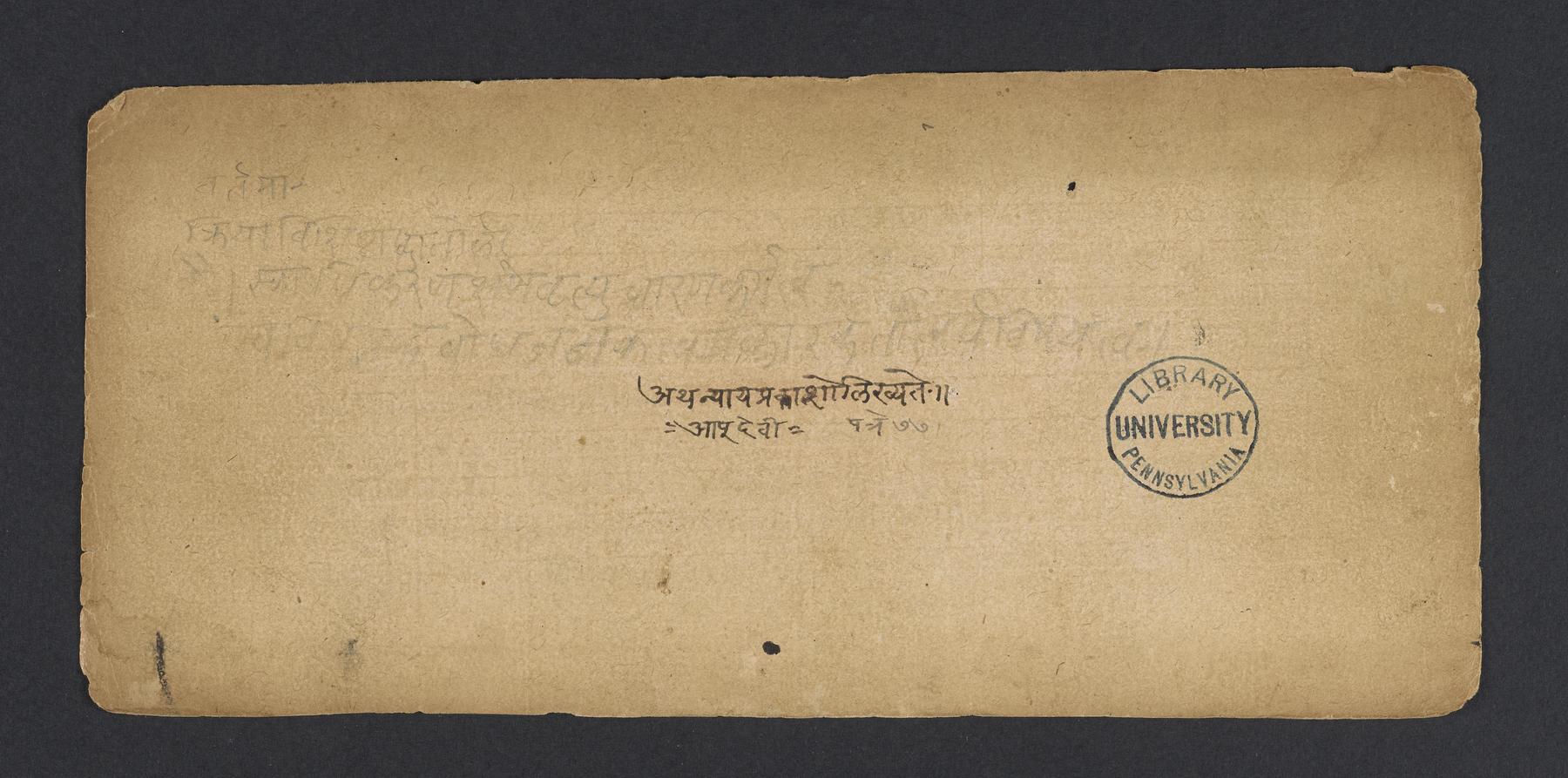 - These images and the content of Kislak Center for Special Collections, Rare Books and Manuscripts Ms. Coll. 390 Item 1955: Mīmāṃsānyāyaprakāśa are free of known copyright restrictions and in the public domain. See the Creative Commons Public Domain Mark page for usage details, http://creativecommons.org/publicdomain/mark/1.0/.