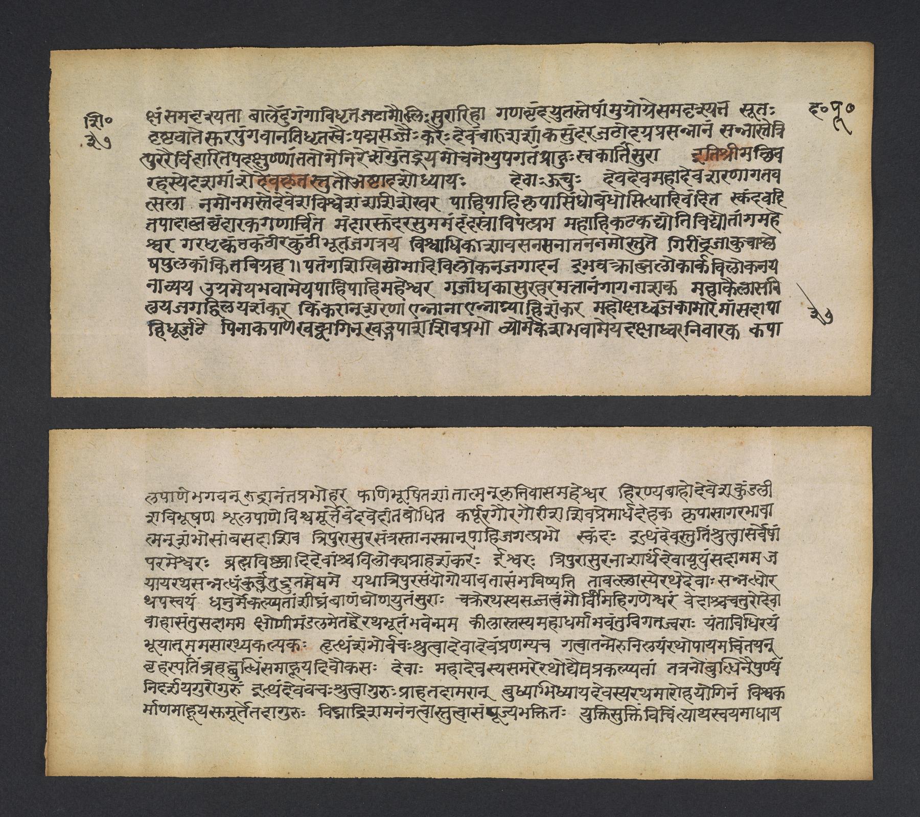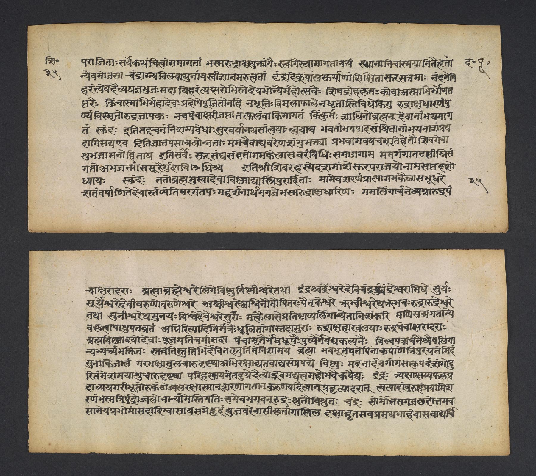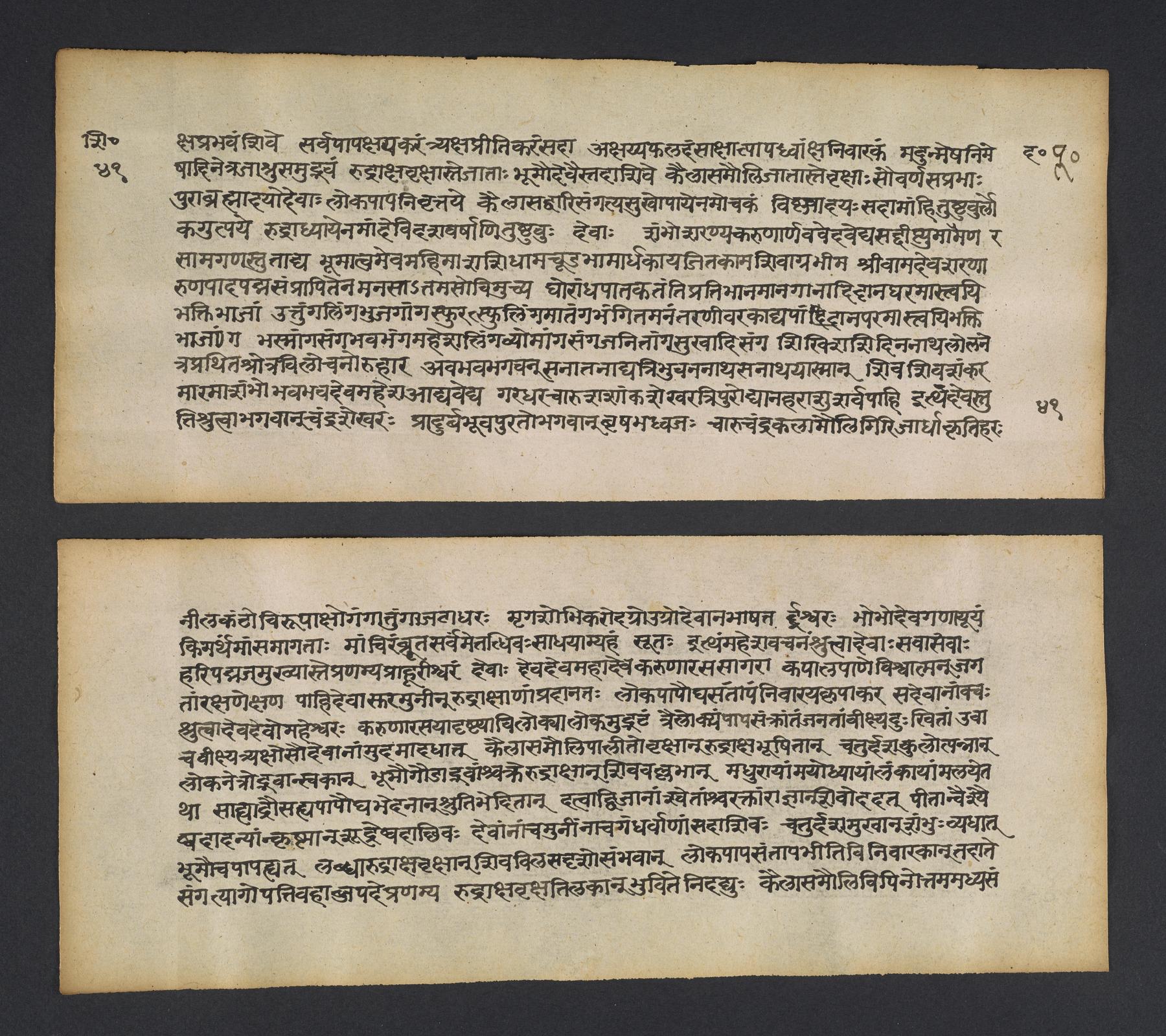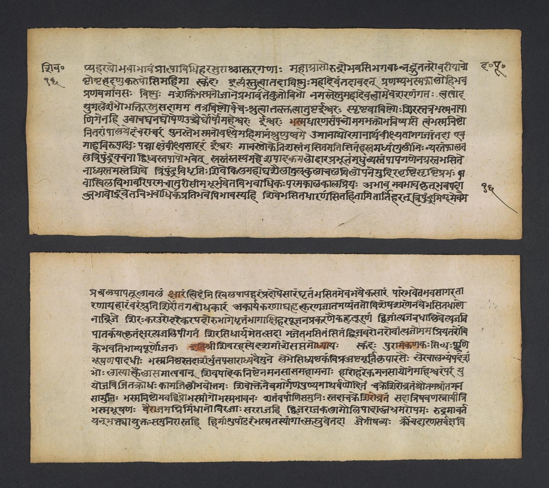 Manuscript contains adhyāyas 1-25 of a larger work called the Śivarahasya, which is itself part of a work on Tantra called the Rudrayāmalatantra. It is dedicated to the praise and veneration of the Hindu deity Śiva, especially in his form of Rudra (the howler). Presented as a discourse between Śiva and his divine son Skanda (also known as Kārttikeya).