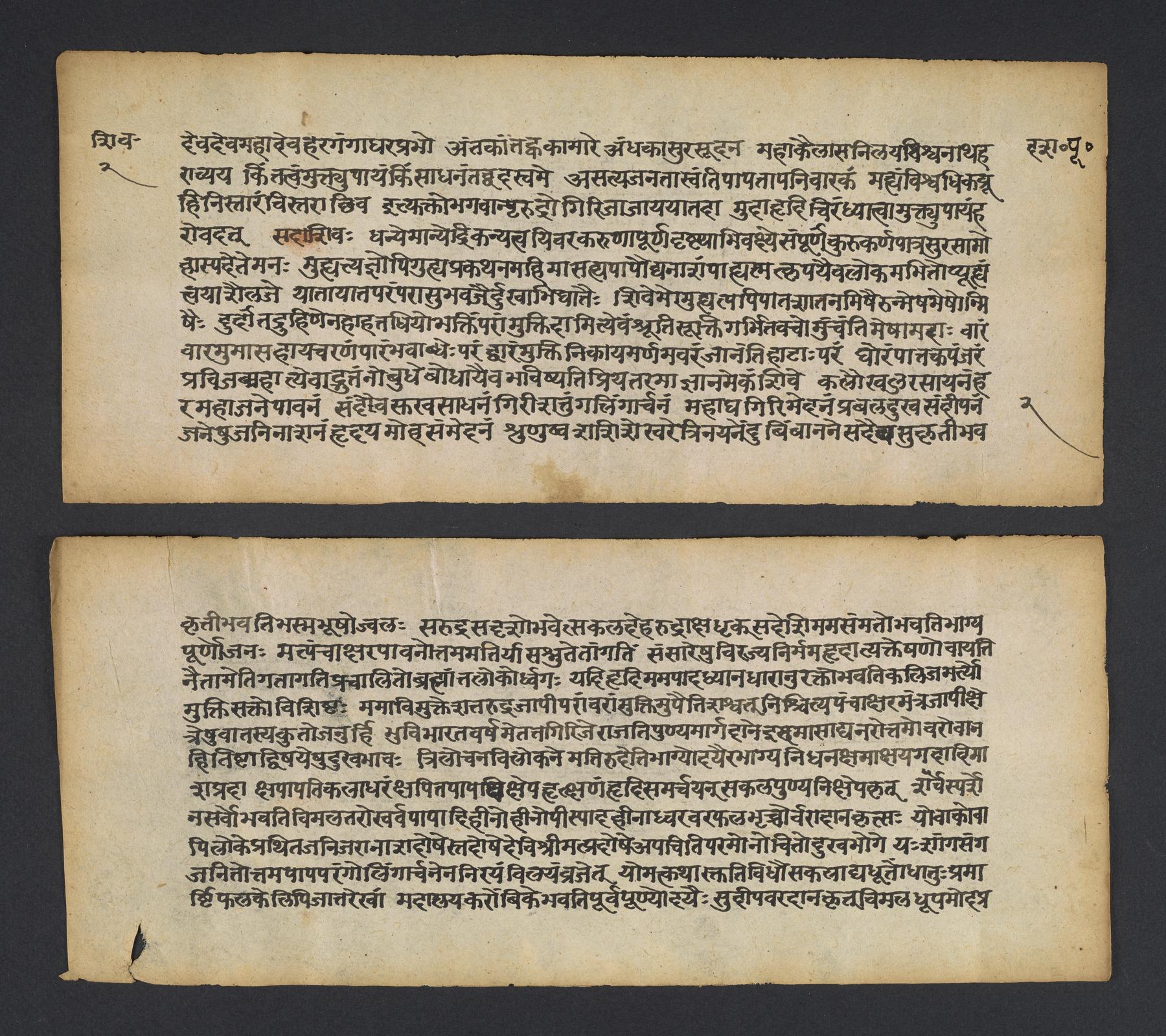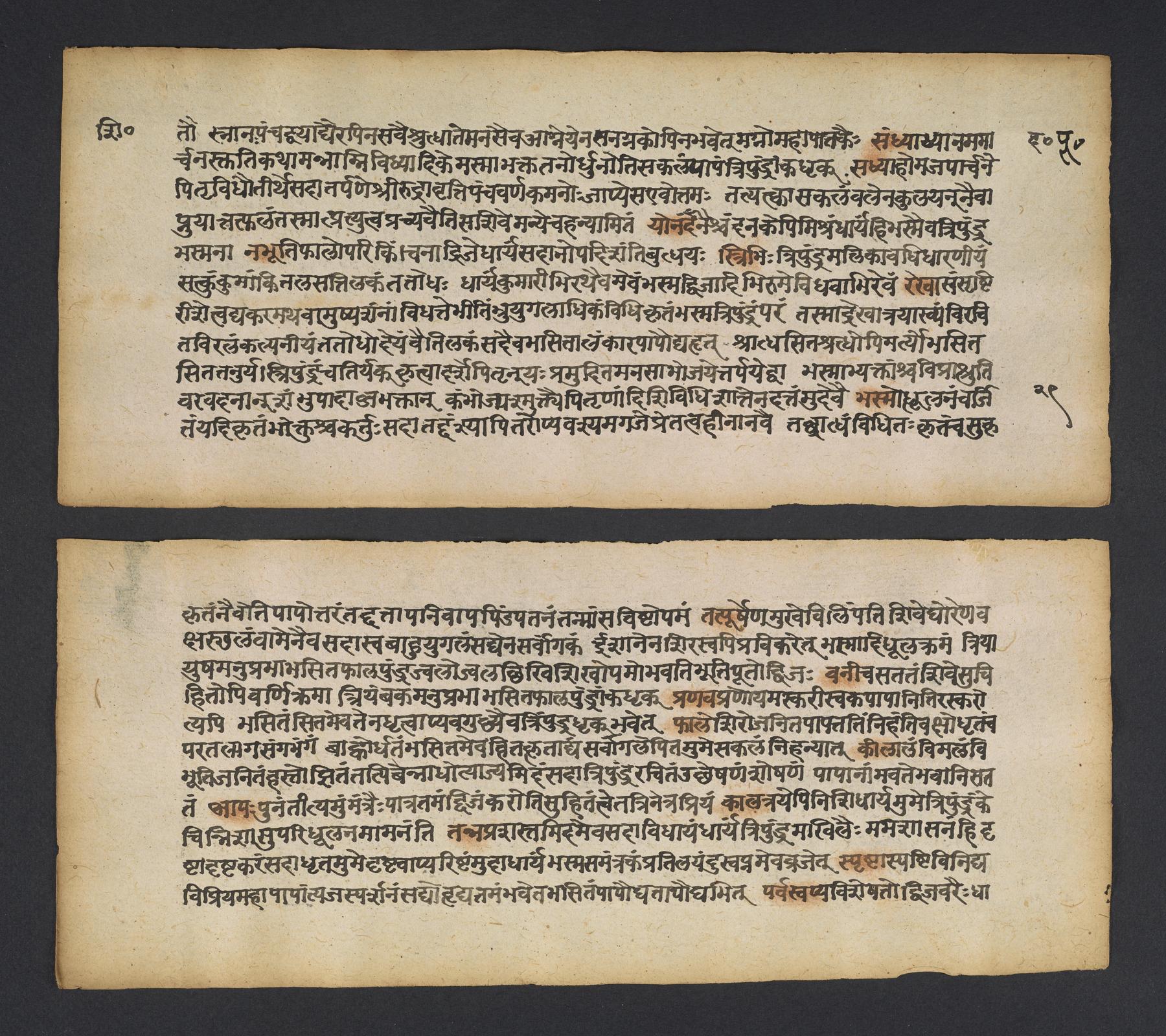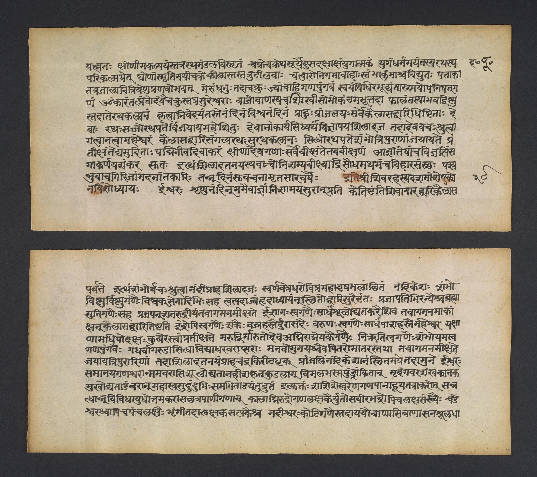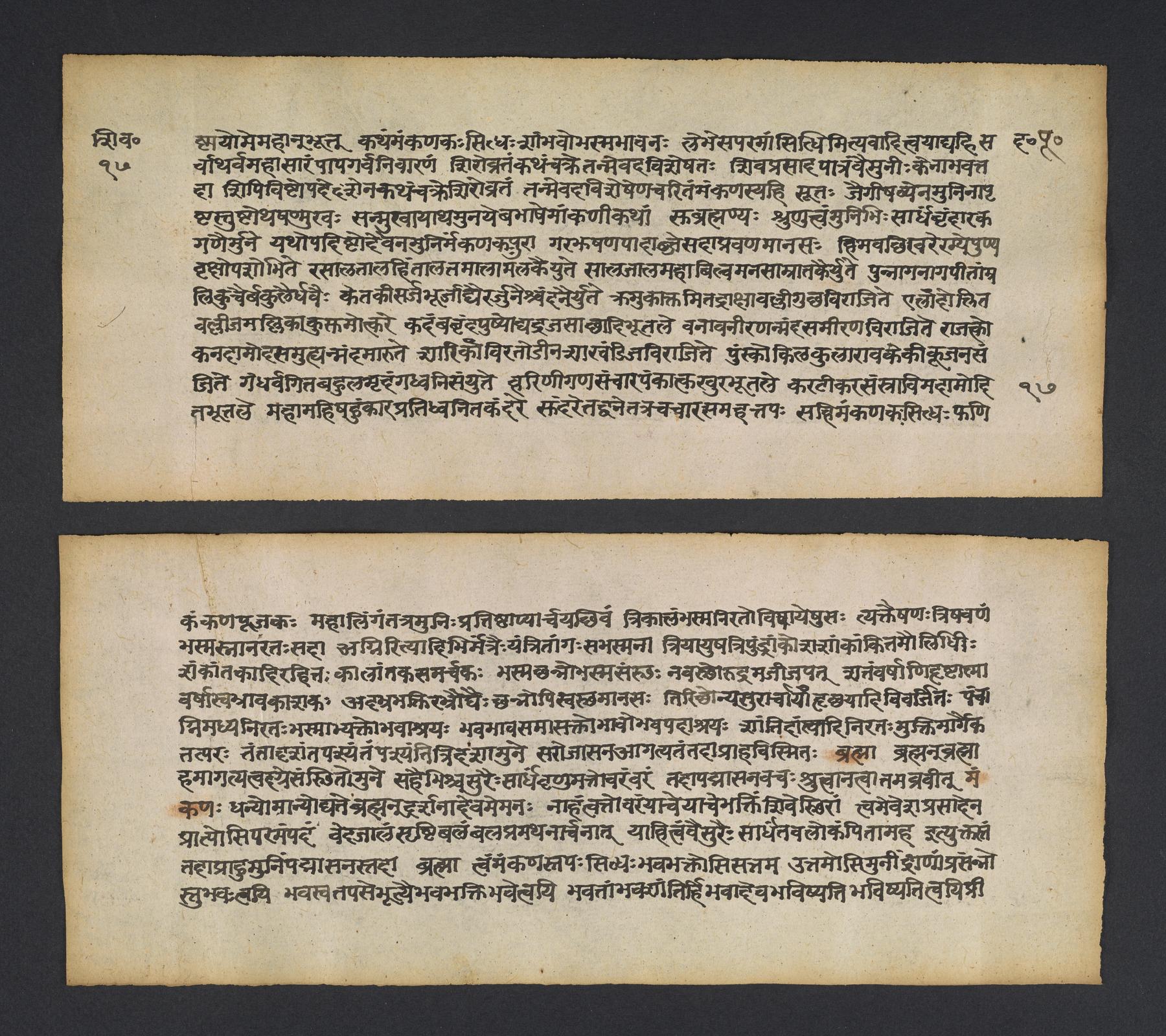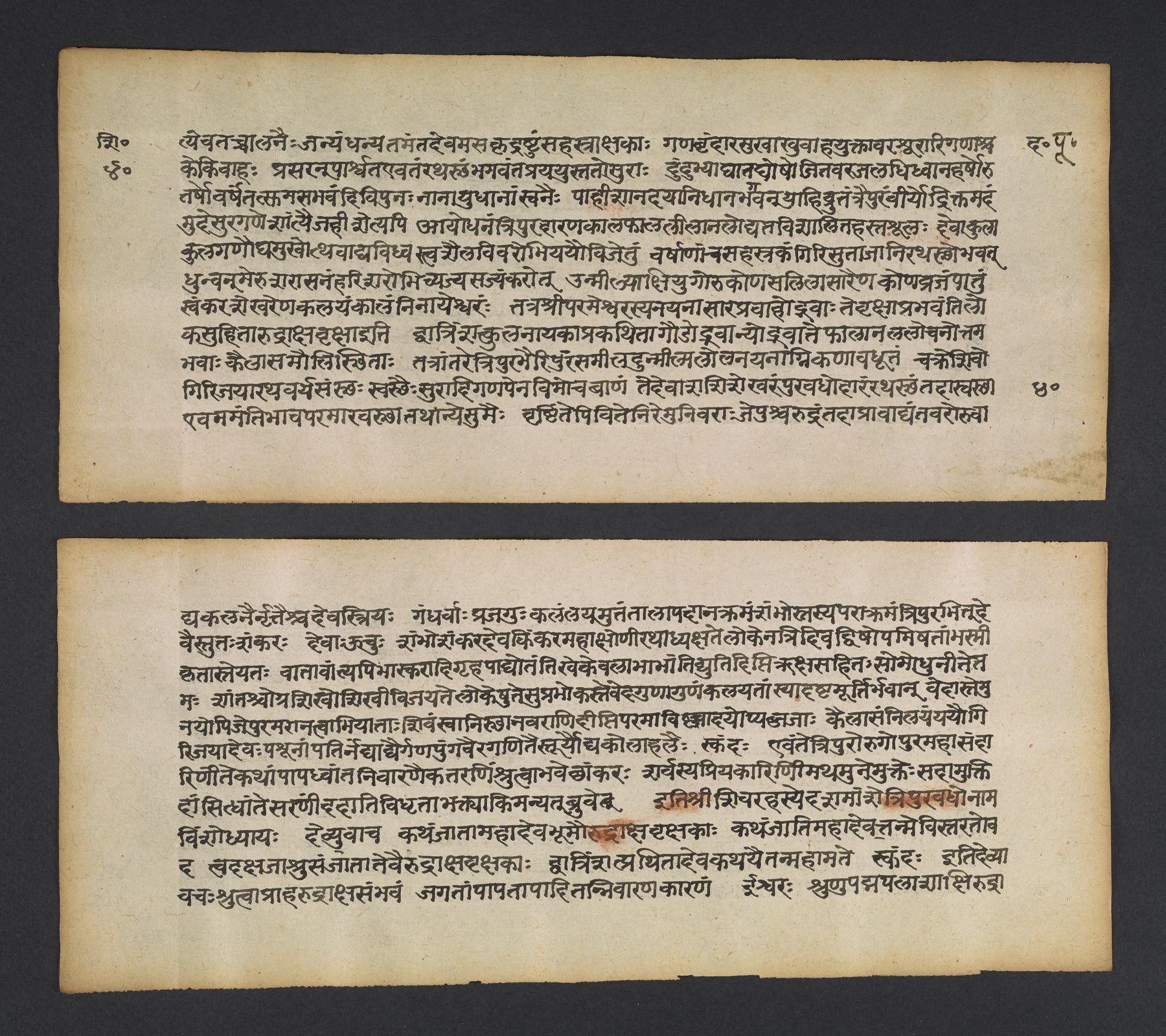 Manuscript contains adhyāyas 1-25 of a larger work called the Śivarahasya, which is itself part of a work on Tantra called the Rudrayāmalatantra. It is dedicated to the praise and veneration of the Hindu deity Śiva, especially in his form of Rudra (the howler). Presented as a discourse between Śiva and his divine son Skanda (also known as Kārttikeya).
