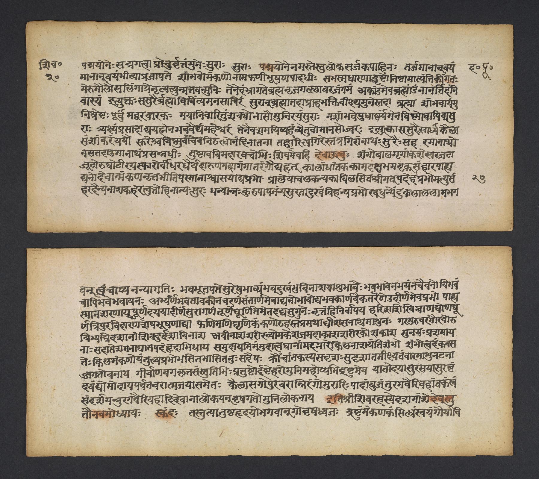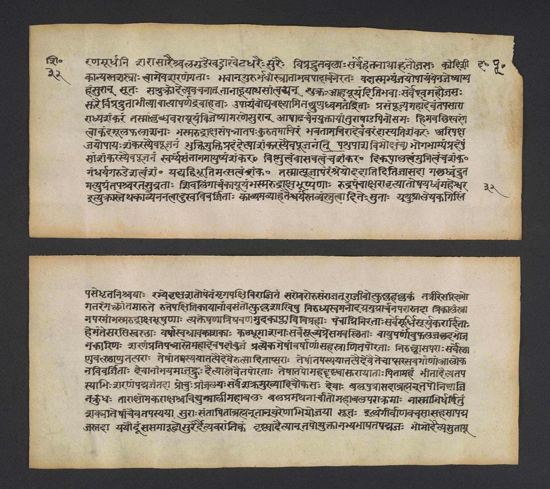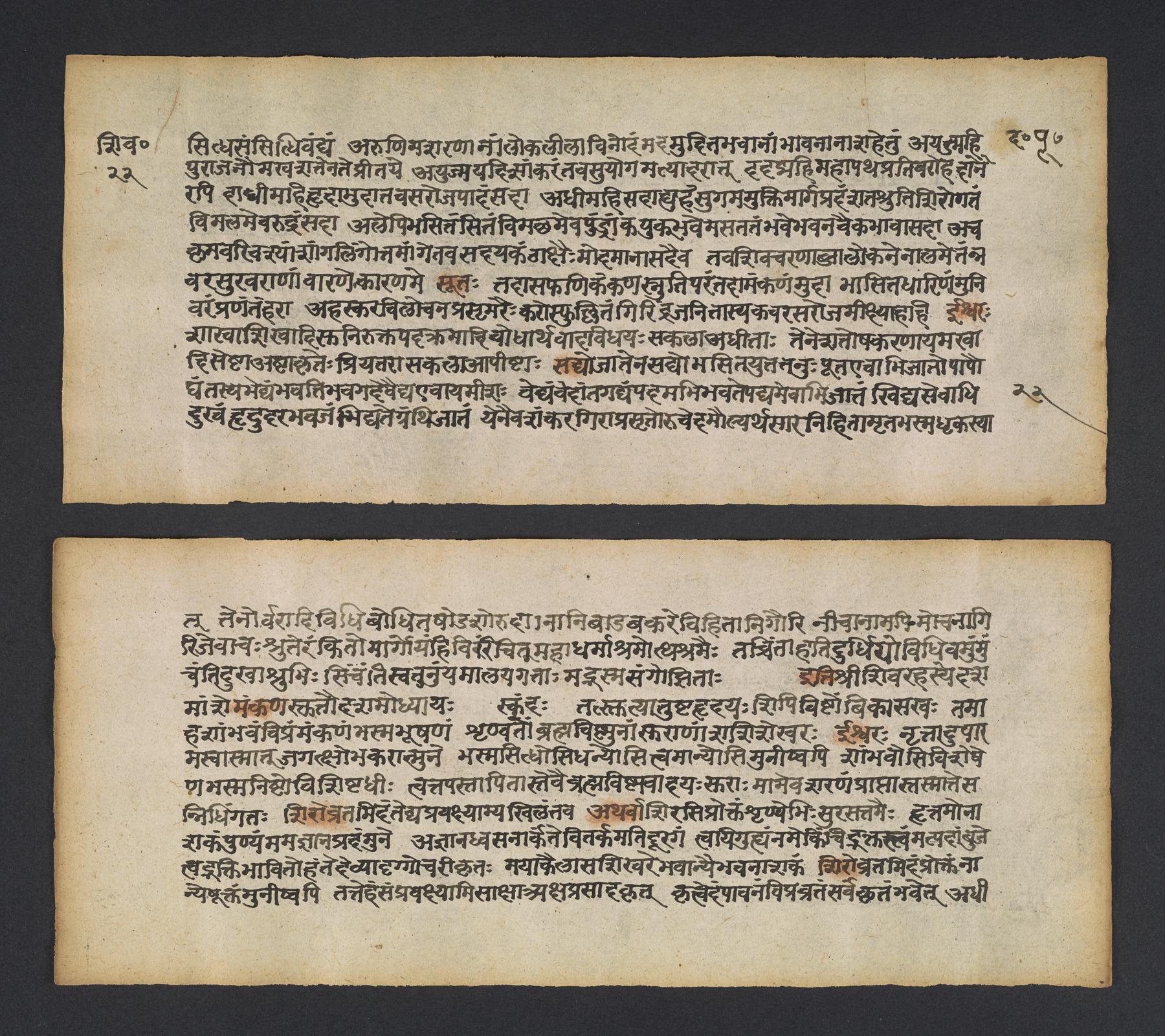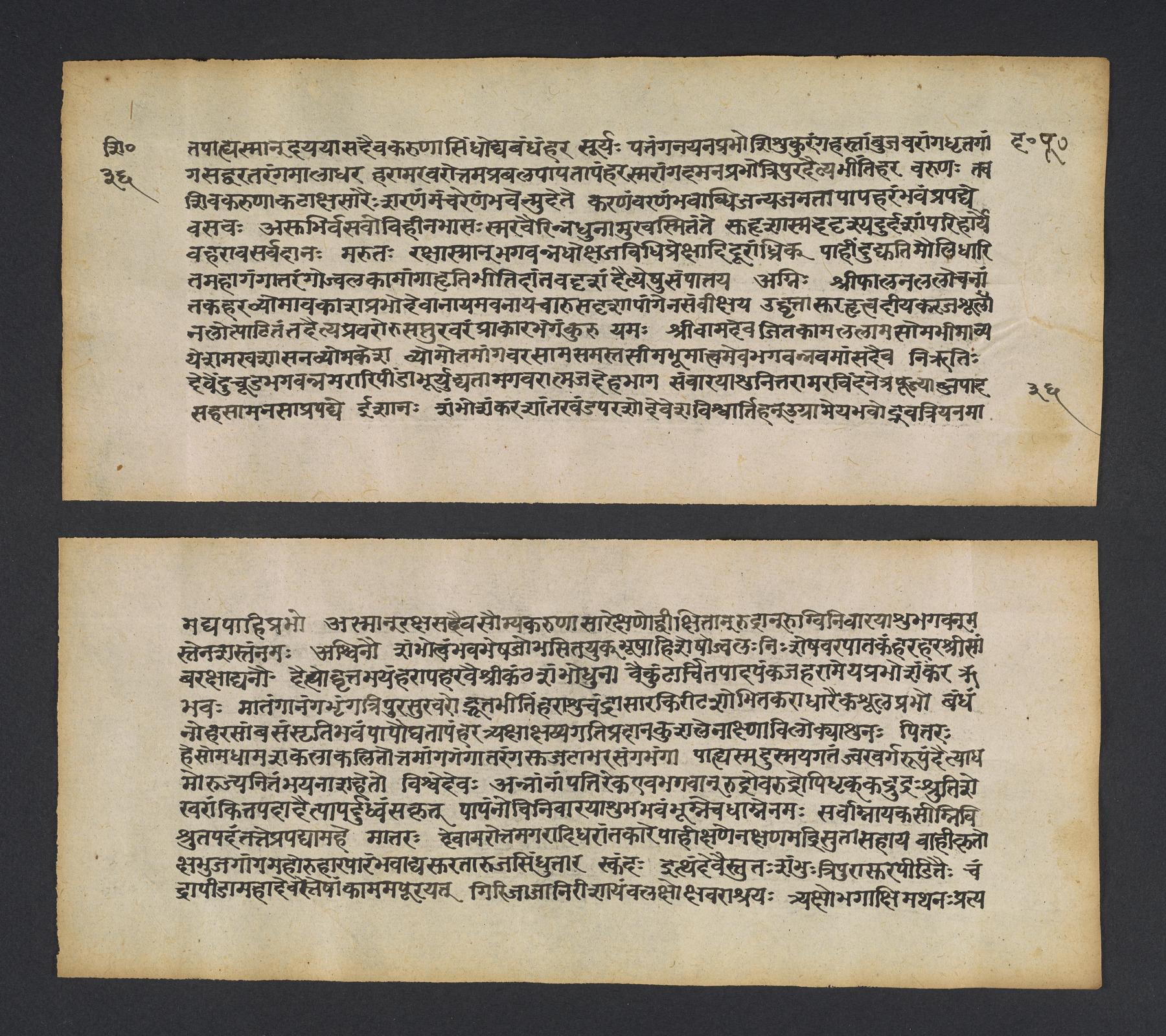 Manuscript contains adhyāyas 1-25 of a larger work called the Śivarahasya, which is itself part of a work on Tantra called the Rudrayāmalatantra. It is dedicated to the praise and veneration of the Hindu deity Śiva, especially in his form of Rudra (the howler). Presented as a discourse between Śiva and his divine son Skanda (also known as Kārttikeya).