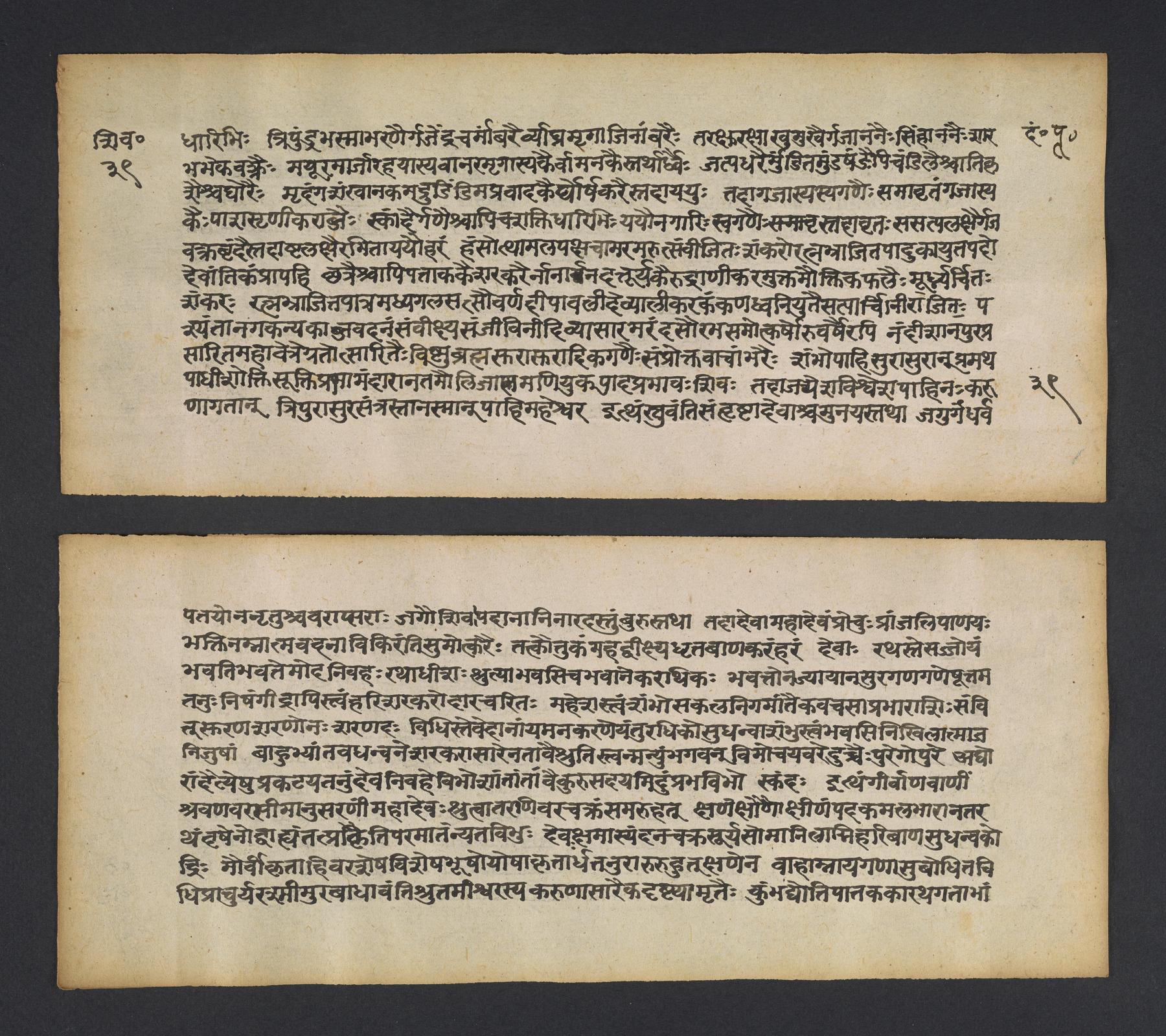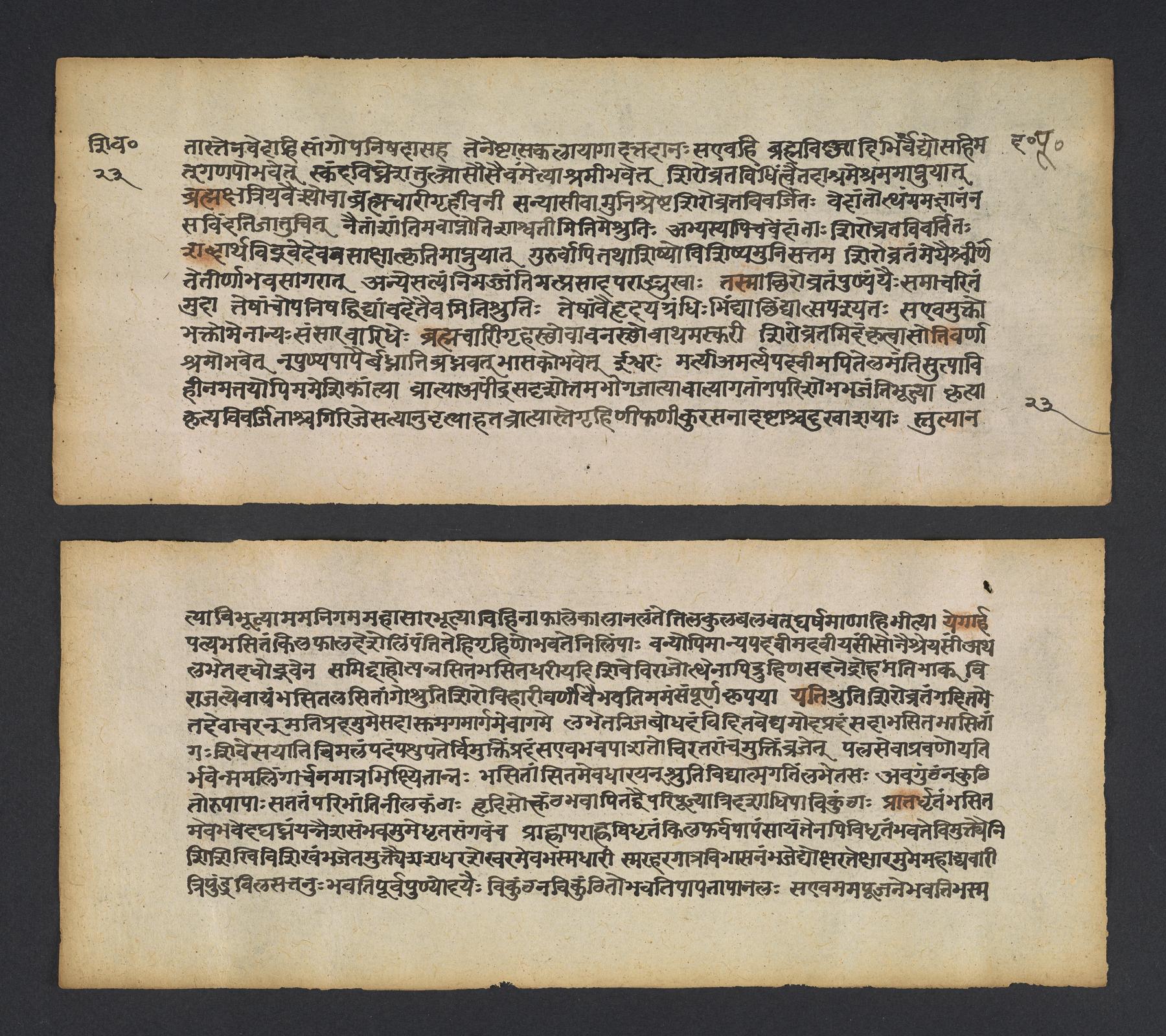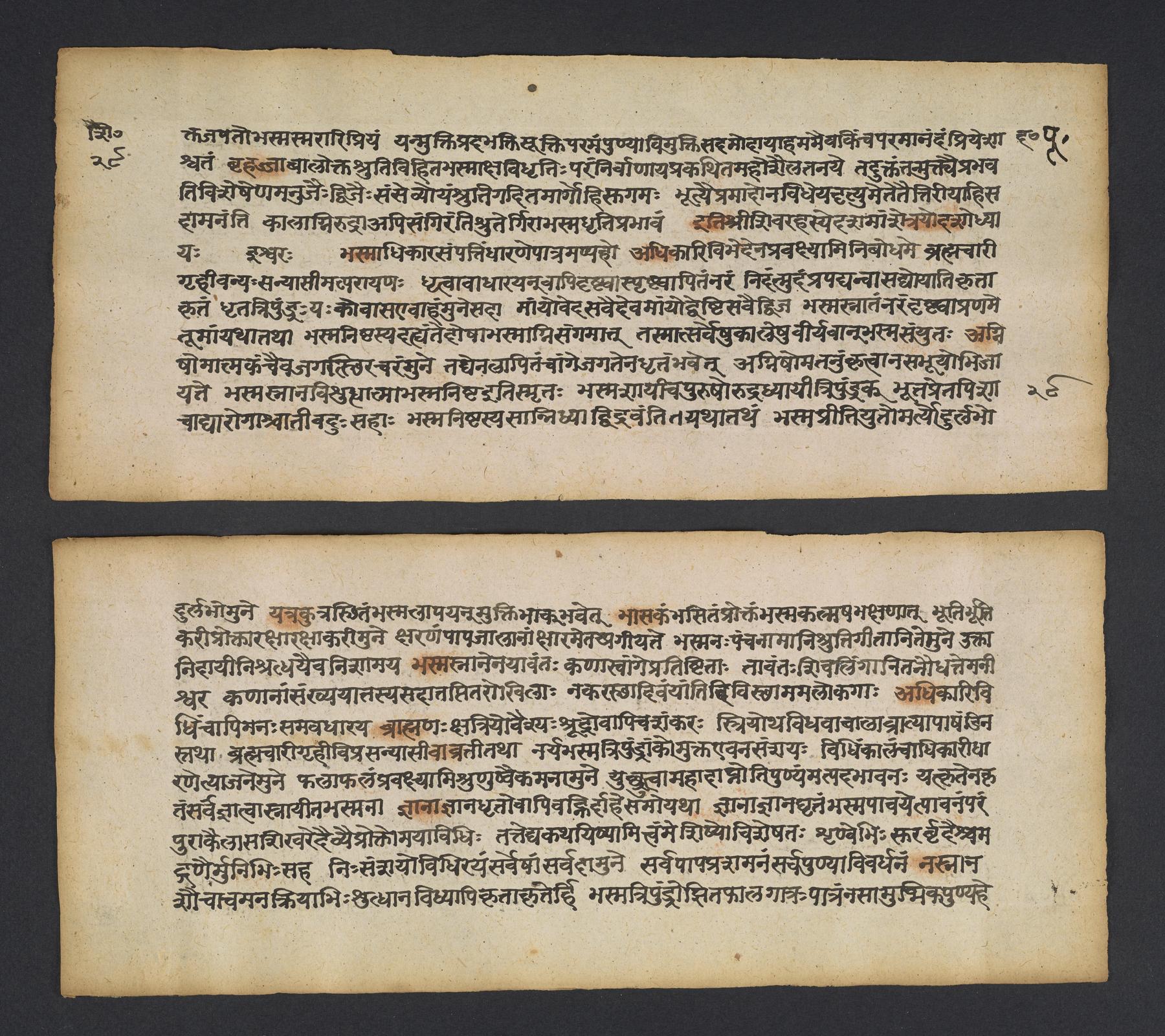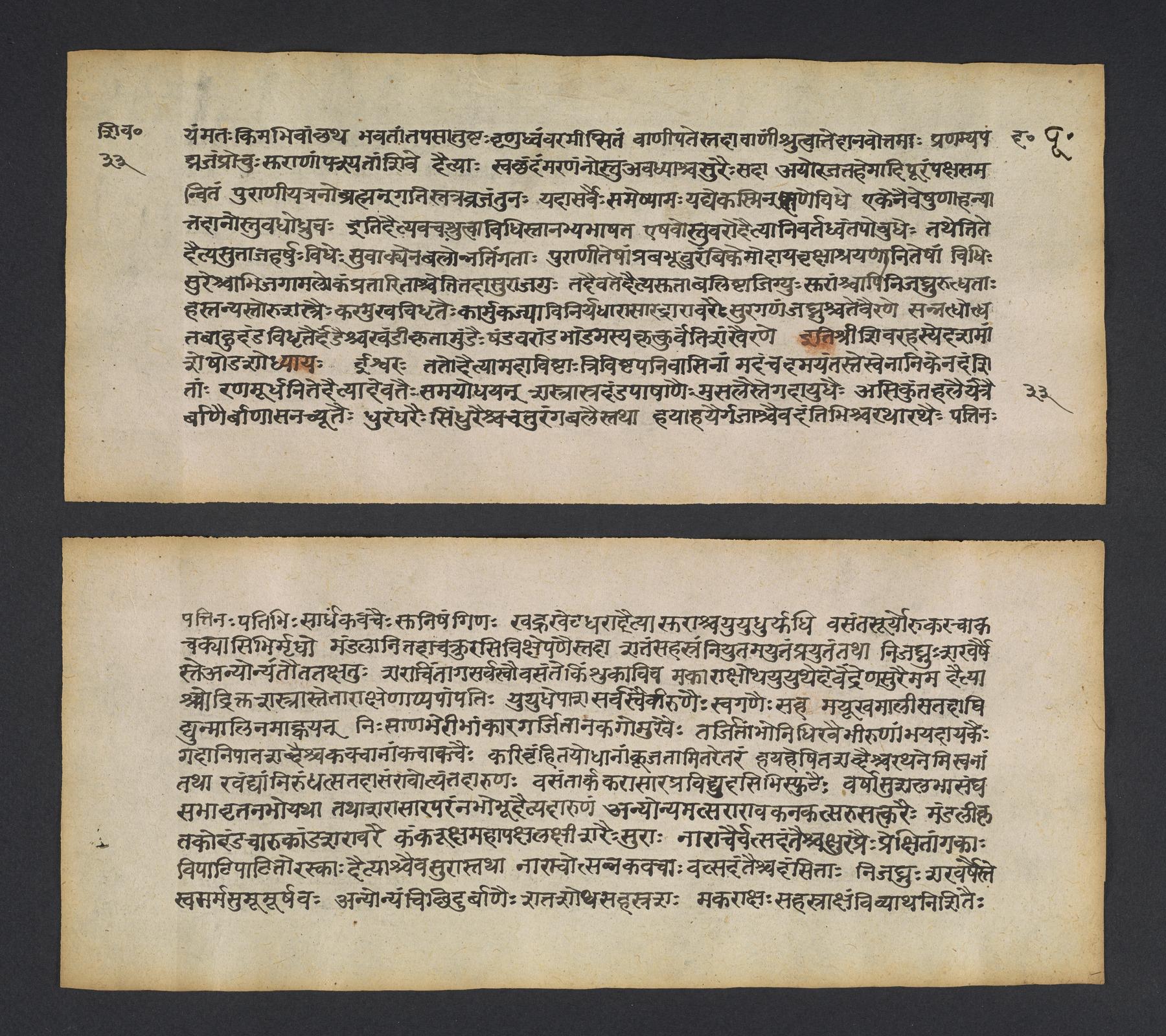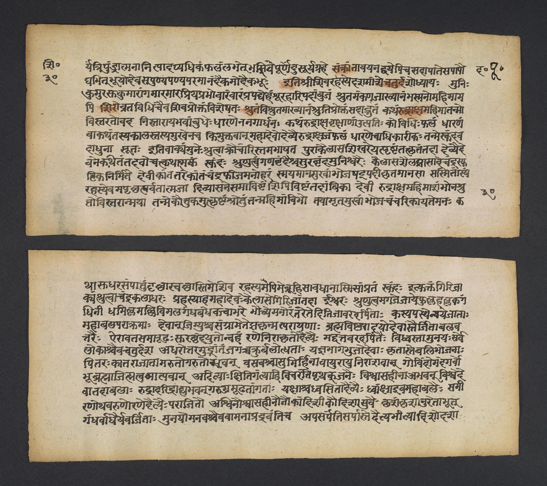 Manuscript contains adhyāyas 1-25 of a larger work called the Śivarahasya, which is itself part of a work on Tantra called the Rudrayāmalatantra. It is dedicated to the praise and veneration of the Hindu deity Śiva, especially in his form of Rudra (the howler). Presented as a discourse between Śiva and his divine son Skanda (also known as Kārttikeya).
