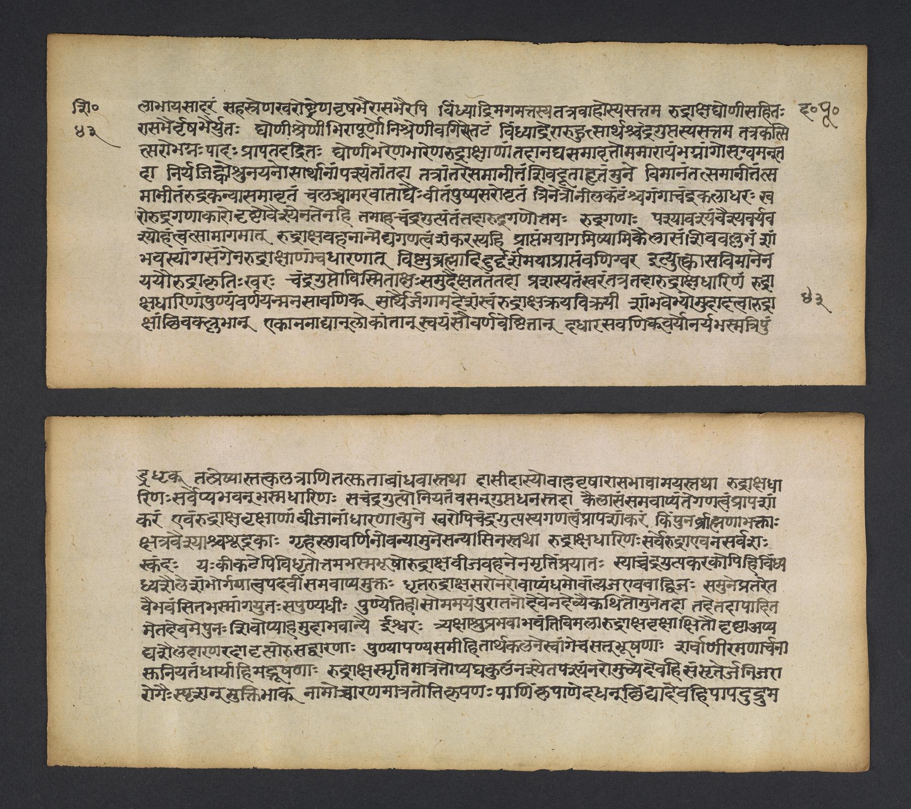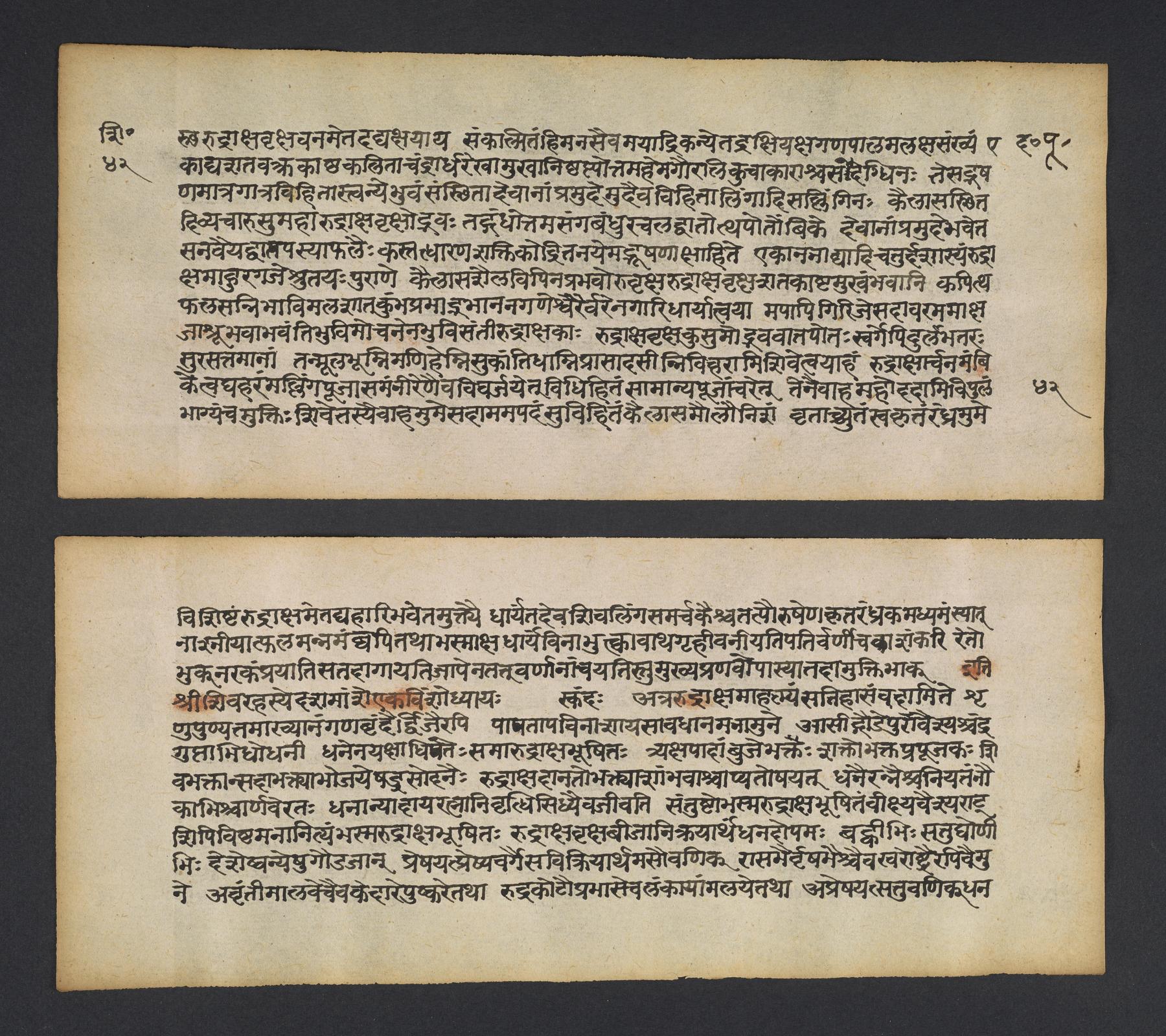 - These images and the content of Kislak Center for Special Collections, Rare Books and Manuscripts Ms. Coll. 390 Item 1997: Rudrākṣamahimānāma are free of known copyright restrictions and in the public domain. See the Creative Commons Public Domain Mark page for usage details, http://creativecommons.org/publicdomain/mark/1.0/.
