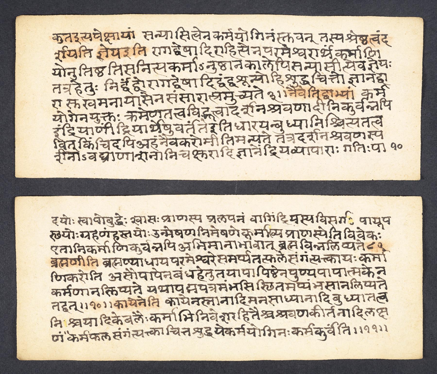 - These images and the content of Kislak Center for Special Collections, Rare Books and Manuscripts Ms. Coll. 390 Item 2264: Gītāṭīkā are free of known copyright restrictions and in the public domain. See the Creative Commons Public Domain Mark page for usage details, http://creativecommons.org/publicdomain/mark/1.0/.