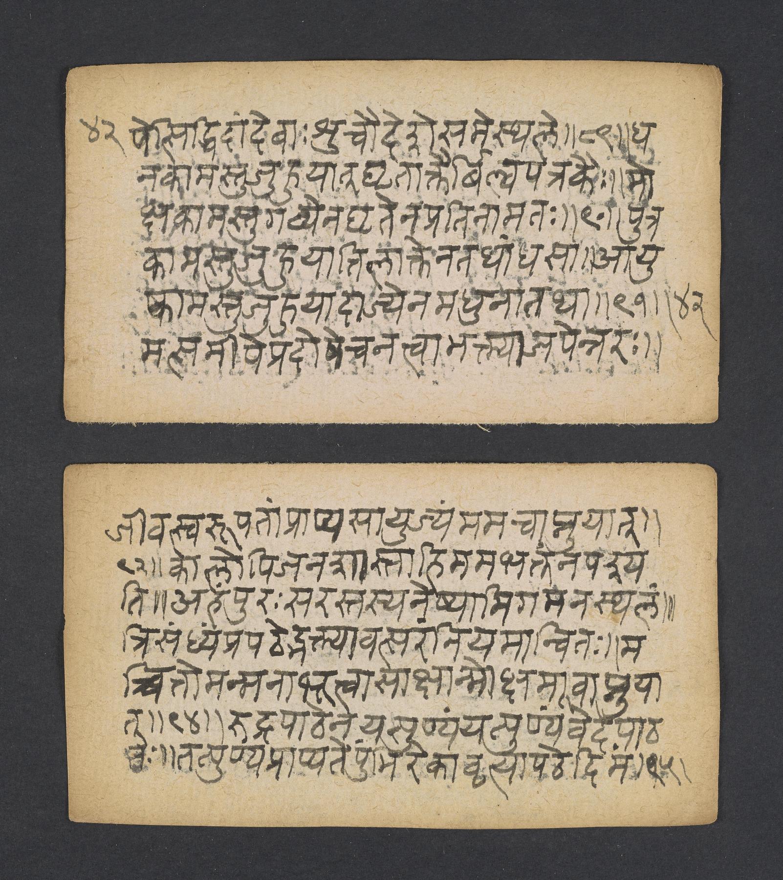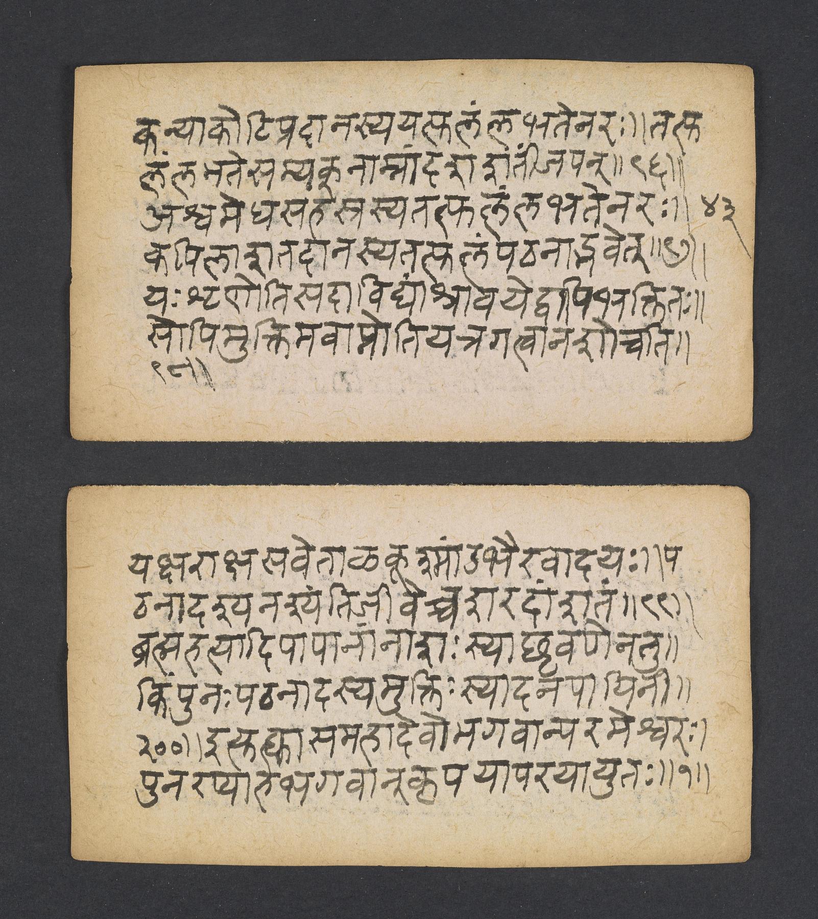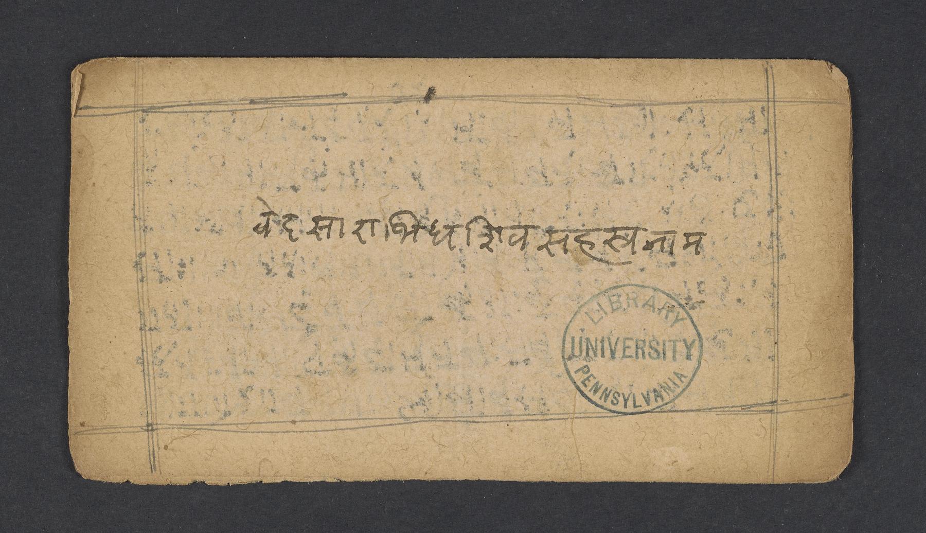 - These images and the content of Kislak Center for Special Collections, Rare Books and Manuscripts Ms. Coll. 390 Item 2342: Vedasārābhidhaśivasahasranāman are free of known copyright restrictions and in the public domain. See the Creative Commons Public Domain Mark page for usage details, http://creativecommons.org/publicdomain/mark/1.0/.
