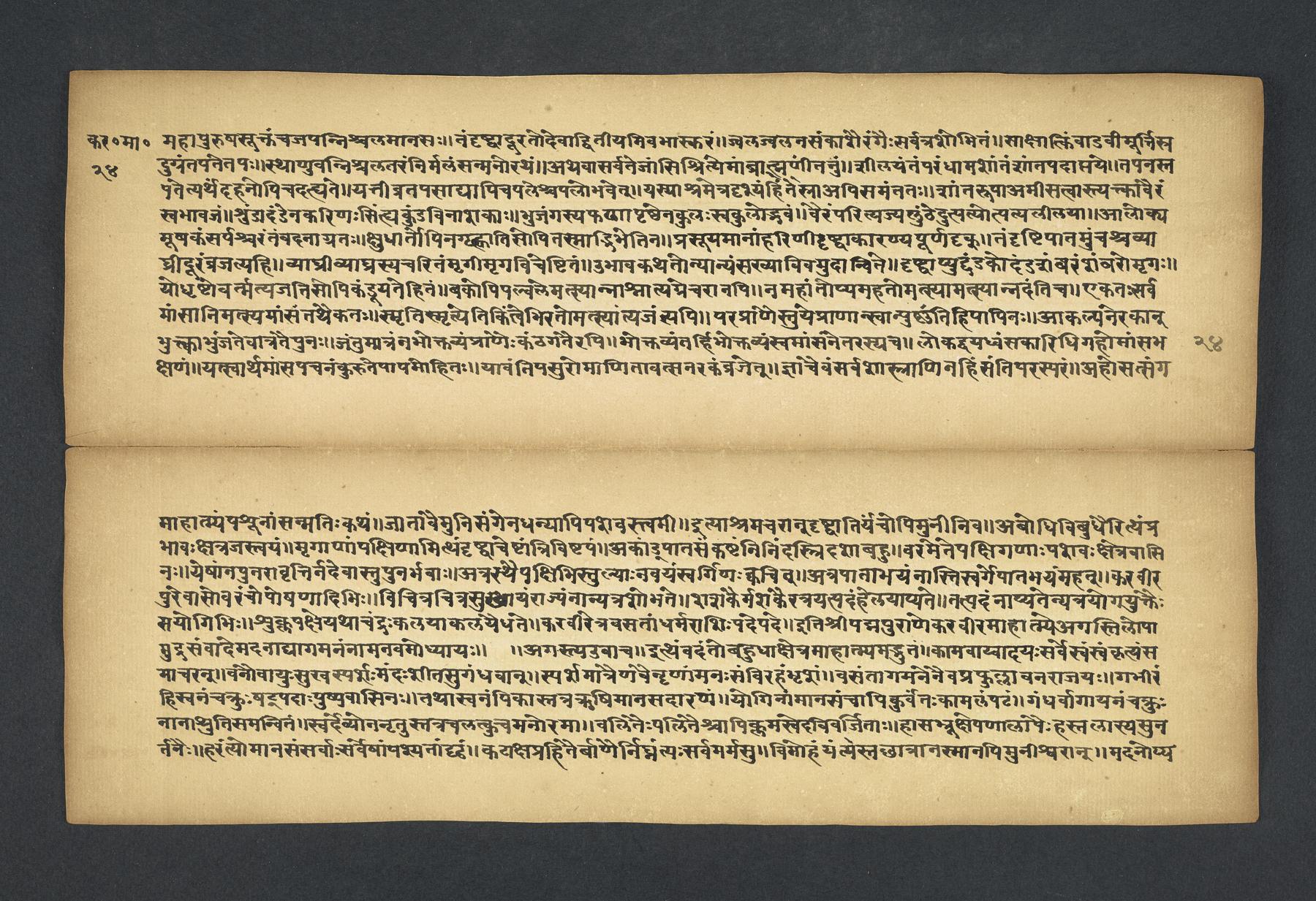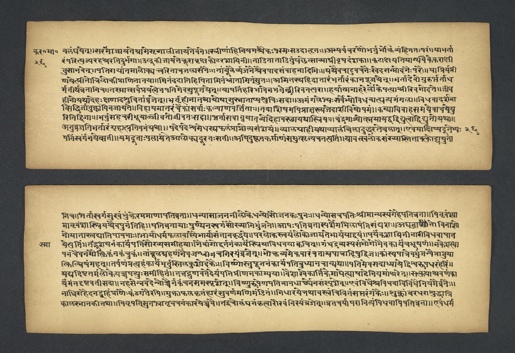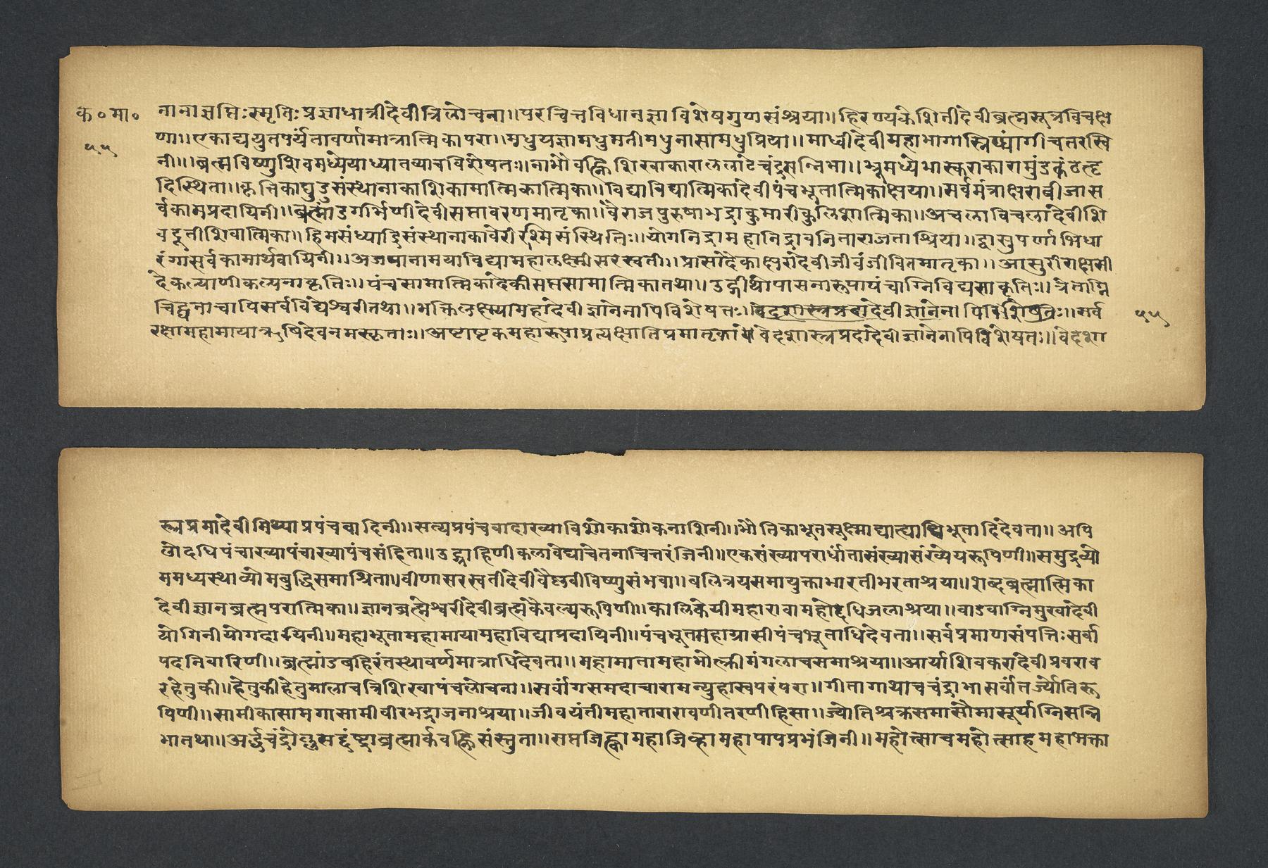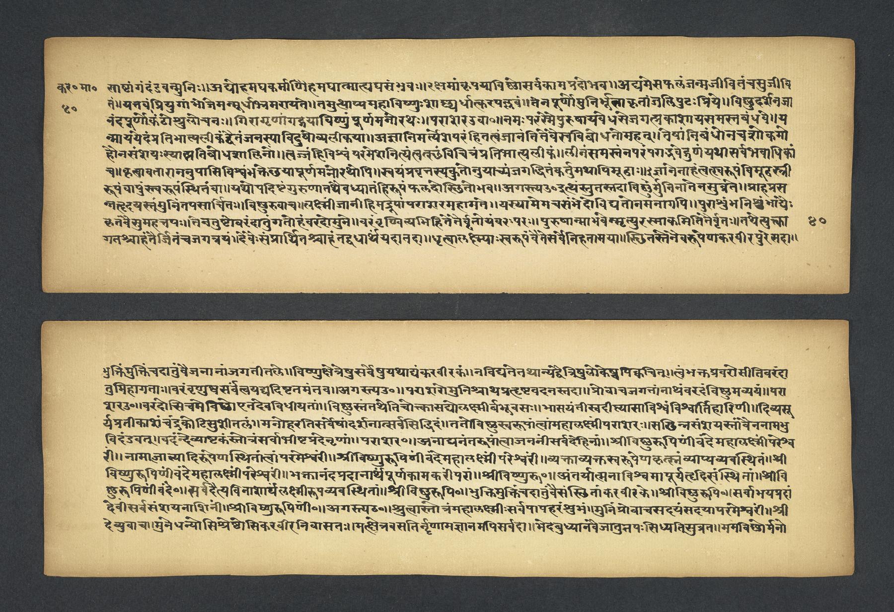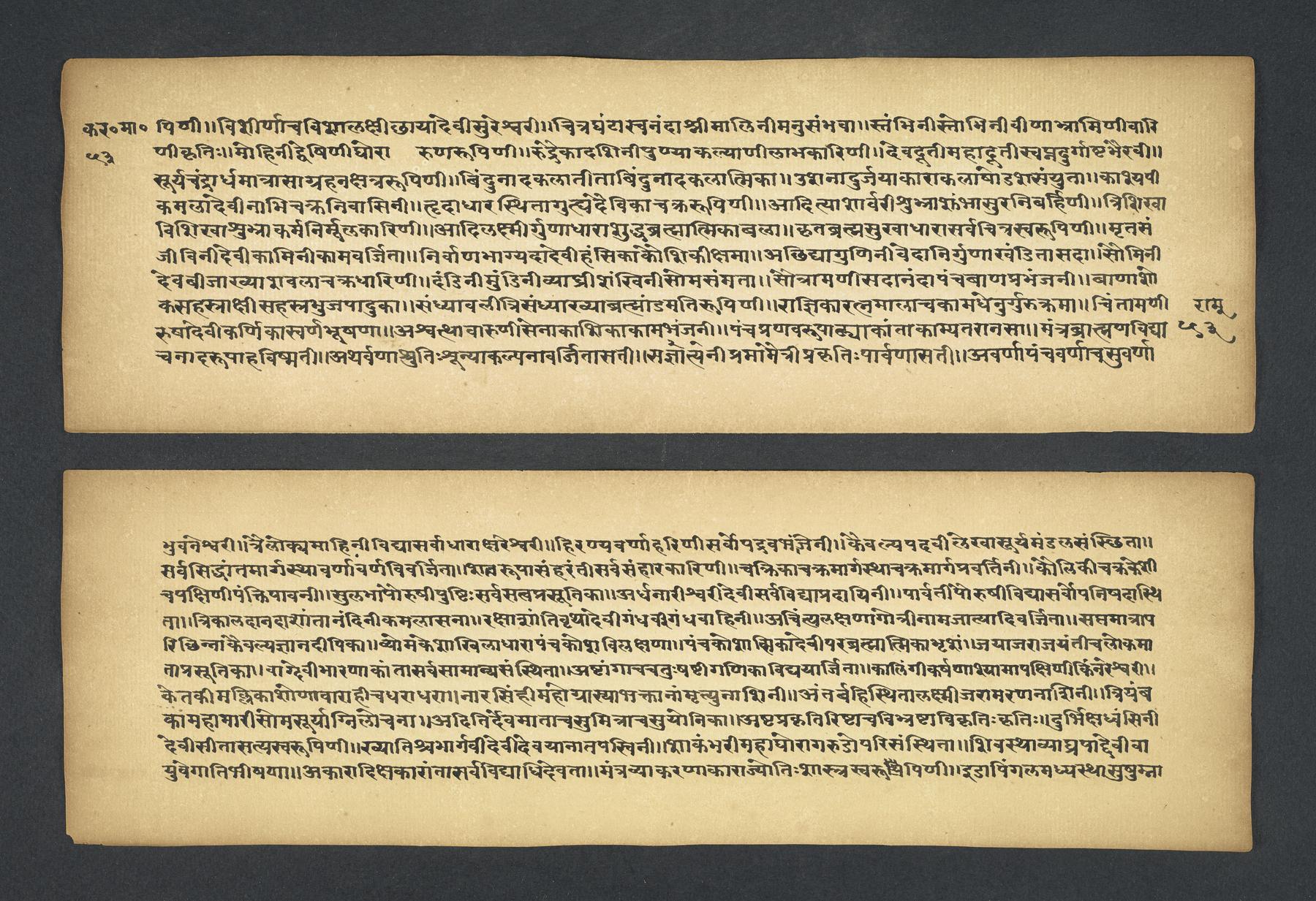 Praises the pilgrimage center of Karavīra, related to the modern city of Kolhapur in Maharashtra (India), suggesting that it surpasses even the famous center of Vārāṇasī. Especially praises the Hindu goddess Lakṣmī and mentions regional deities such as Pāṇḍuraṅga, a youthful god sometimes equated with Kṛṣṇa and well known in Maharashtra. Presented as a discussion between the legendary sage Agasti and his wife Lopāmudrā. Text is incomplete containing full chapters from 1-19 (f. 1v-49r) and ending in chapter 20 with: jāpyate paśavaṃputrādha (f. 58r).