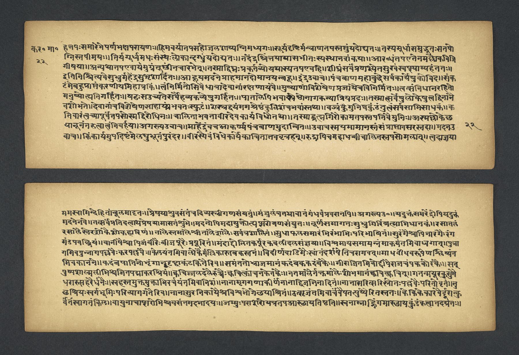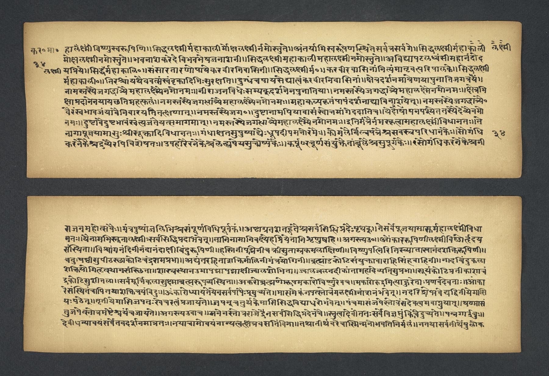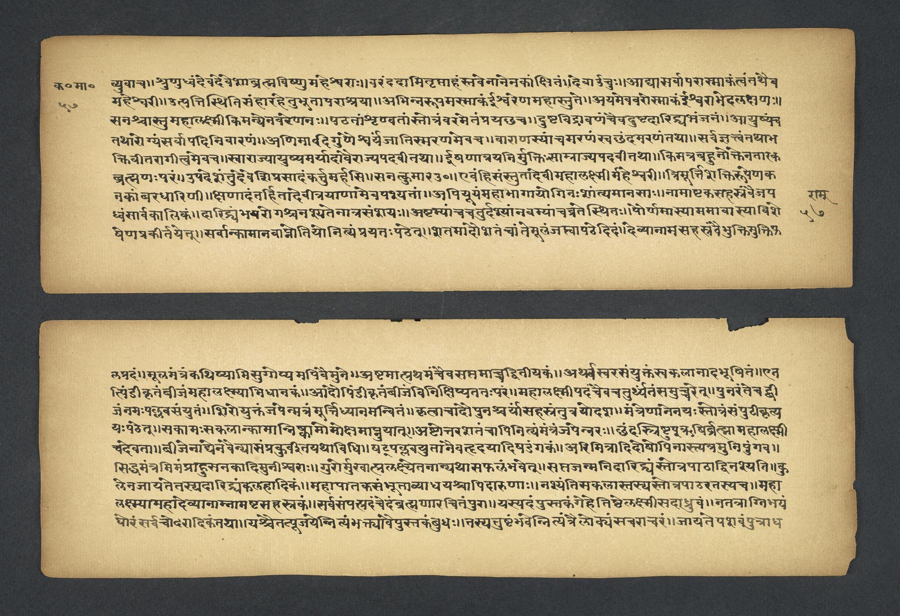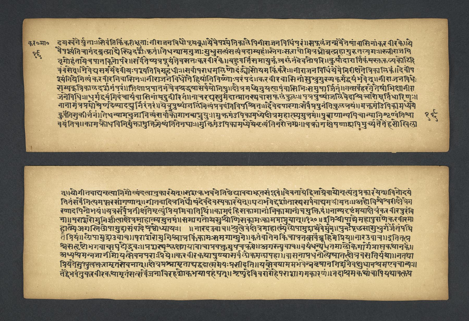 - These images and the content of Kislak Center for Special Collections, Rare Books and Manuscripts Ms. Coll. 390 Item 2349: Karavīramāhātmya, 1-19 are free of known copyright restrictions and in the public domain. See the Creative Commons Public Domain Mark page for usage details, http://creativecommons.org/publicdomain/mark/1.0/.
