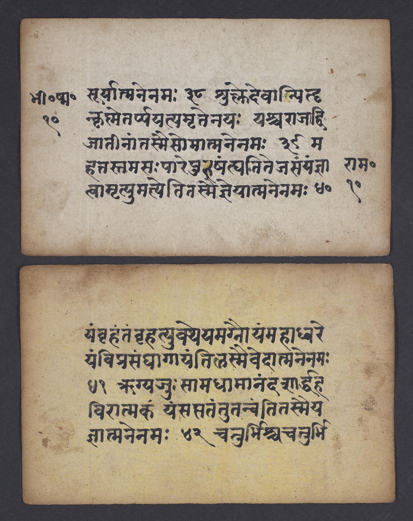 - These images and the content of Kislak Center for Special Collections, Rare Books and Manuscripts Ms. Coll. 390 Item 2463: Itiśrīmahābhārateśotirājadharmestavarājaḥ Bhīṣmastavarājasaṃpūrṇaḥ samāptaḥ are free of known copyright restrictions and in the public domain. See the Creative Commons Public Domain Mark page for usage details, http://creativecommons.org/publicdomain/mark/1.0/.