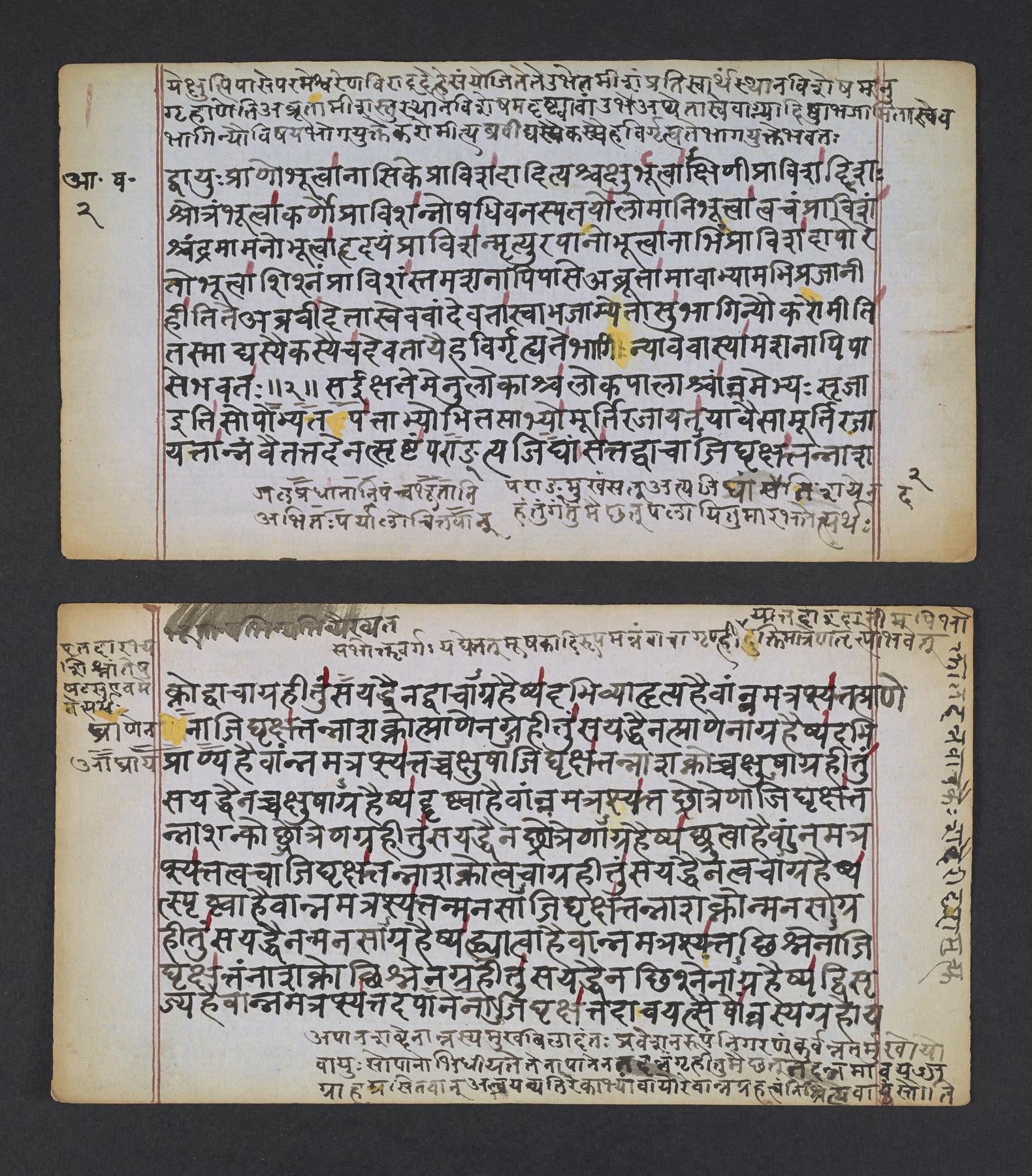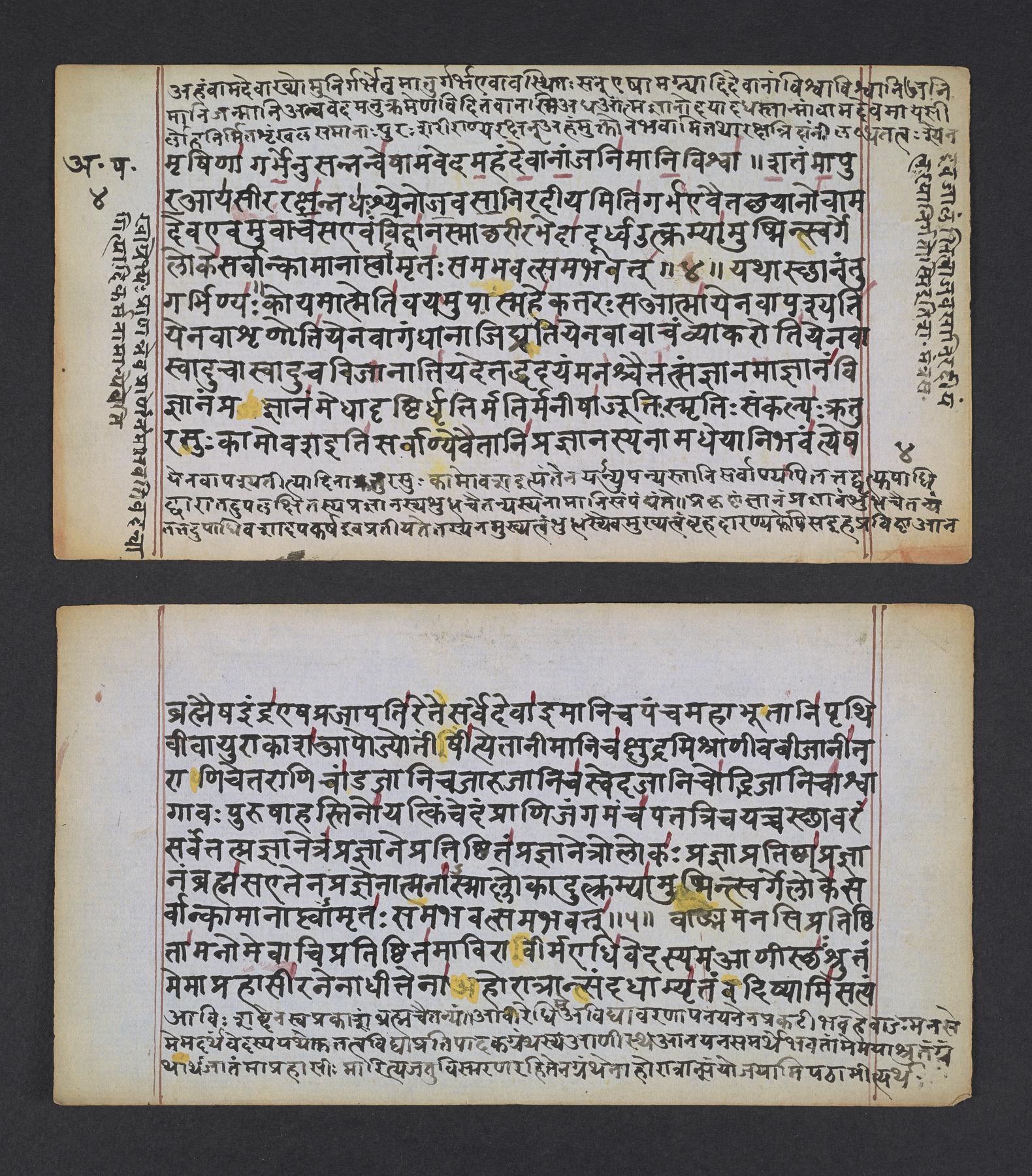 Manuscript is used for contemplation, study, and recitation, and is a late Vedic philosophical treatise appended to the Ṛgveda; as a Upaniṣad, it contains speculations about the nature of being, the self, birth, and breath; also early myths.