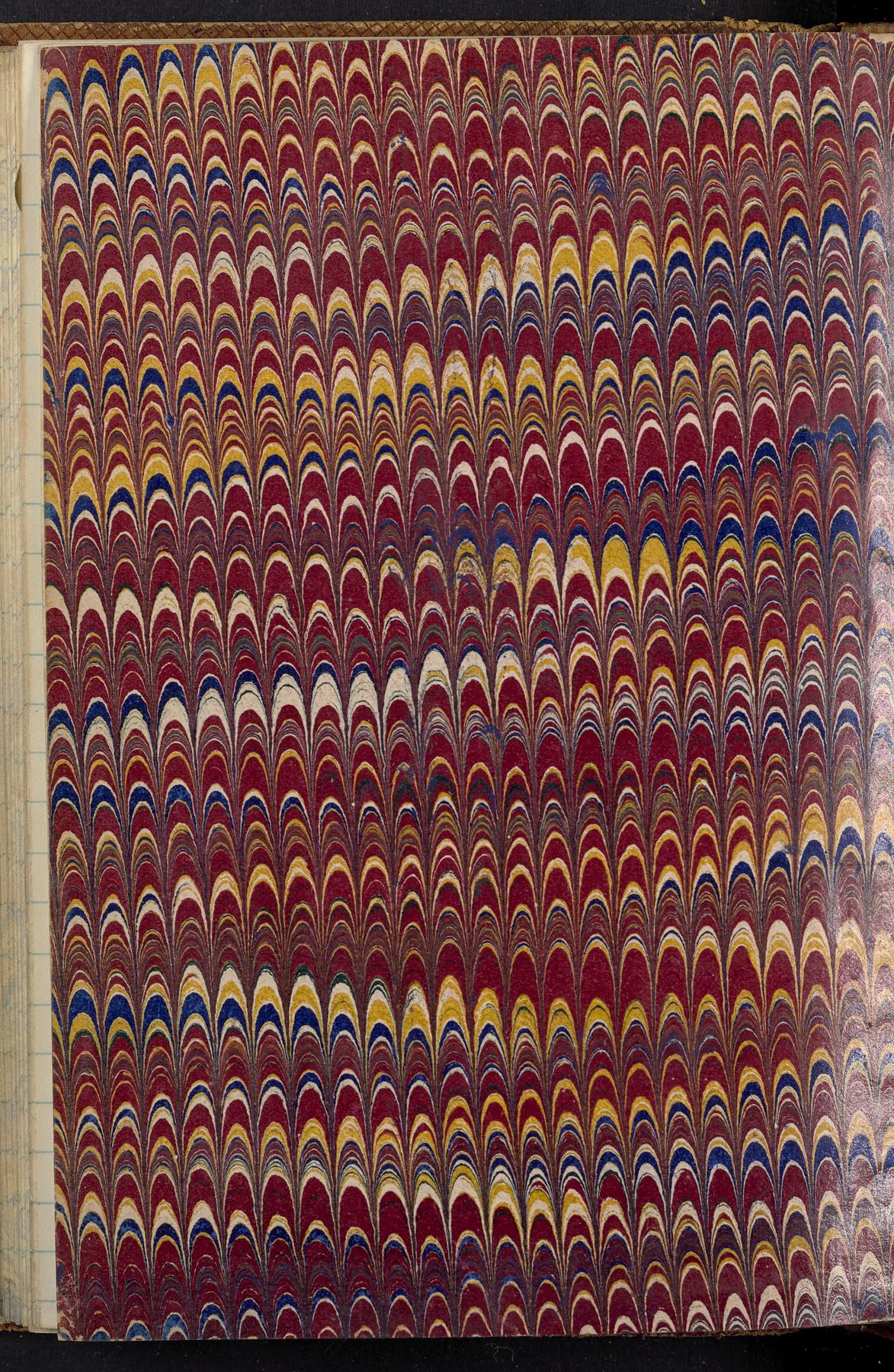 Contemporary boards, with the word Records in all capital letters blind stamped on upper cover, and in gilt letters on spine; spine with 4 raised bands and horizontal gilt borders. Spine covering partially detached along edge adjoining lower cover; bifolium (p. i-ii, I-II), including title page, detached, and following leaf (p. III-IV) partially detached.Layout