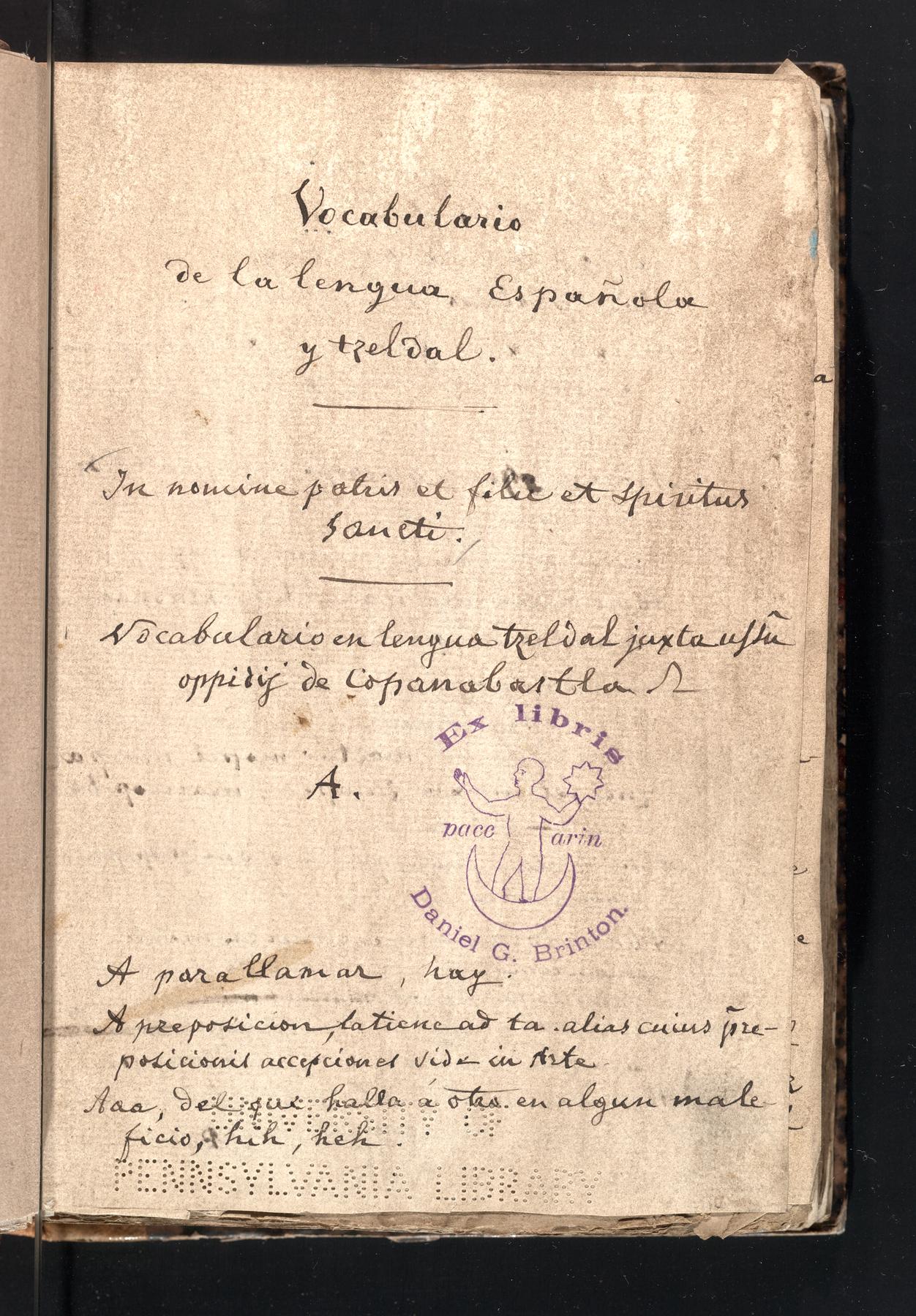 - These images and the content of Rare Book & Manuscript Library Ms. Coll. 700 Item 185: Vocabulario de la lengua española y tzeldal are free of known copyright restrictions and in the public domain. See the Creative Commons Public Domain Mark page for usage details, http://creativecommons.org/publicdomain/mark/1.0/.