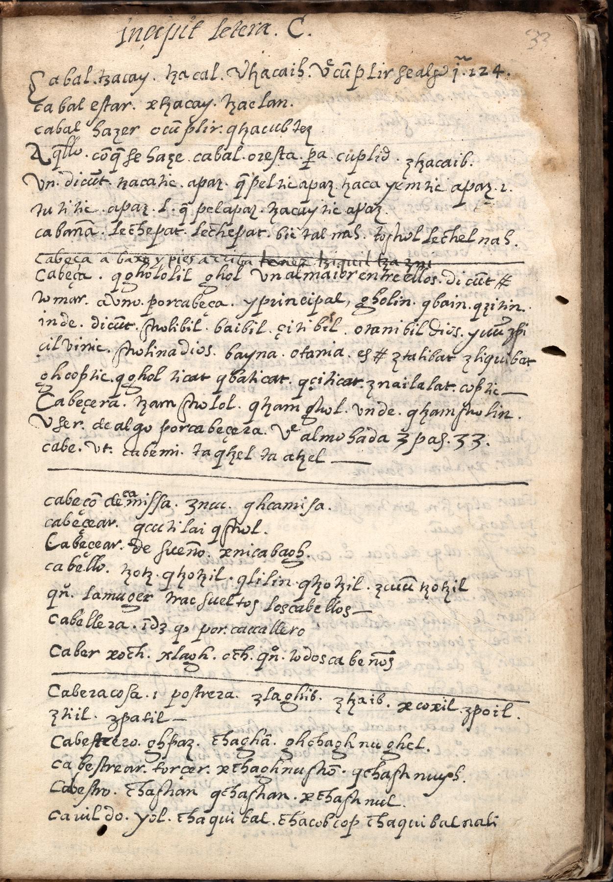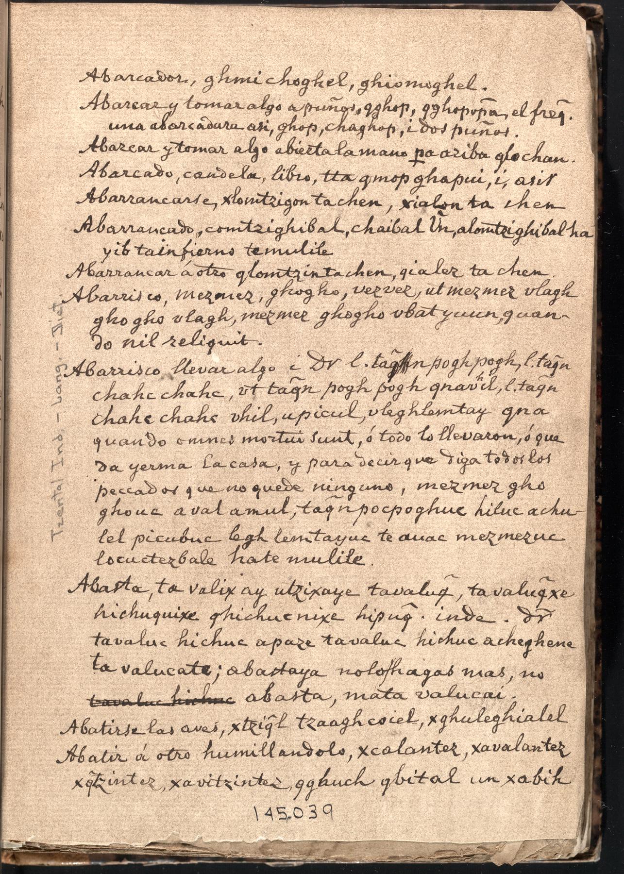Ms. Coll. 700 Item 185 Vocabulario de la lengua española y tzeldal
