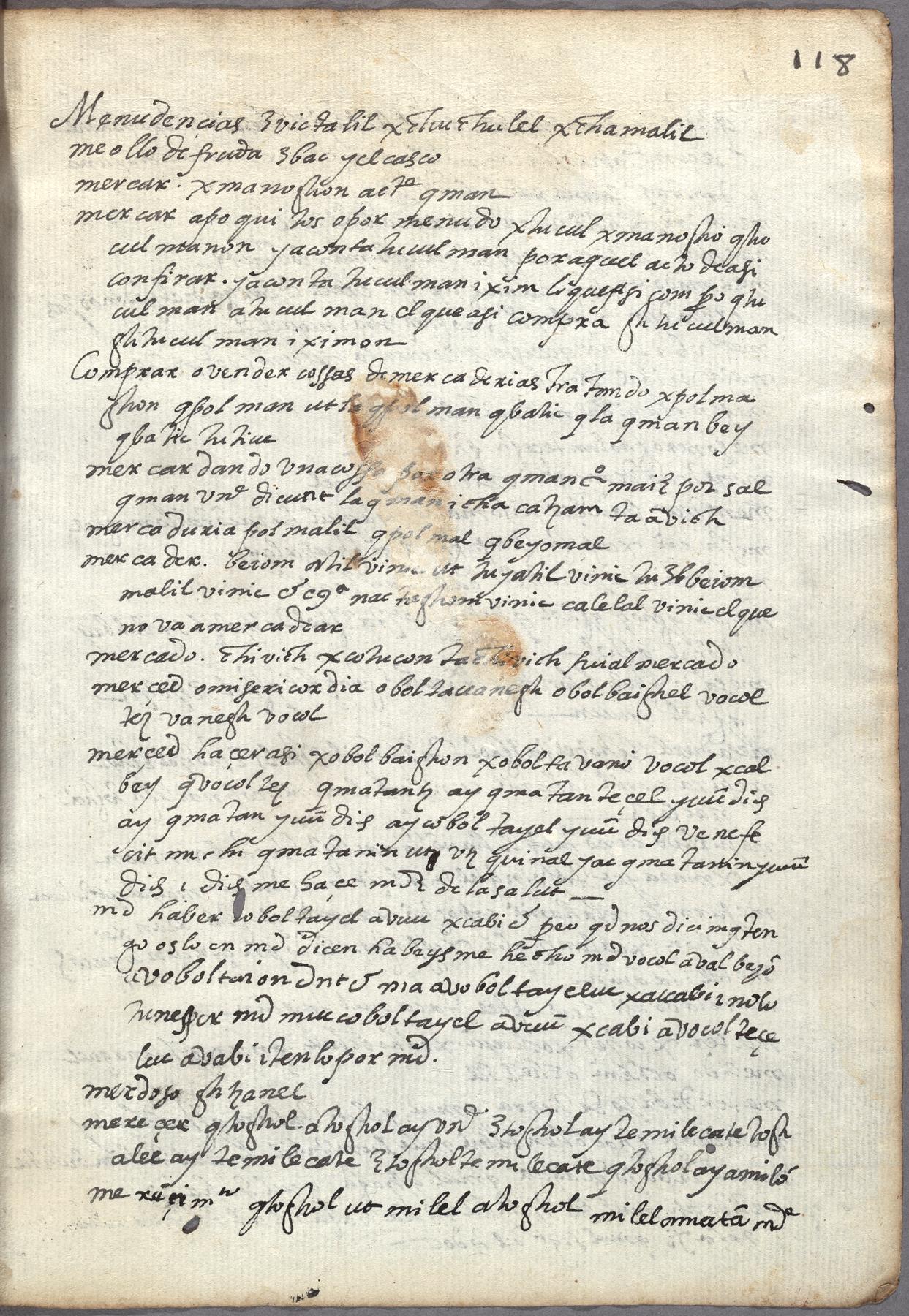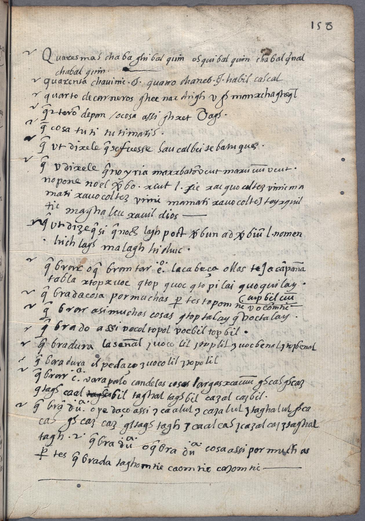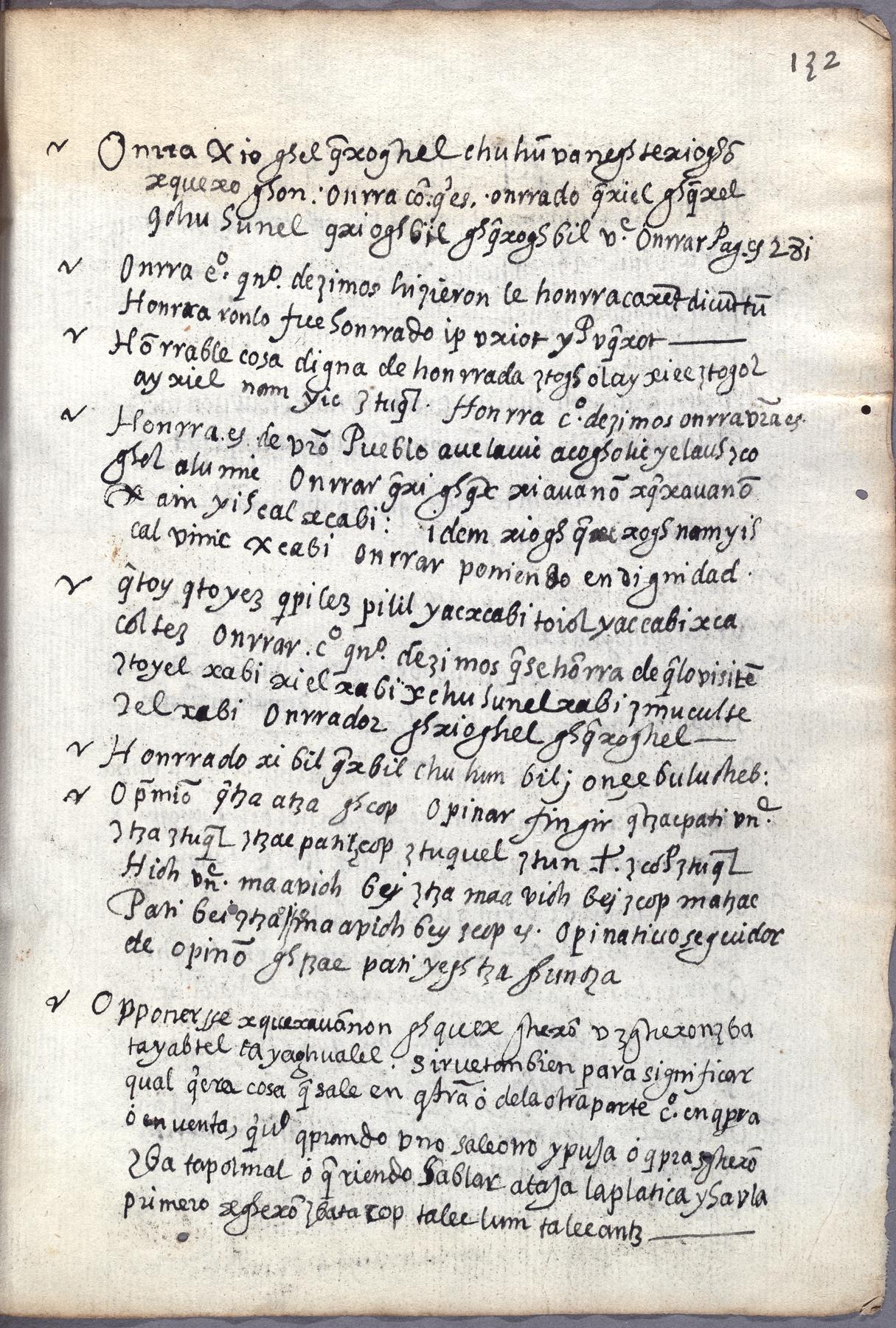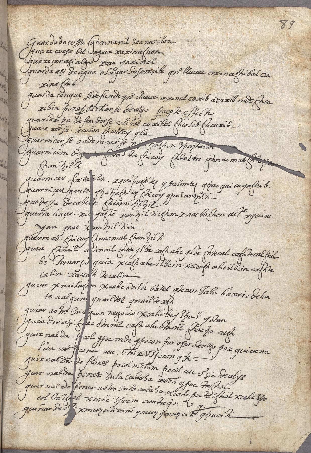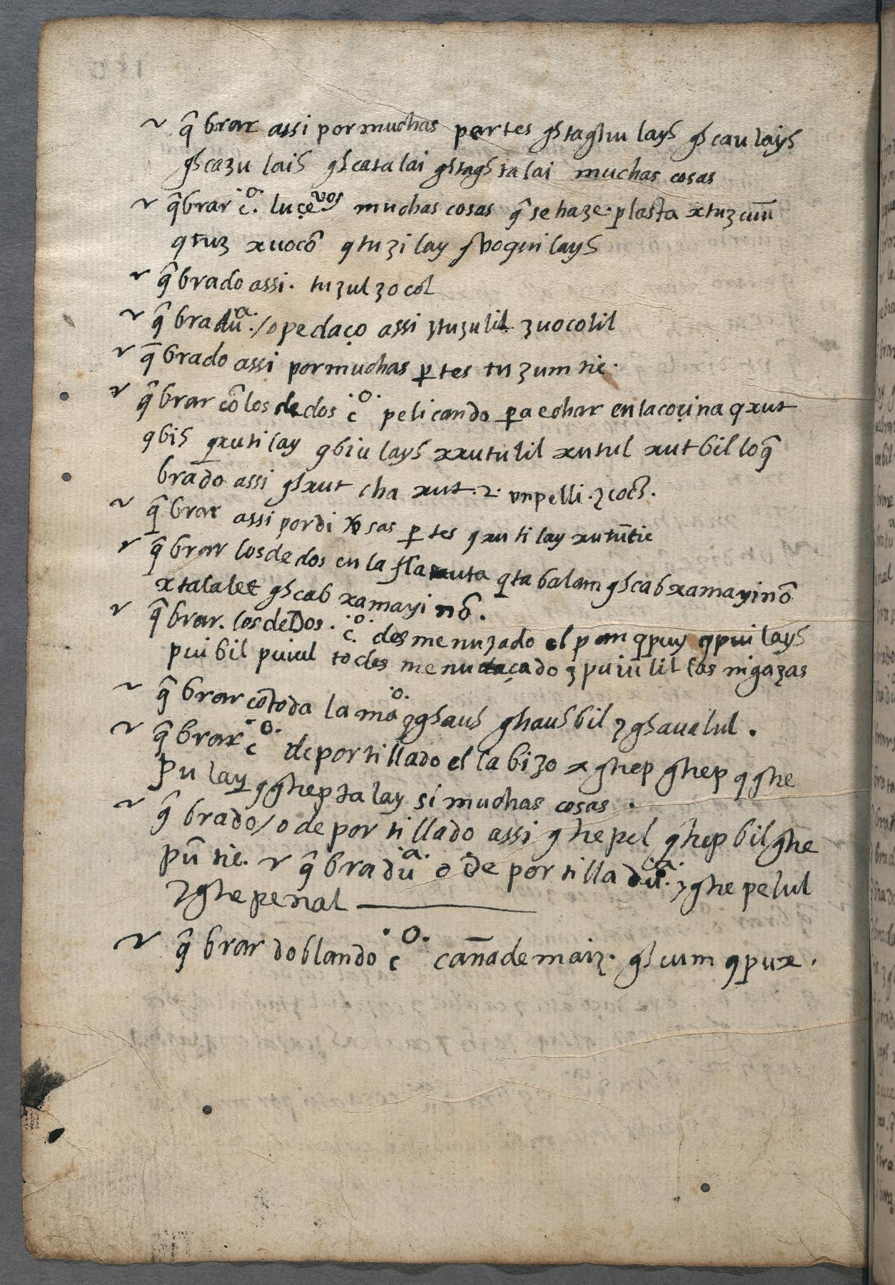 A copy, probably made in the 17th century, of an alphabetical list of Spanish names, words, and phrases, with translations in Tzeltal.