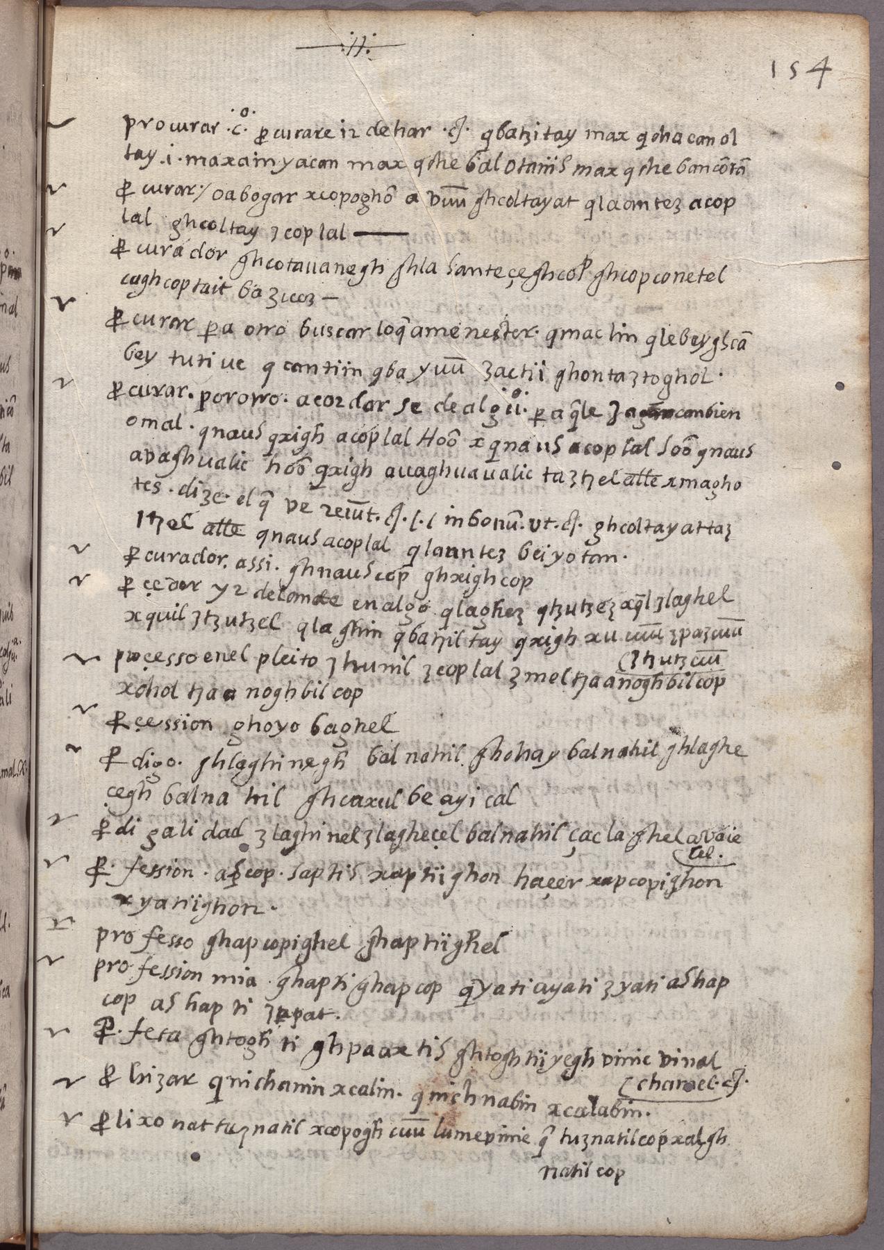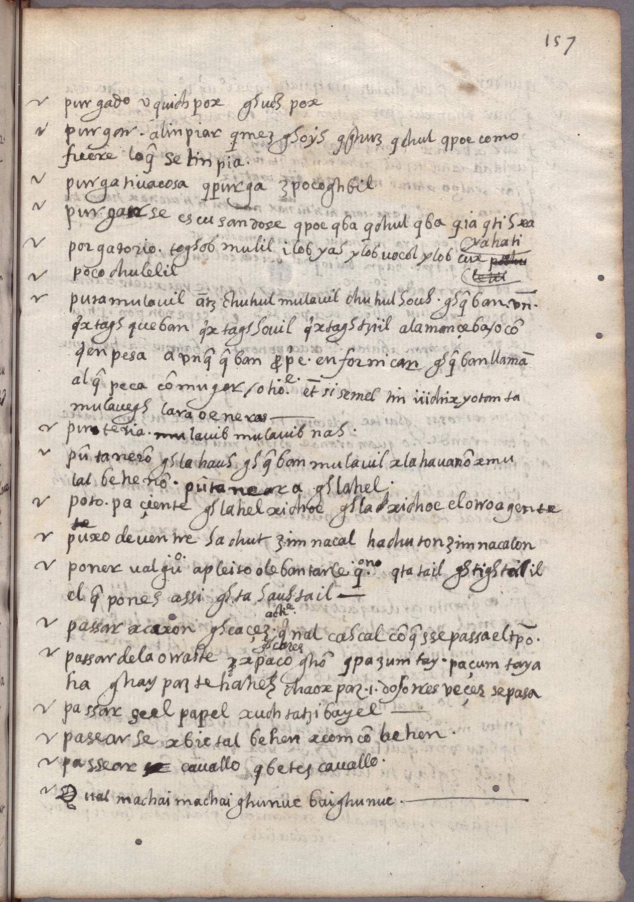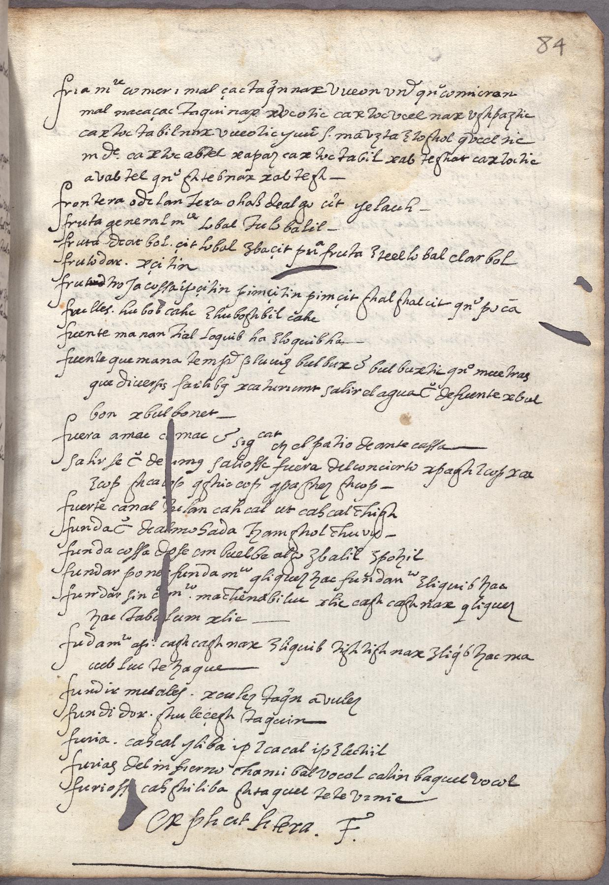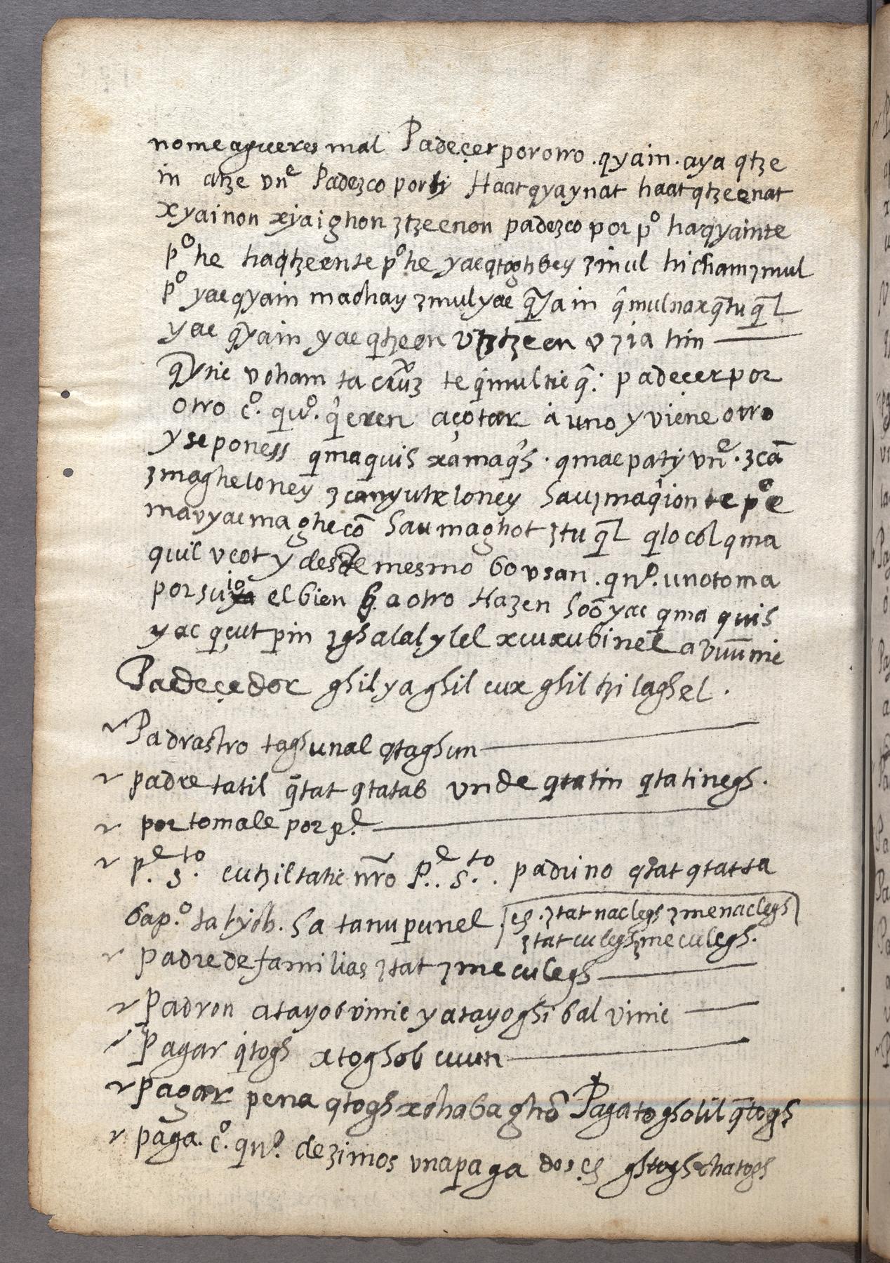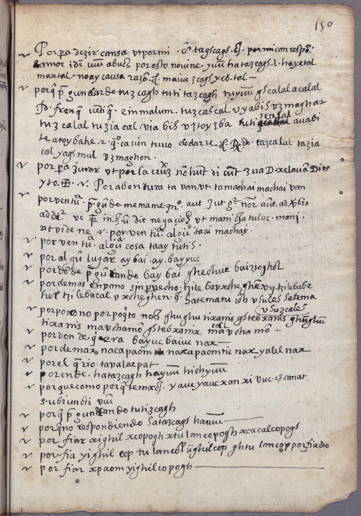 A copy, probably made in the 17th century, of an alphabetical list of Spanish names, words, and phrases, with translations in Tzeltal.