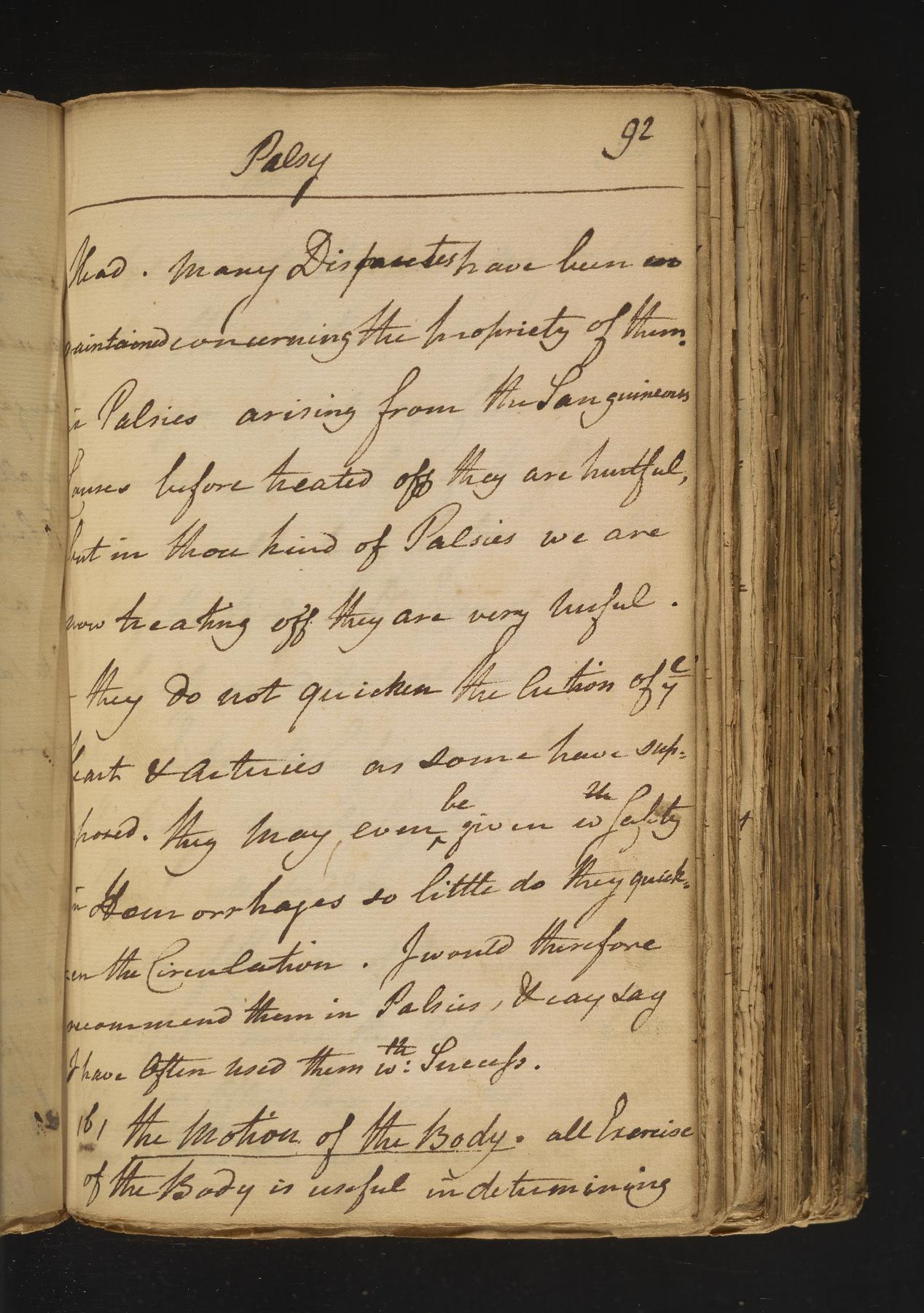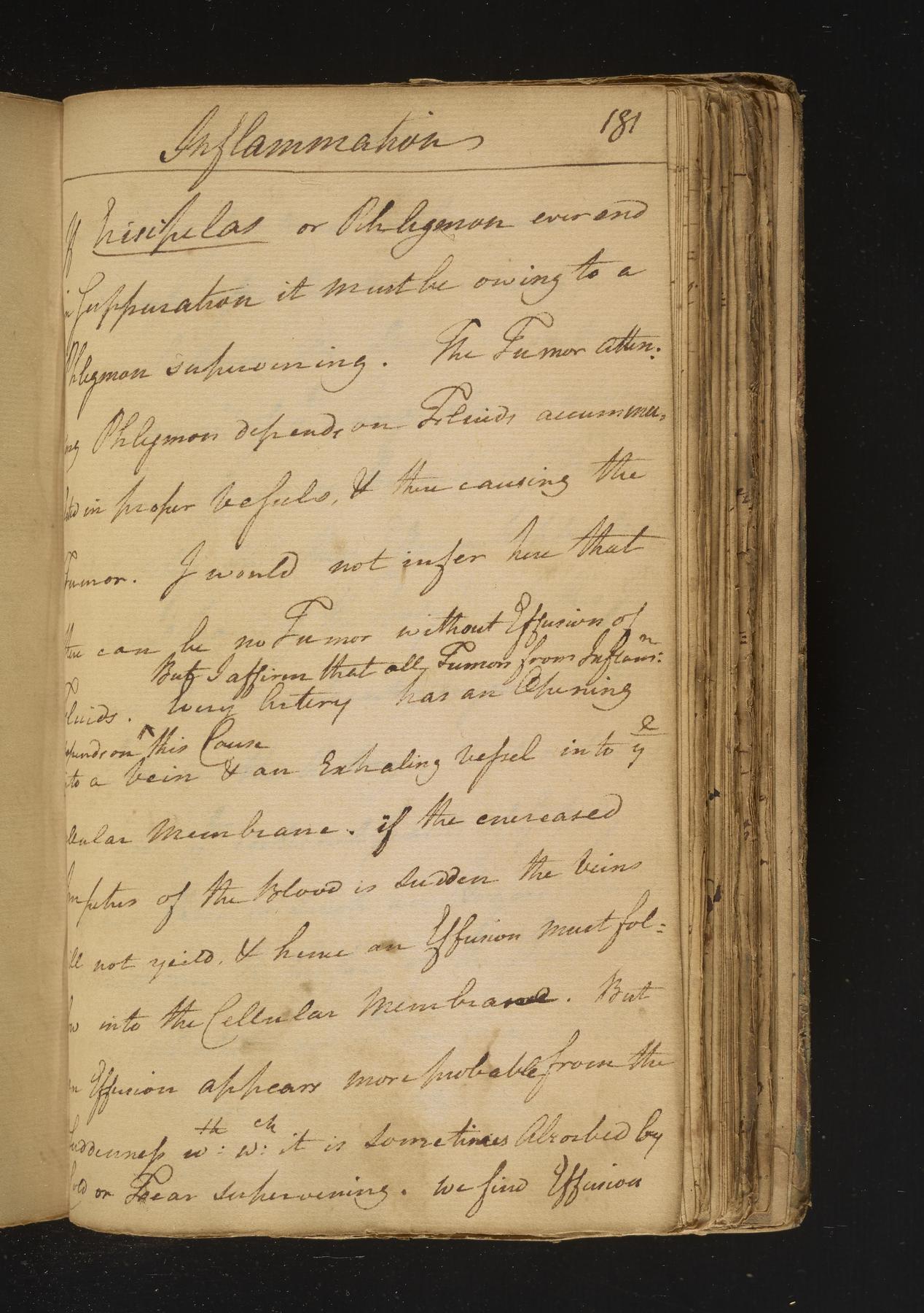 - Manuscript notebook of notes taken by Benjamin Rush during lectures of William Cullen in 1767-1768. Volume 1 of 2.