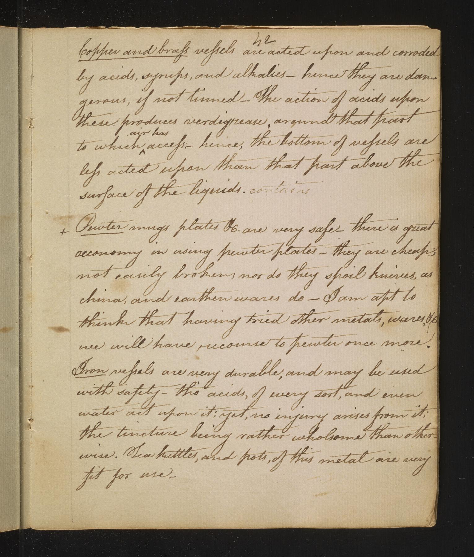 Notes by Benjamin Rush for lectures on the Application of the principles of natural philosophy, chemistry, and medicine to domestic and culinary purposes, composed for the use of the Young Ladies' Academy in Philadelphia, October 1787.Authors