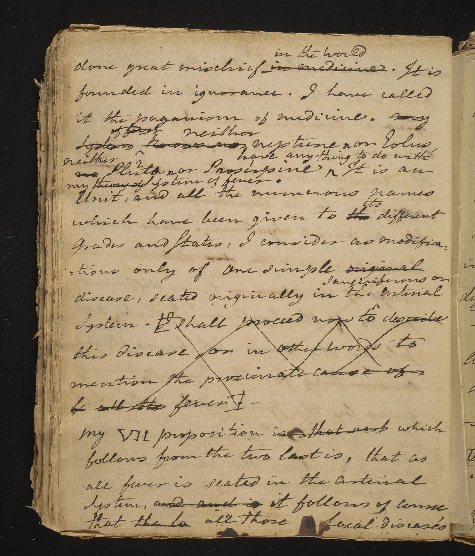 - Manuscript notebook of lectures delivered by Benjamin Rush on the practice of medicine and the causes and treatment of fevers.