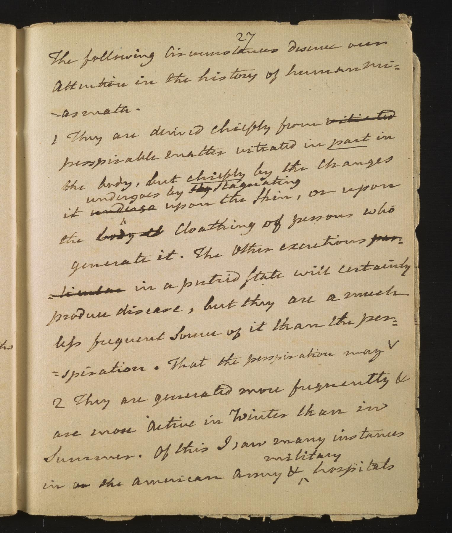 - Manuscript notebook of lectures delivered by Benjamin Rush on the effects of poor air quality on health.