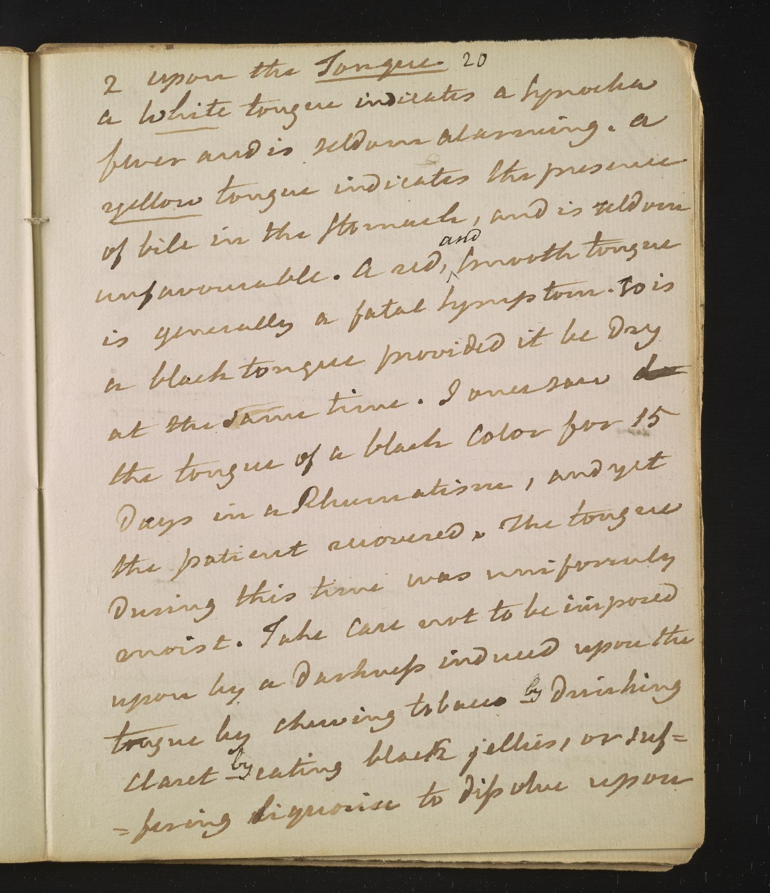 - Manuscript notebook of lectures delivered by Benjamin Rush on the prognosis of fevers.