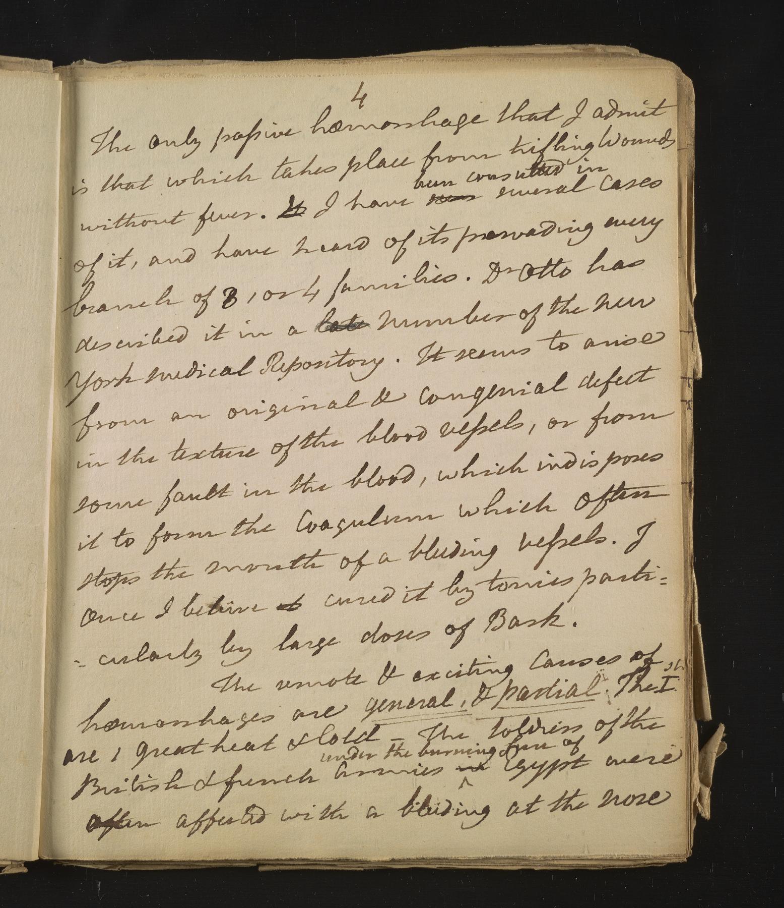- Manuscript notebook of lectures delivered by Benjamin Rush on hemorrhages.