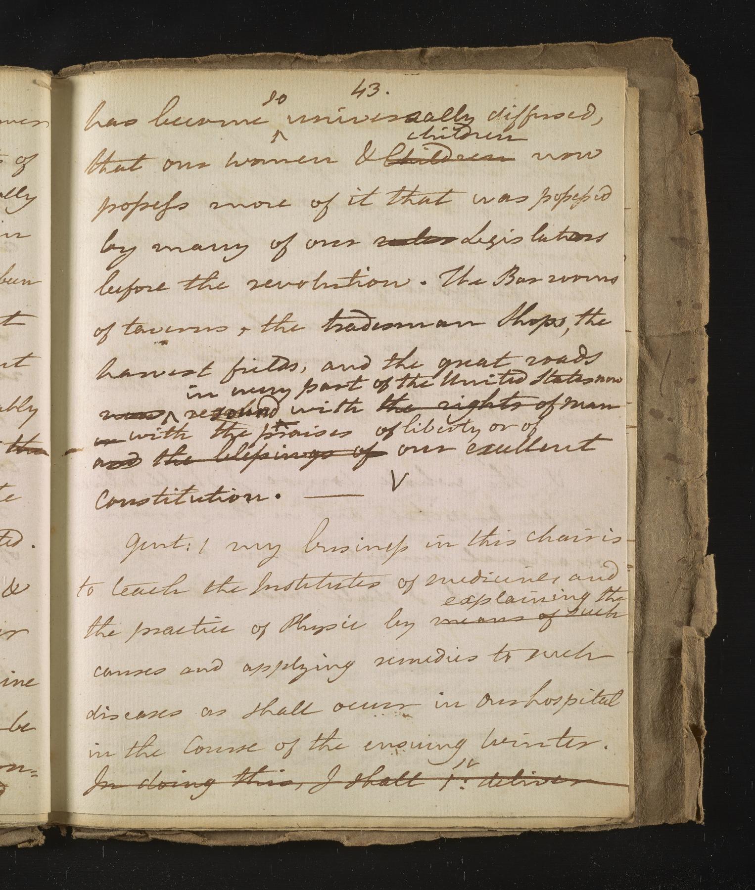 Rush MSS Vol. 284 (Yi2 7400.F.5) Notes by Benjamin Rush for Introductory lecture on imposture in medicine, delivered November 17, 1796.