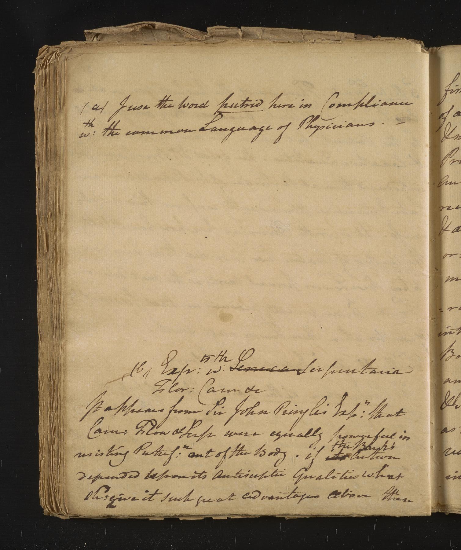 Rush MSS Vol. 298 (Yi2 7400.F.17) Notes by Benjamin Rush for a dissertation on the Historia morbi, diagnosis, causes, prognosis and methodus medendi of the bilious fever.