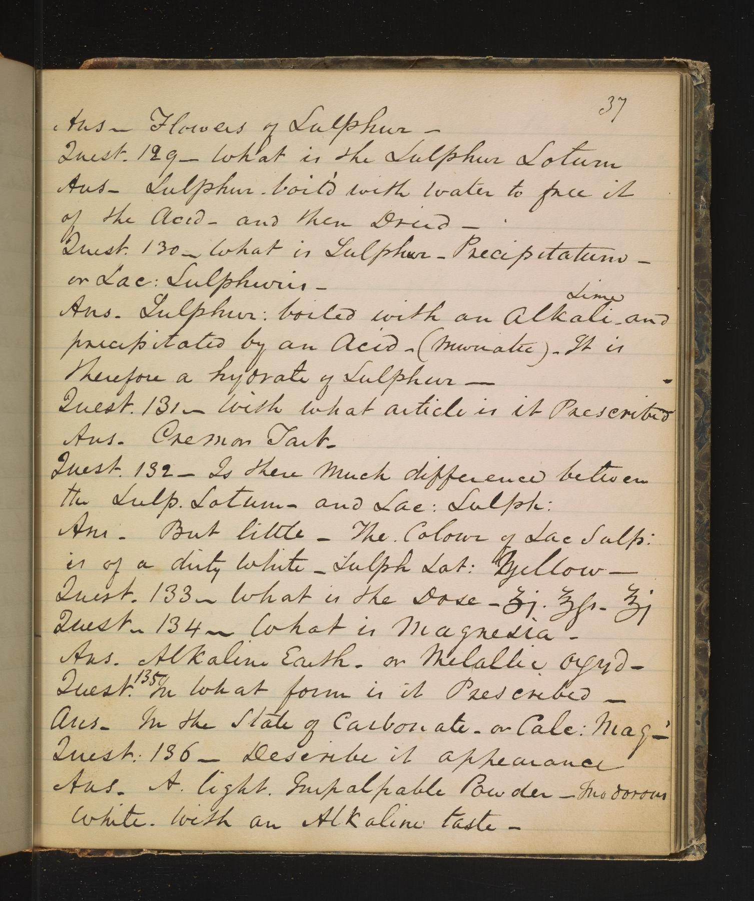 Rush MSS Vol. 402 (Yi2 7406.F.43x) Notes by William Rush for Examinations on materia medica in the School of Medicine, 1832.