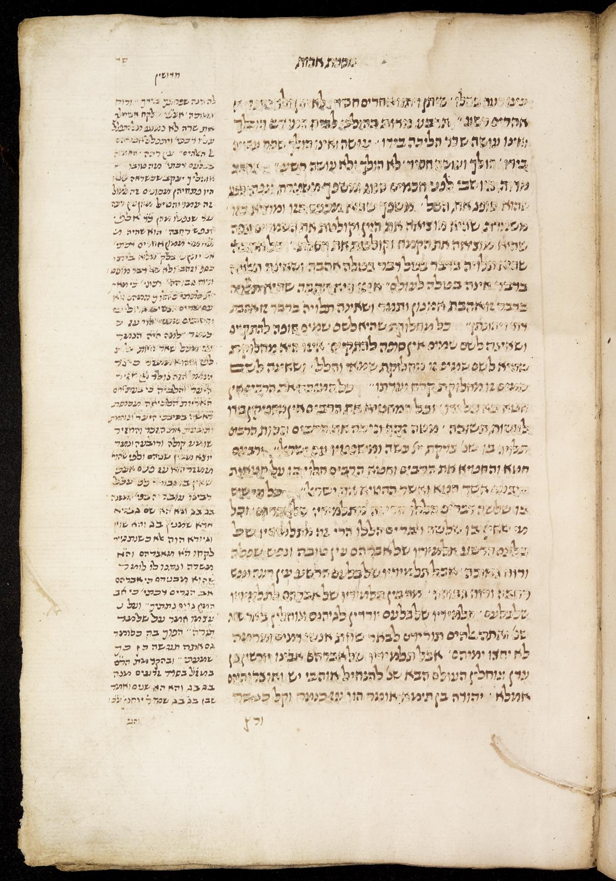- 13b — Gaster Hebrew MS Add 5. [ff.13b - 25a] Benedictions (ברכות) with Judeo-Arabic instructions and Isaac Wana's commentary Hiddushin in the outer column.