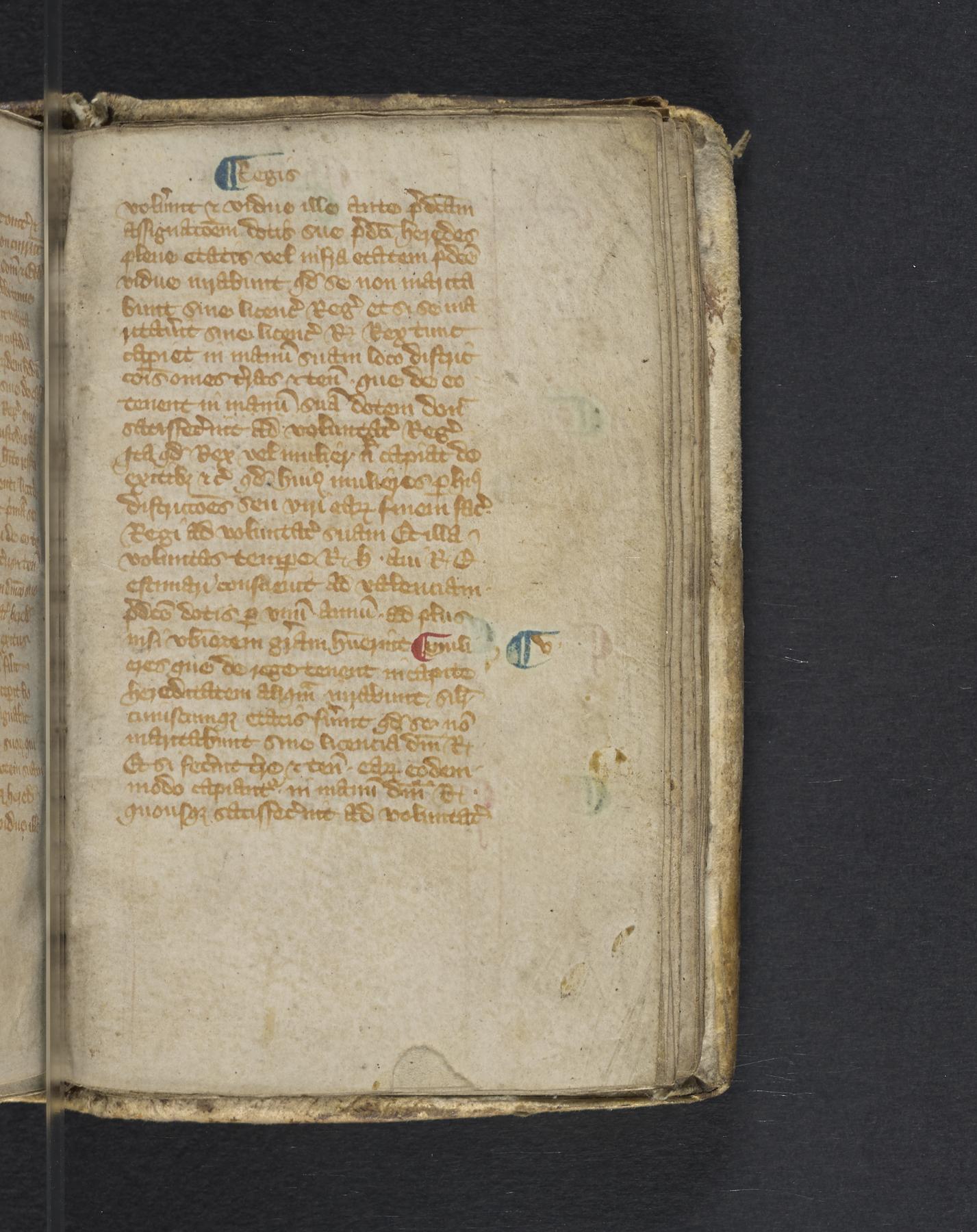 1 illuminated initial and decorated border, red and blue decorated initials throughout