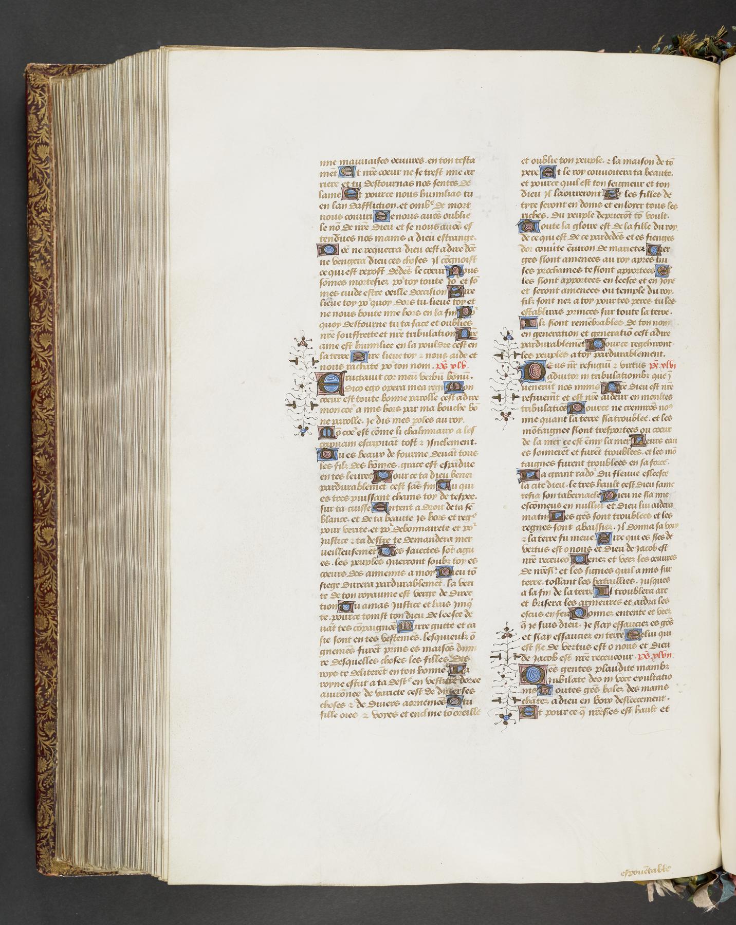 - Each Psalm of the French translation is preceded by the first verse of the Psalm in Latin. Latin inscriptions also appear on some miniatures.